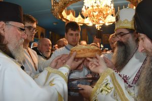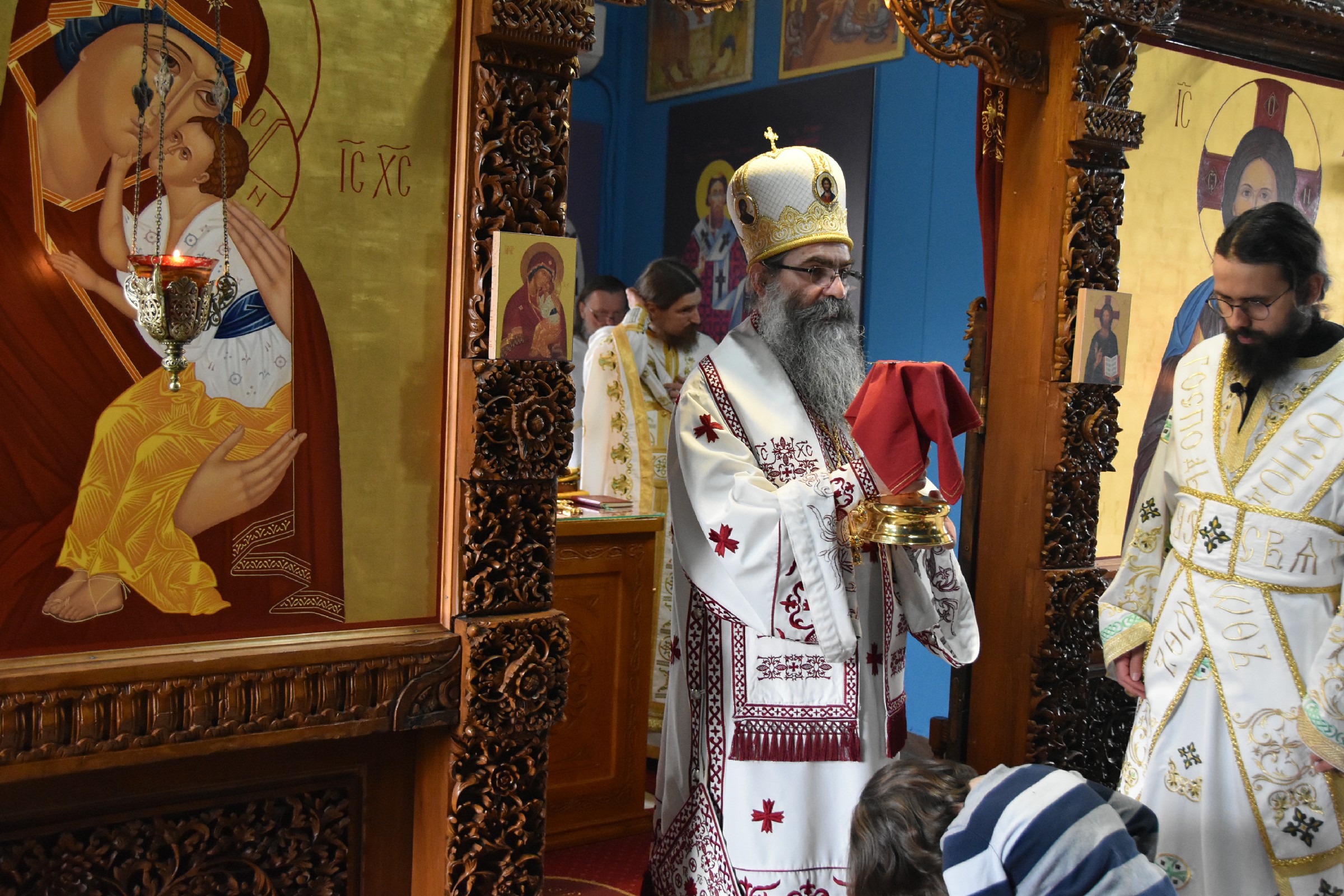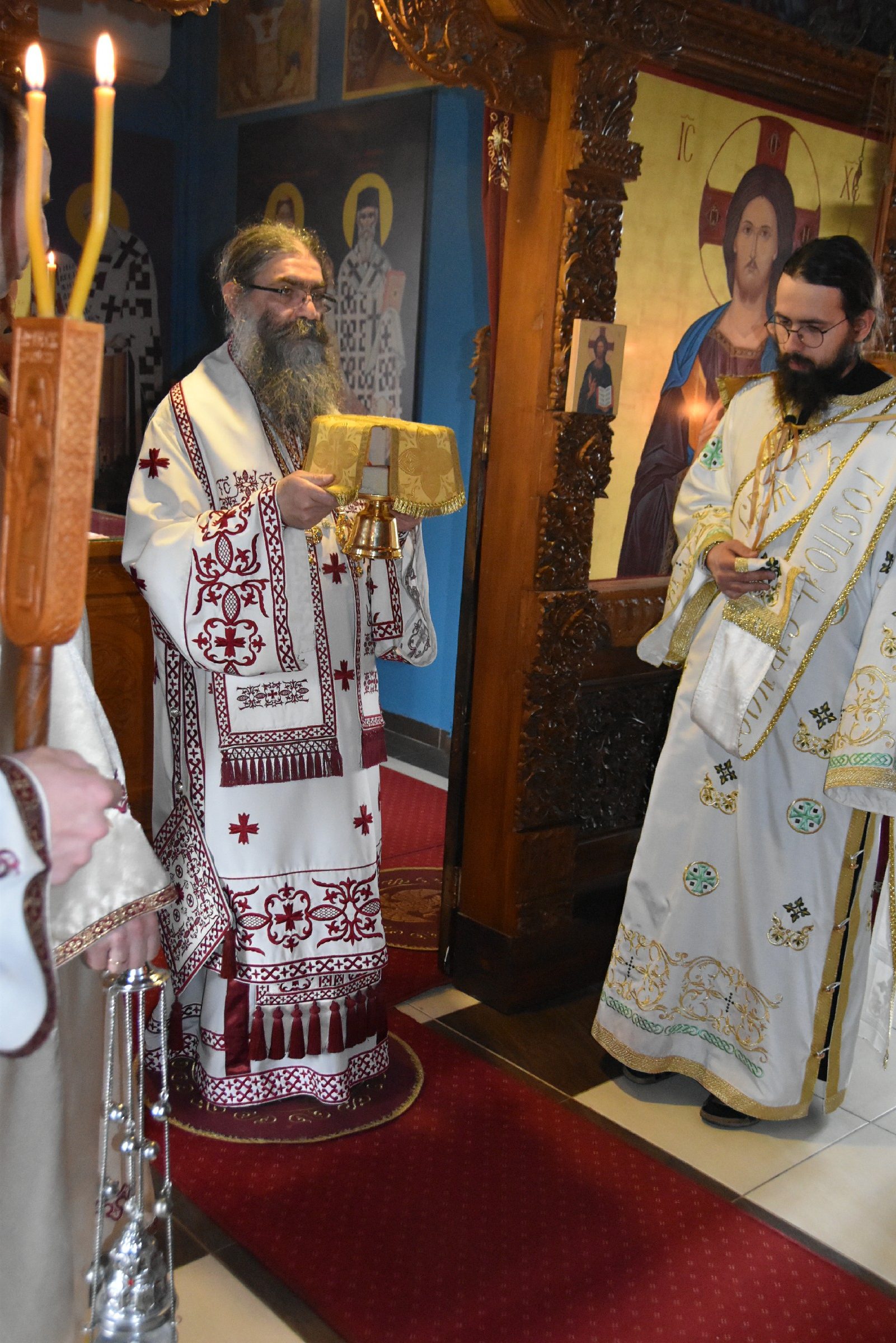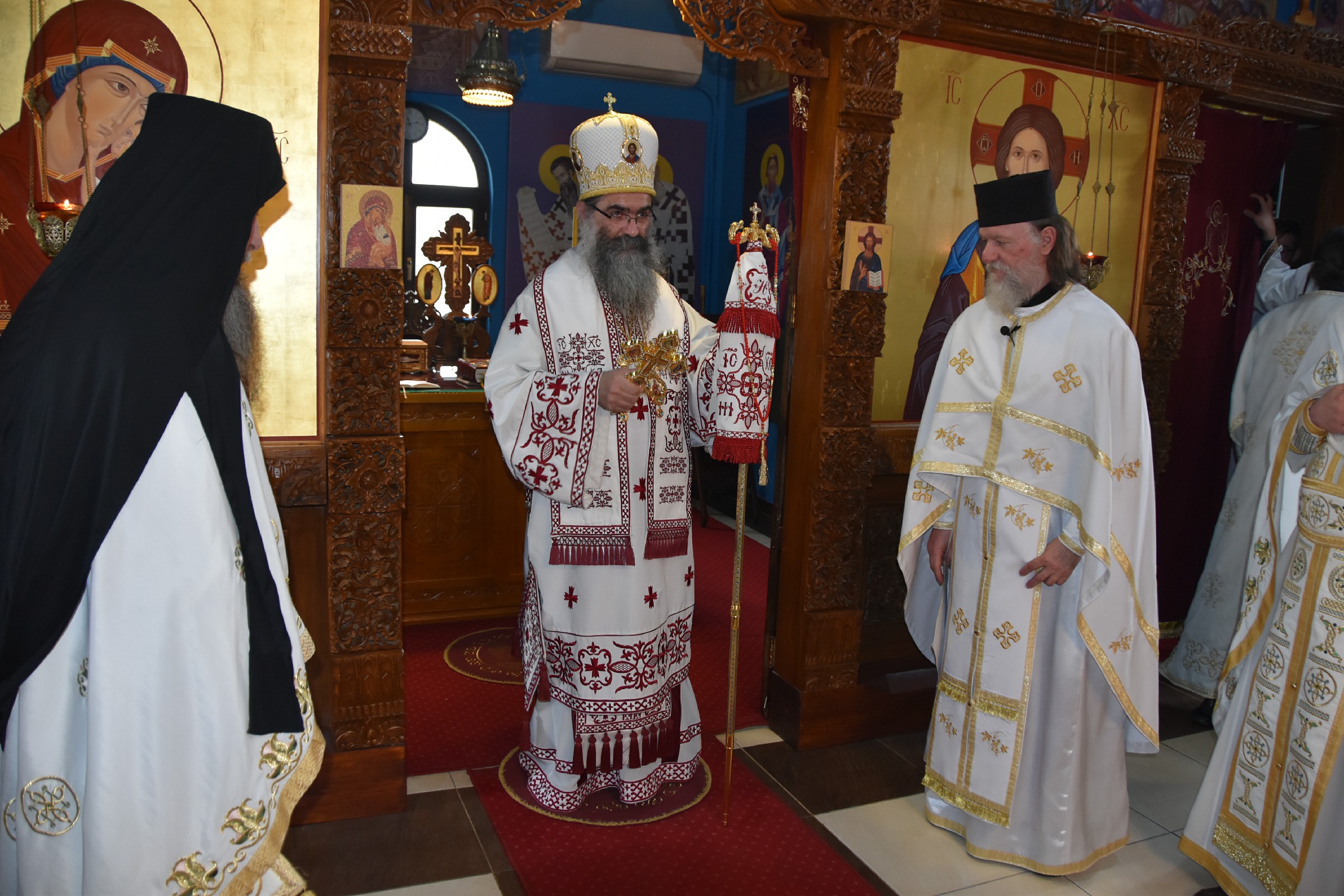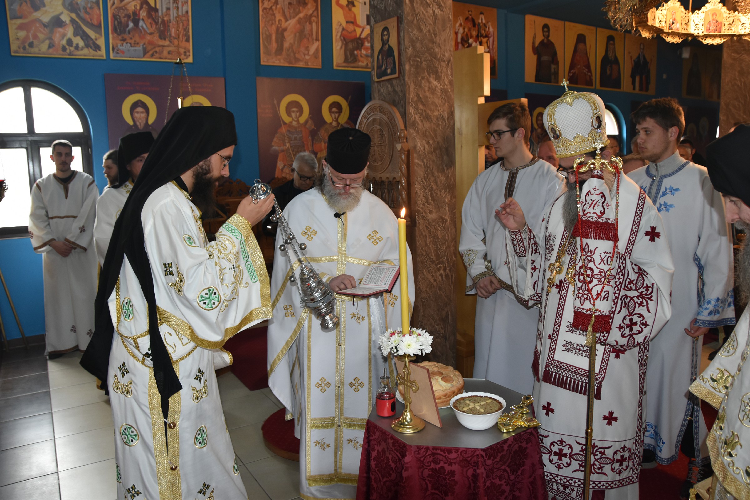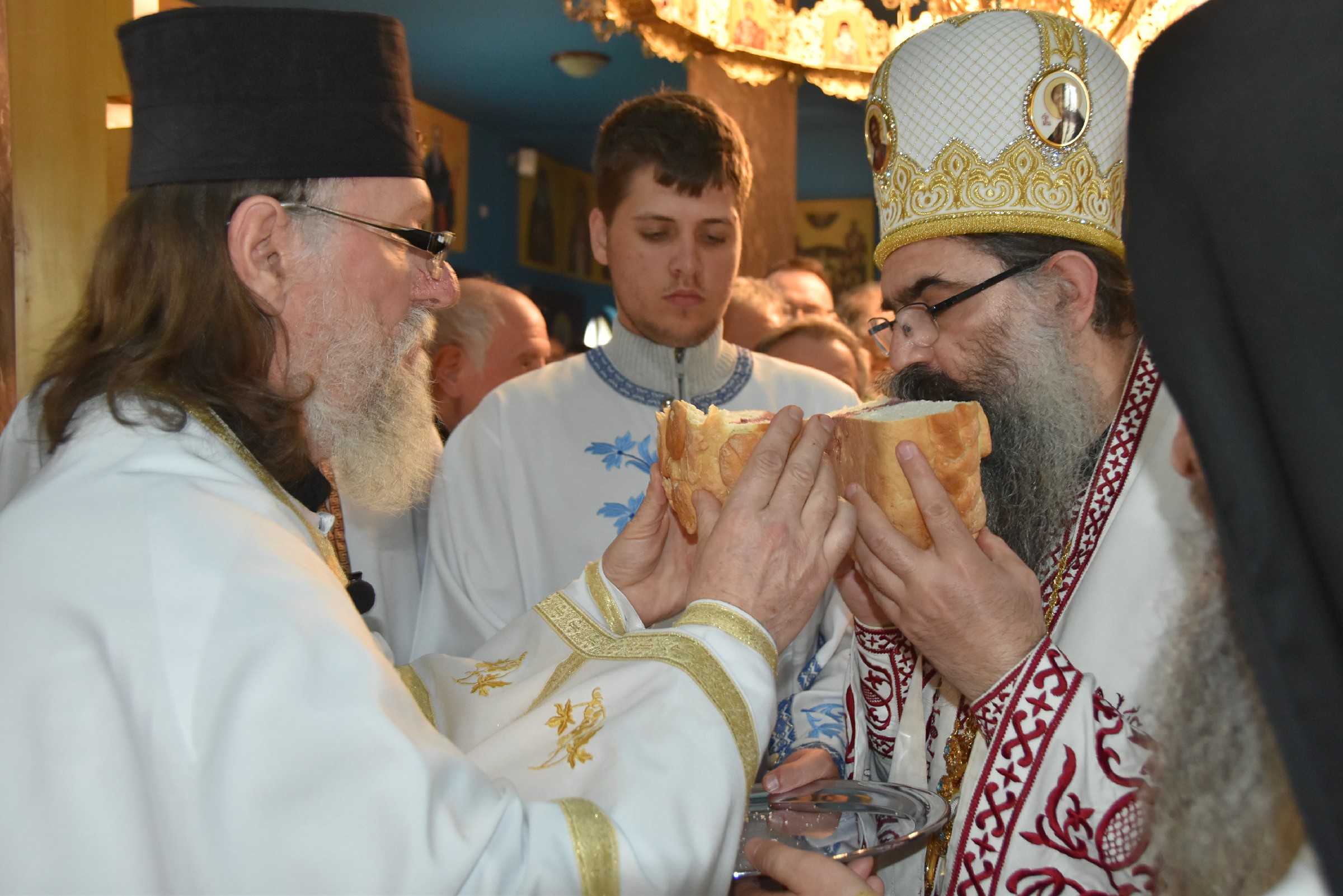 Након Литургије протојереј Жељко Марић је извршио чин резања славског колача и благосиљања жита које су у част Свете Марије Египћанке принели њени славари Владика Наум (уредник Информативне службе Епархије рашко-призренске у егзилу) и његови сарадници. Пригодном беседом верном народу се обратио протојереј Жељко говорећи о Преподобној Марији као примеру великог покајања и свих јеванђелских врлина. На крају је честитао празник Владики Науму и његовим сарадницима и пожелео успешан рад на одговорном и значајном послушању.