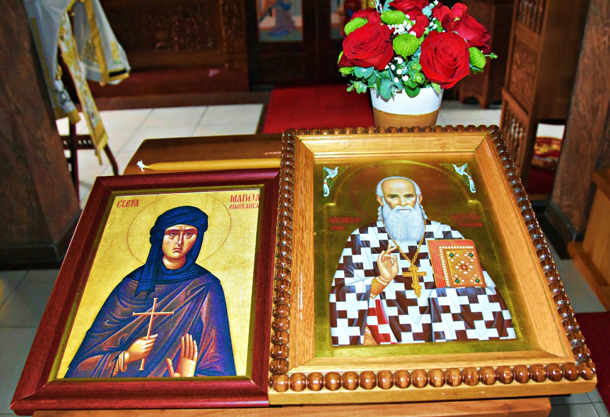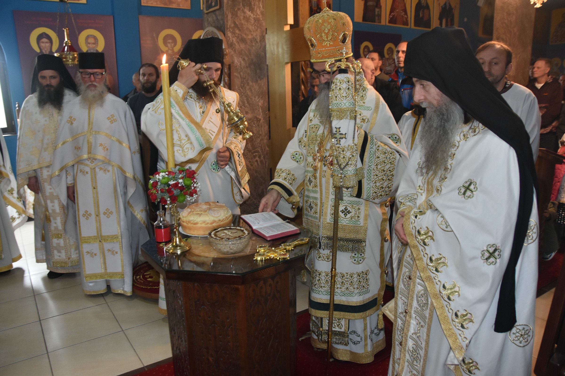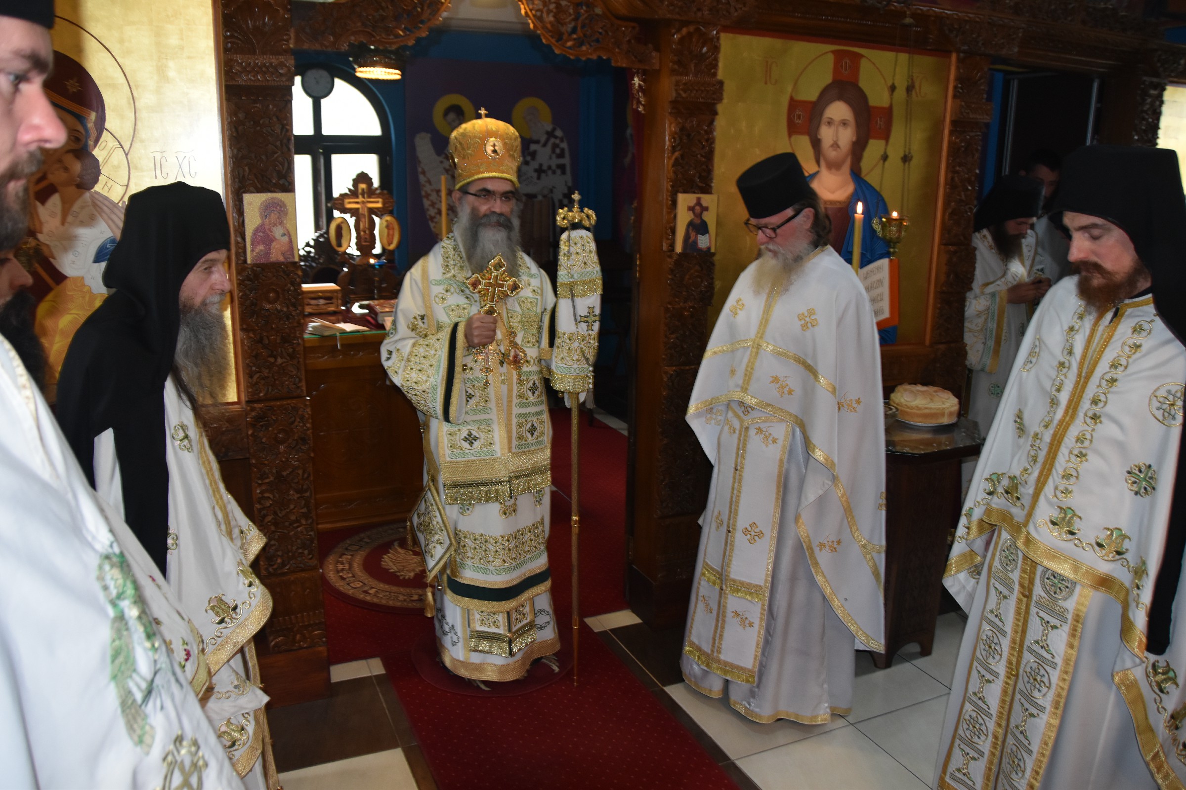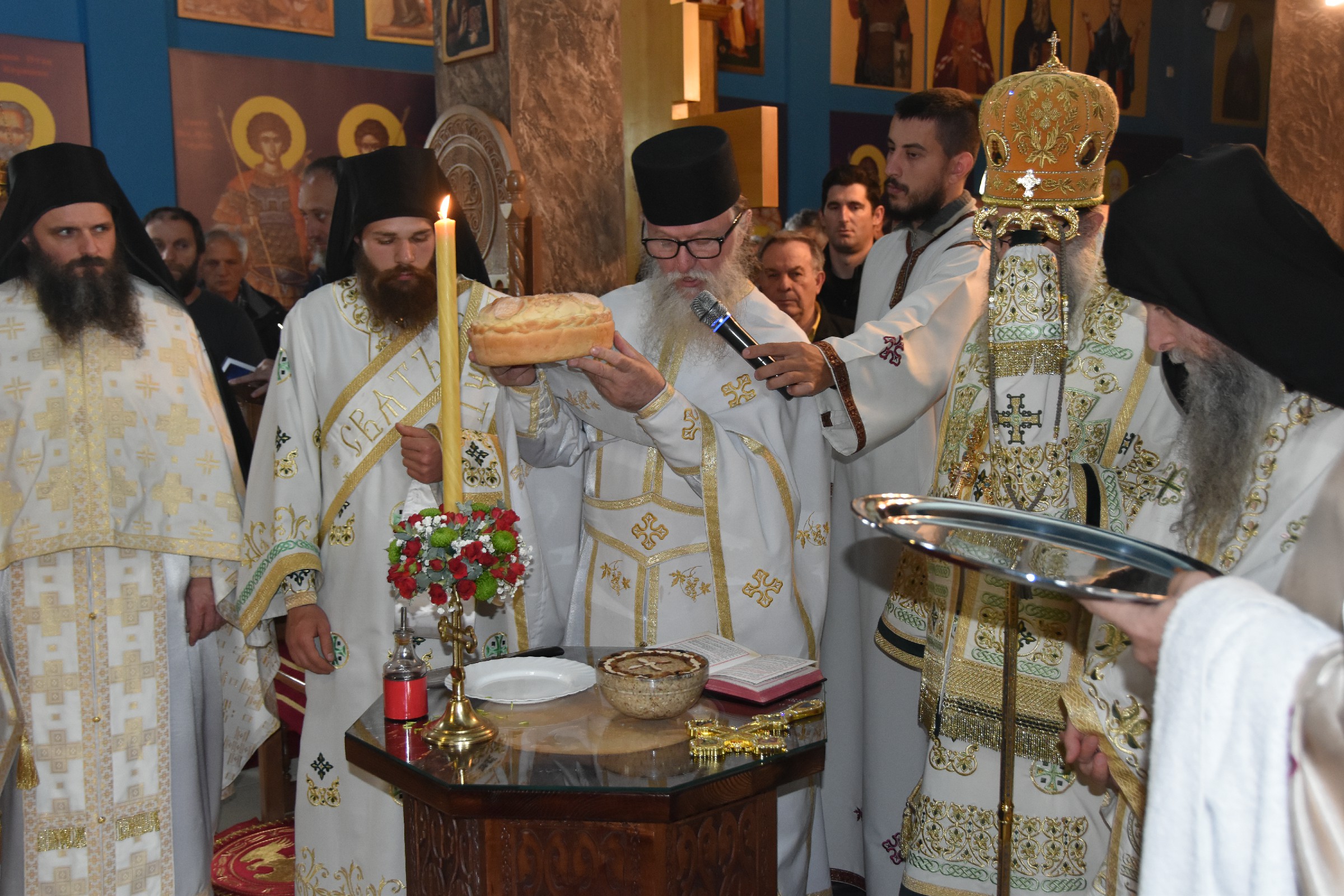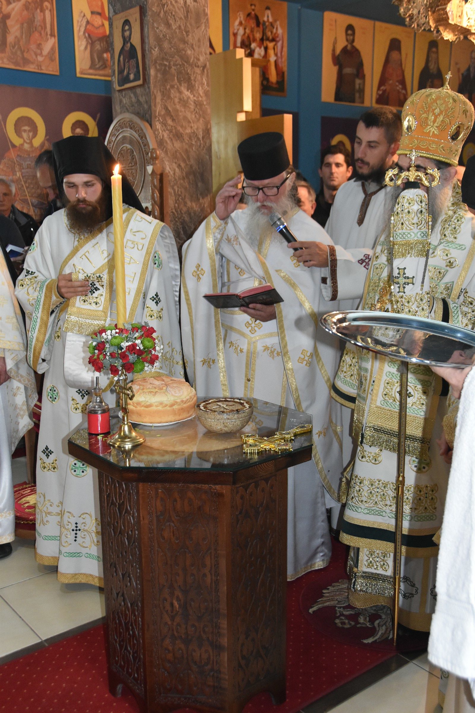 Након Литургије протојереј Жељко Марић је извршио чин резања славског колача и благосиљања жита које су у част Преподобне Марије Египћанке принели њени славари – Владика Наум (уредник Информативне службе Епархије рашко-призренске у егзилу) и његови сарадници. Пригодном беседом верном народу се обратио протосинђел Пајсије (Марковић). Он је најпре говорио о подвизима покајања преподобне Марије а затим додао: