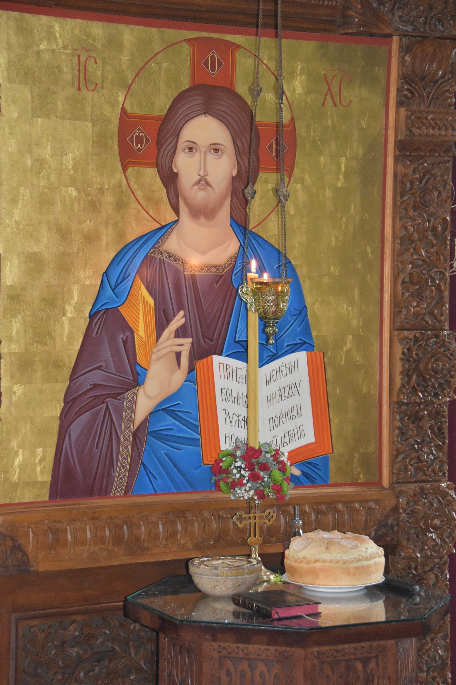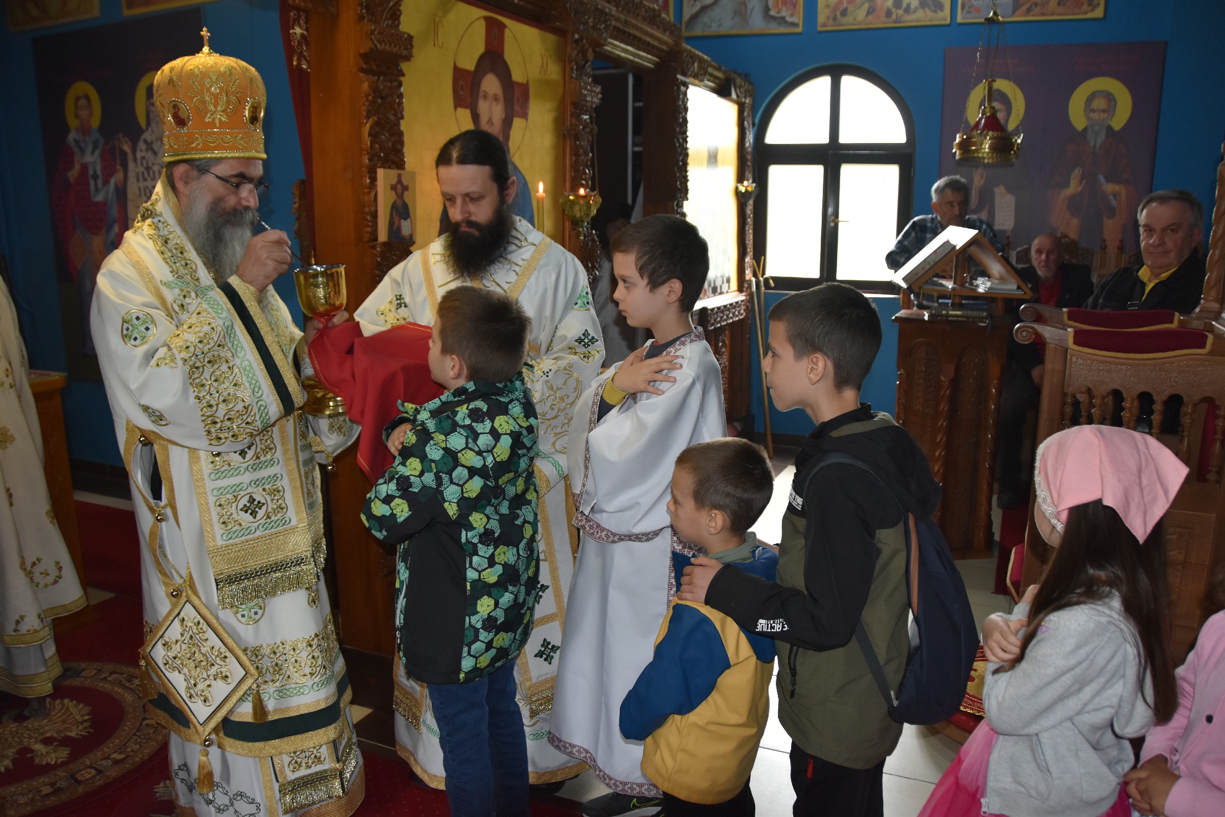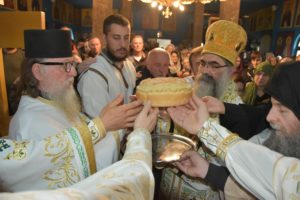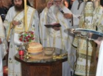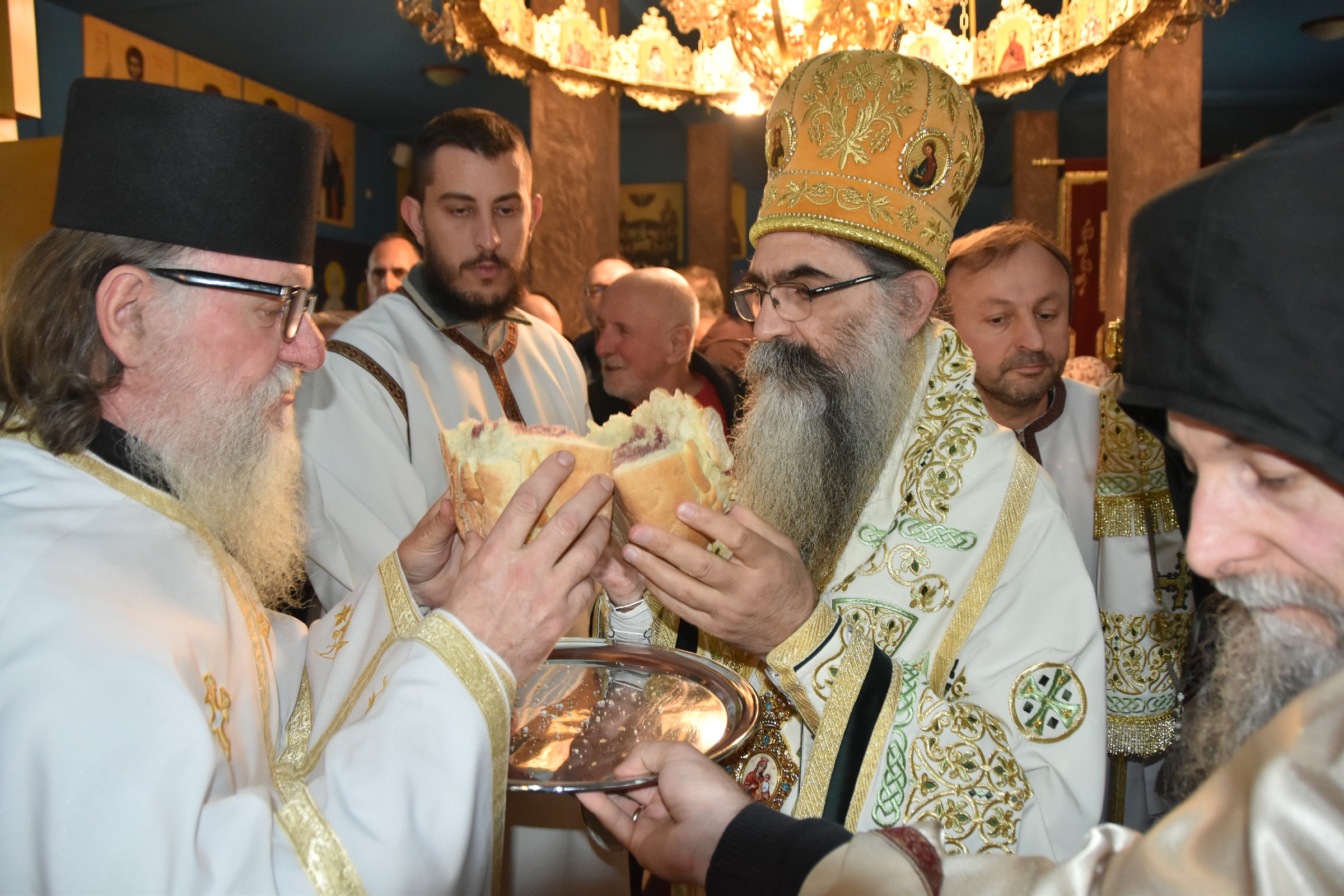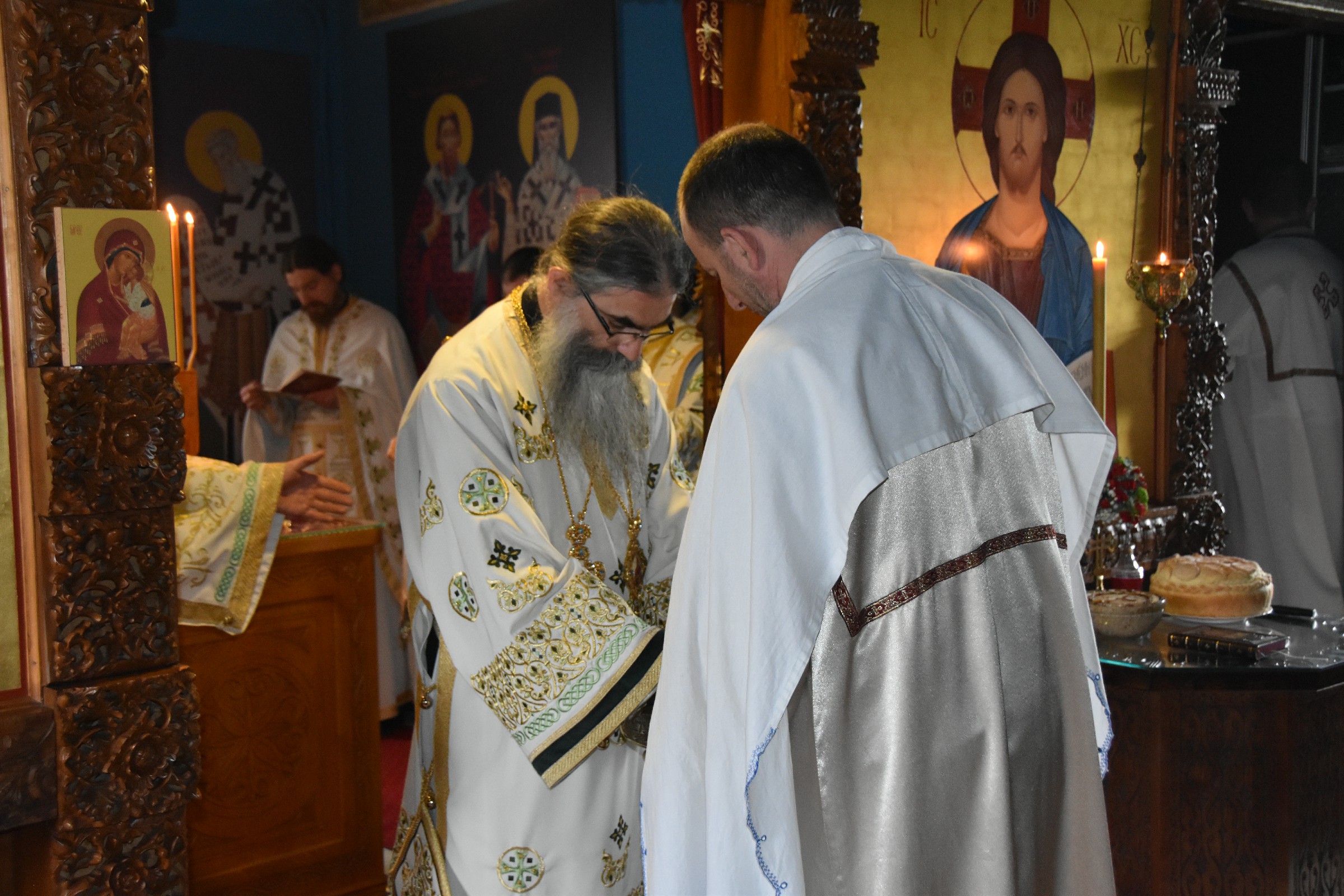 Након Литургије протојереј Жељко Марић је извршио чин резања славског колача и благосиљања жита које су у част Преподобне Марије Египћанке принели њени славари – Владика Наум (уредник Информативне службе Епархије рашко-призренске у егзилу) и његови сарадници. Пригодном беседом верном народу се обратио протосинђел Пајсије (Марковић). Он је најпре говорио о подвизима покајања преподобне Марије а затим додао: