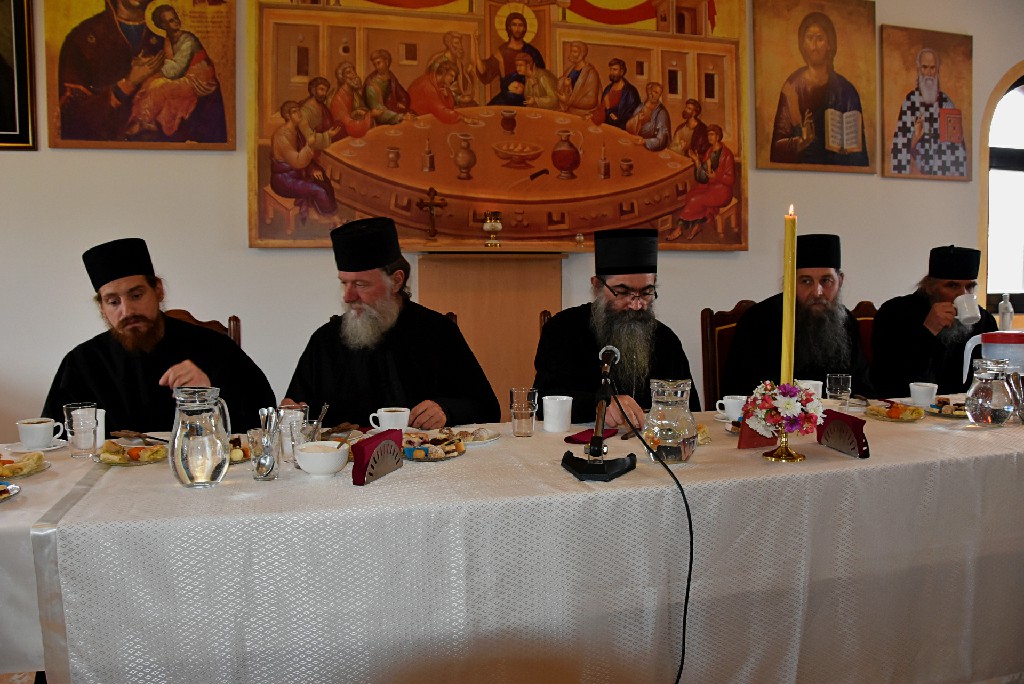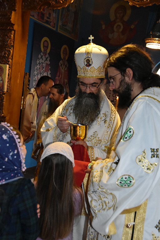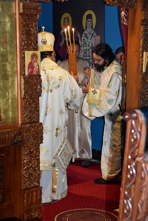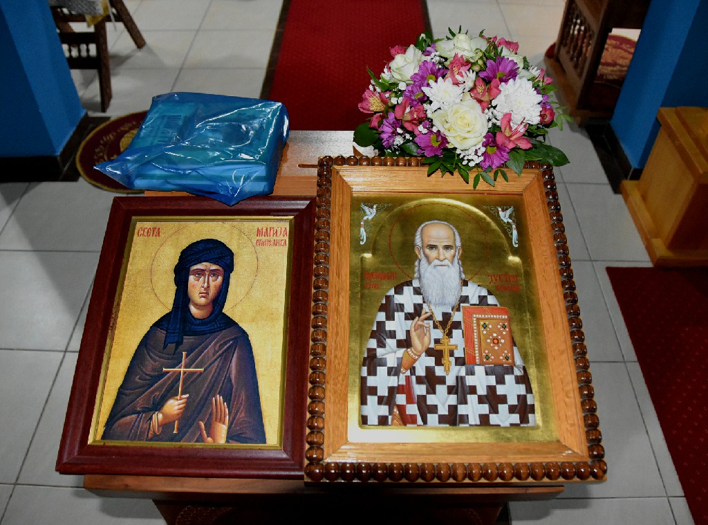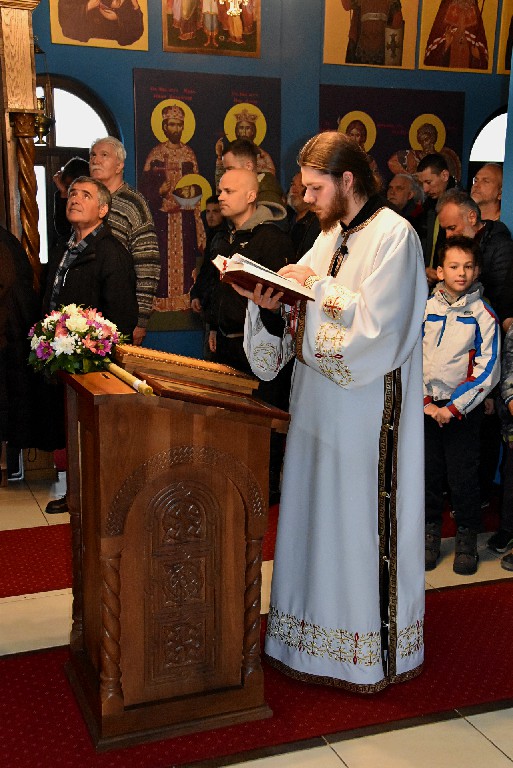 Након Литургије протојереј Жељко Марић је извршио чин резања славског колача и благосиљања жита које су у част Свете Марије Египћанке принели њени славари Владика Наум (уредник Информативне службе Епархије рашко-призренске у егзилу) и његови сарадници.