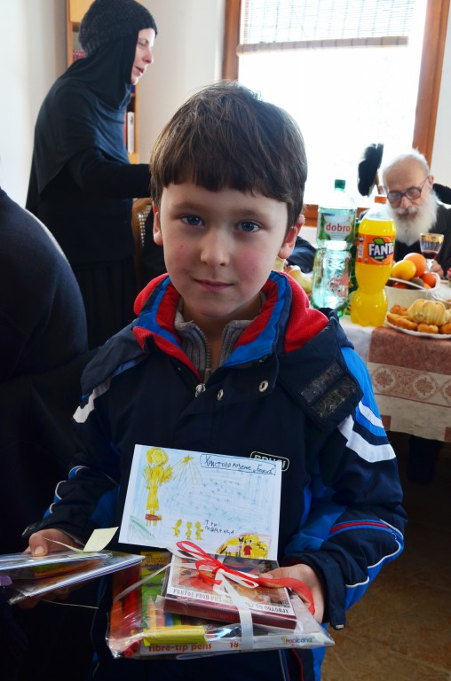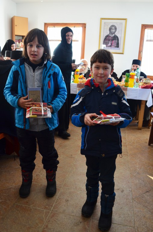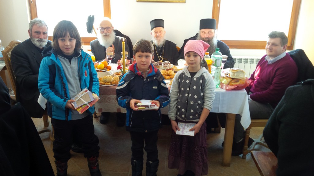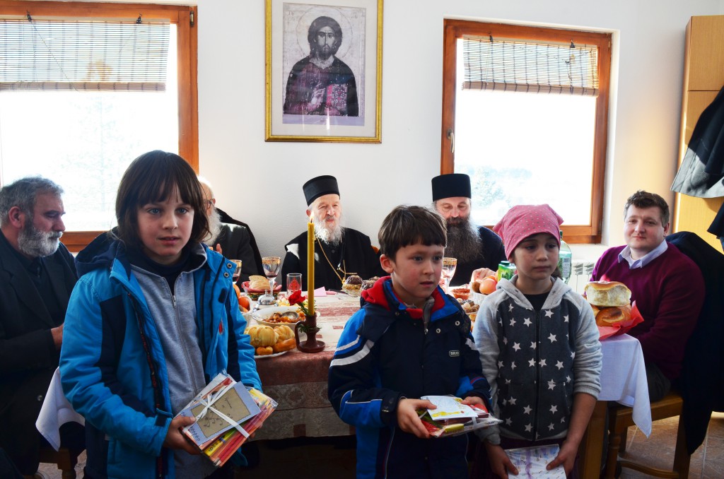 За време трпезе љубави Владика је, у име уредништва рубрике „Дечији кутак“ званичног епархијског сајта, уручио пригодне поклоне деци која су освојила прве награде у ликовном конкурсу „Божићна честитка“.