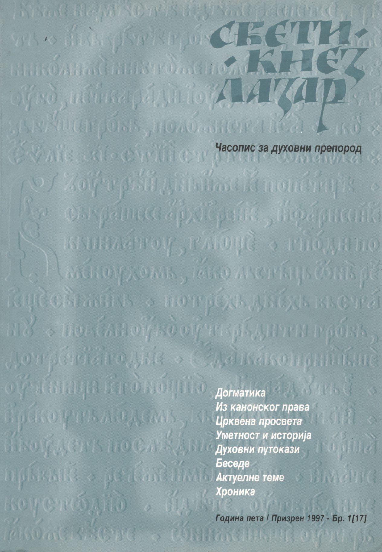 Извор: СВЕТИ КНЕЗ ЛАЗАР, ГОДИНА 1997, БРОЈ 4 (20), СТРАНЕ 15-24