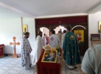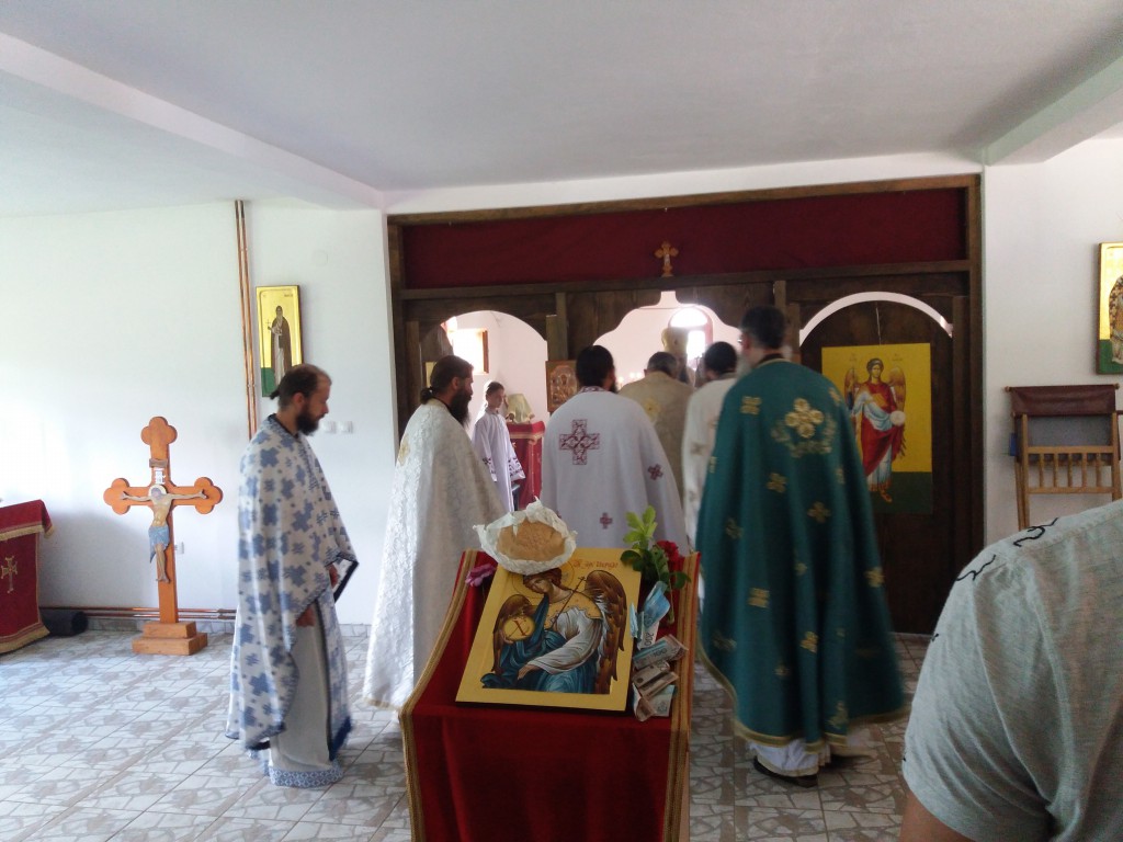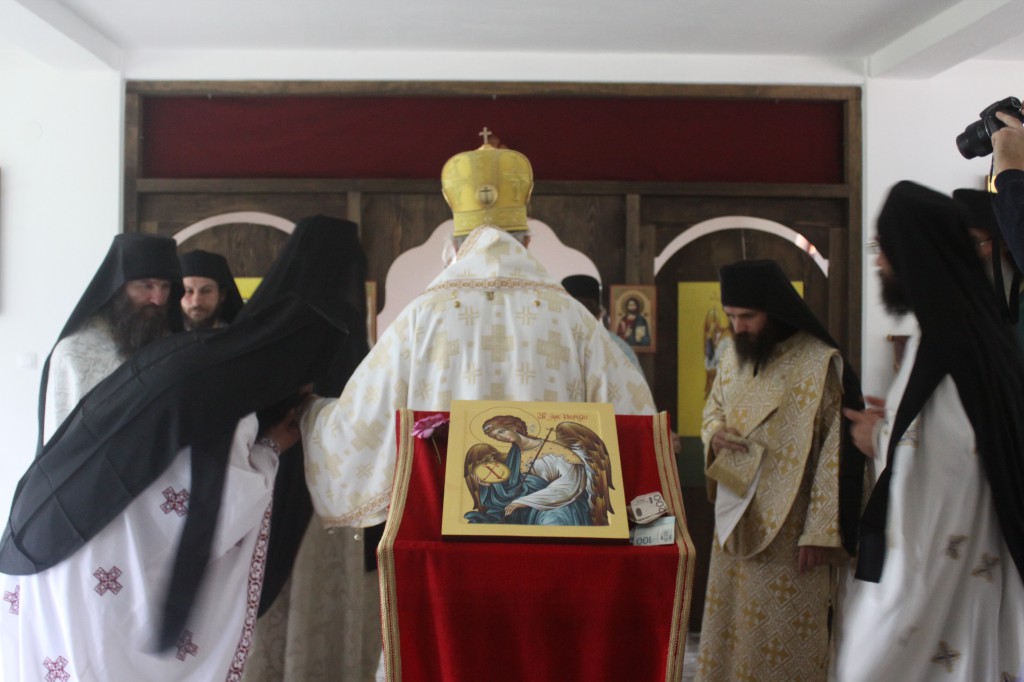 “Због свих тих чудесних дела, у којима је један од главних учесника и делатника нашег спасења био свети архангел Гаврило, ми га славимо два пута годишње. Славимо га после Благовести, други дан после Благовести славимо Сабор овог архангела, али и на данашњи дан у спомен овог његовог чудесног јављања. То је спомен његове велике љубави према нама. А ми му, ми род хришћански, људски, узвраћамо овим празновањем. Узвраћамо ту његову архангелску љубав према роду људском и узвраћамо му том старању нашем спасењу тиме што са љубављу и усрђем и радошћу славимо овај његов свети спомен. А заиста је дивно славити и празновати овде у овој новосаграђеној капели, и катакомби која је њему посвећена. И ова катакомба представља сведочанство љубави Божије према нама, али и старање светог архангела Гаврила, јер је он сам својим светим молитвама укрепио ову братију нашу која се потуцала од немила до недрага, само са једном мишљу, само са једним циљем, да остану верни Богу, Богу анђела и људи, Богочовеку Христу, и светој Вери коју нам је Сам Богочовек Христос предао, Вери Православној. То усрђе, тај труд братије наградио је Господ Бог, наградио је свети архангел Гаврило, укрепио их је да у славу Божију, у част светог архистратига подигну ову дивну капелу, овај дивни конак у коме се данас заиста са искреном радошћу и захвалношћу Богу и Његовом архистратигу молимо, приносимо бескрвну Жртву, пречисто Тело и Крв Богочовека Христа.