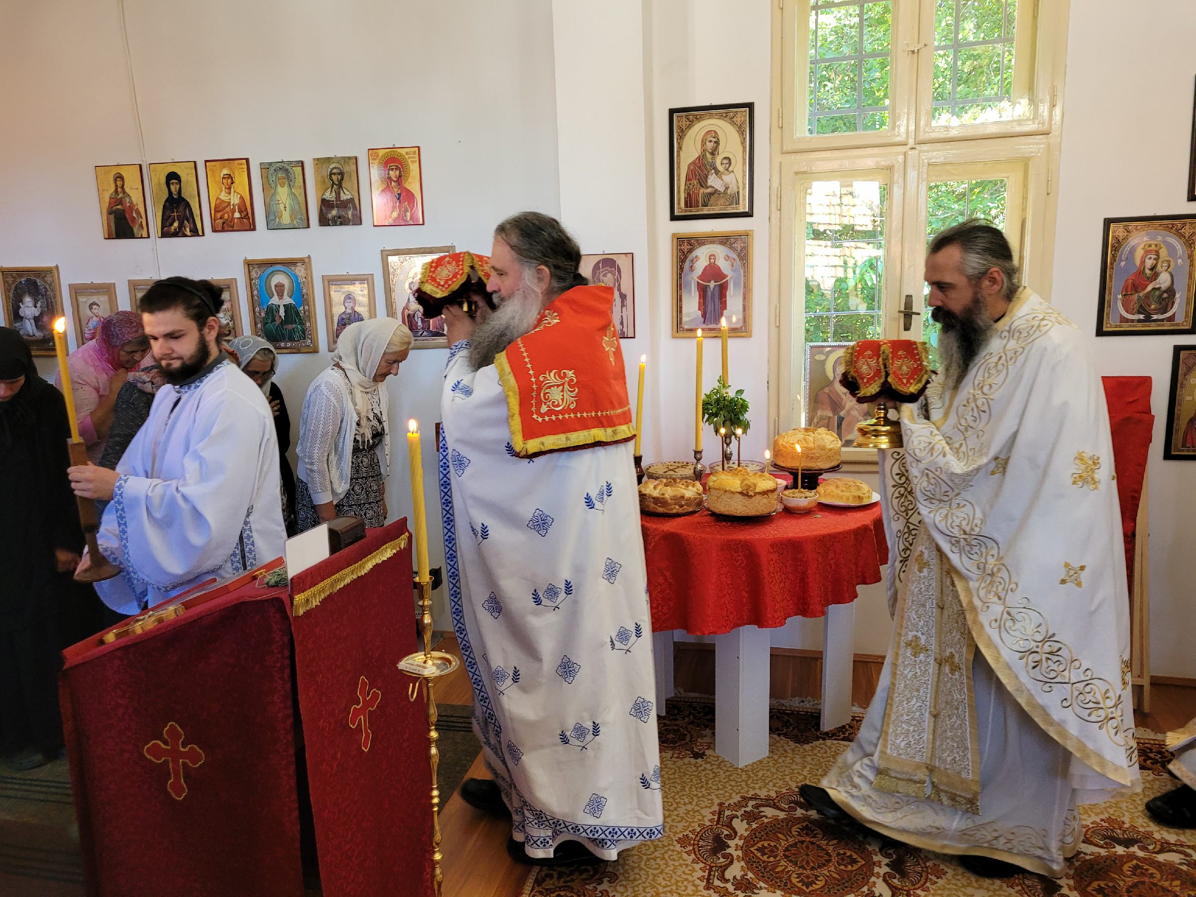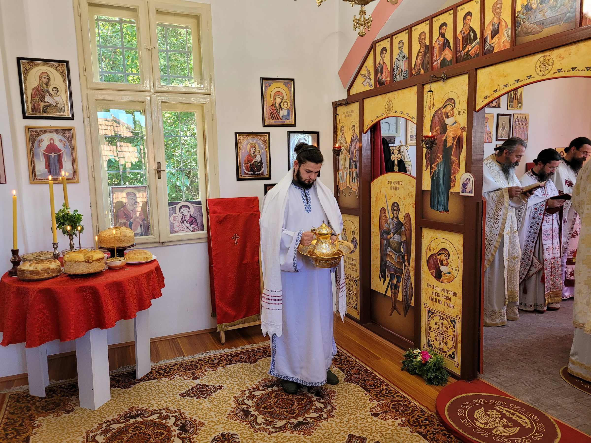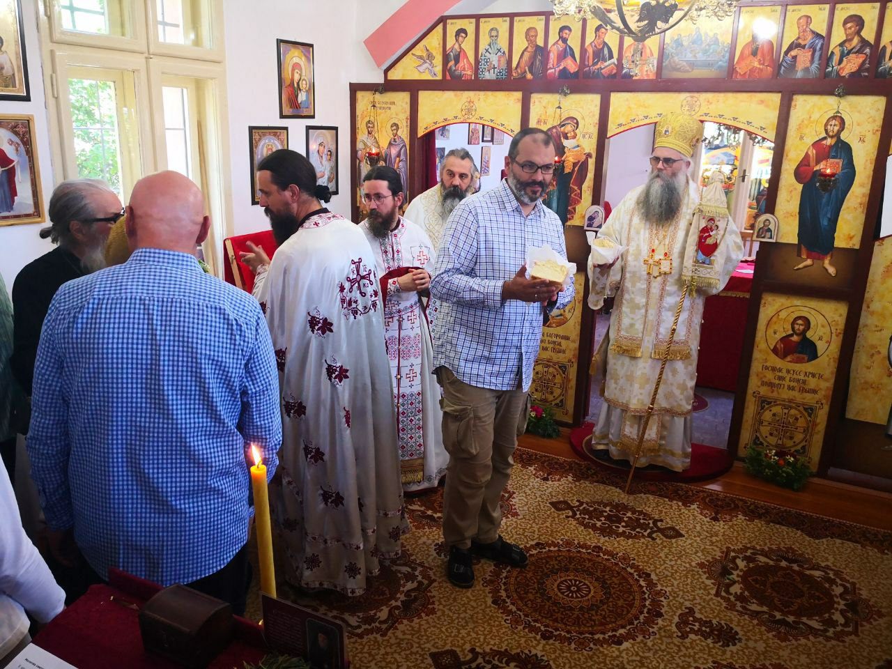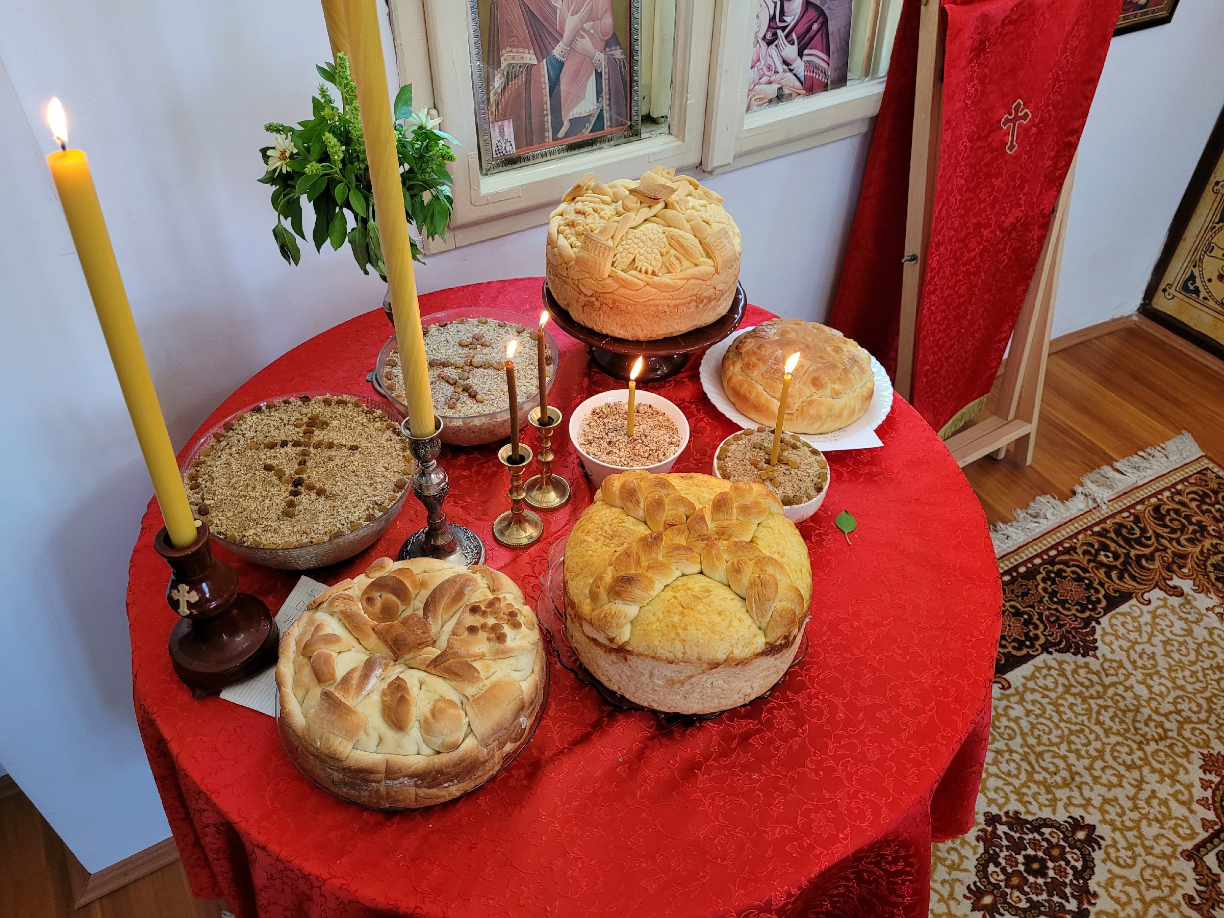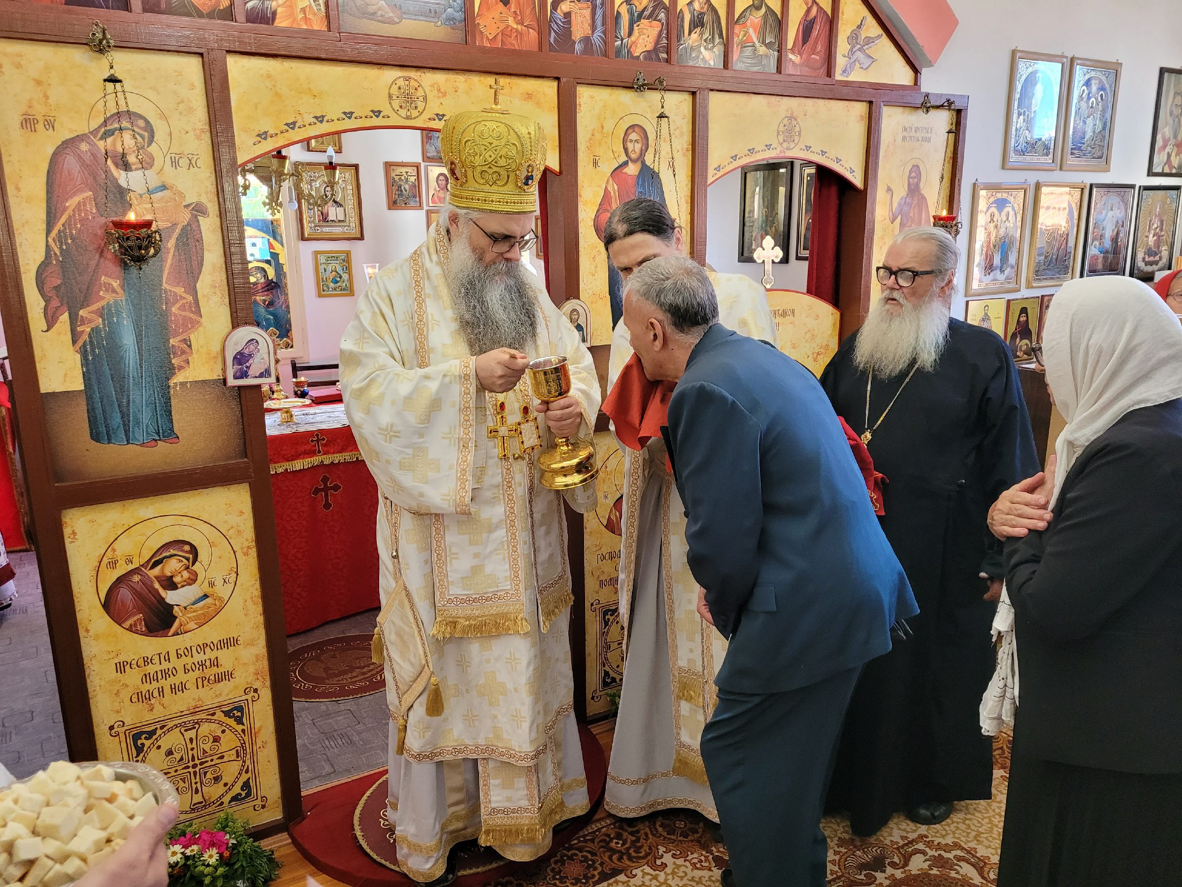 Након Свете Литургије Владика Максим је извршио чин резања славског колача и благосиљања жита које су у част светих мученика и бесребреника Козме и Дамјана принели братство храма и овогодишњи домаћин славе Љиљана Савић из Неготина.