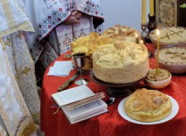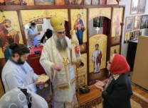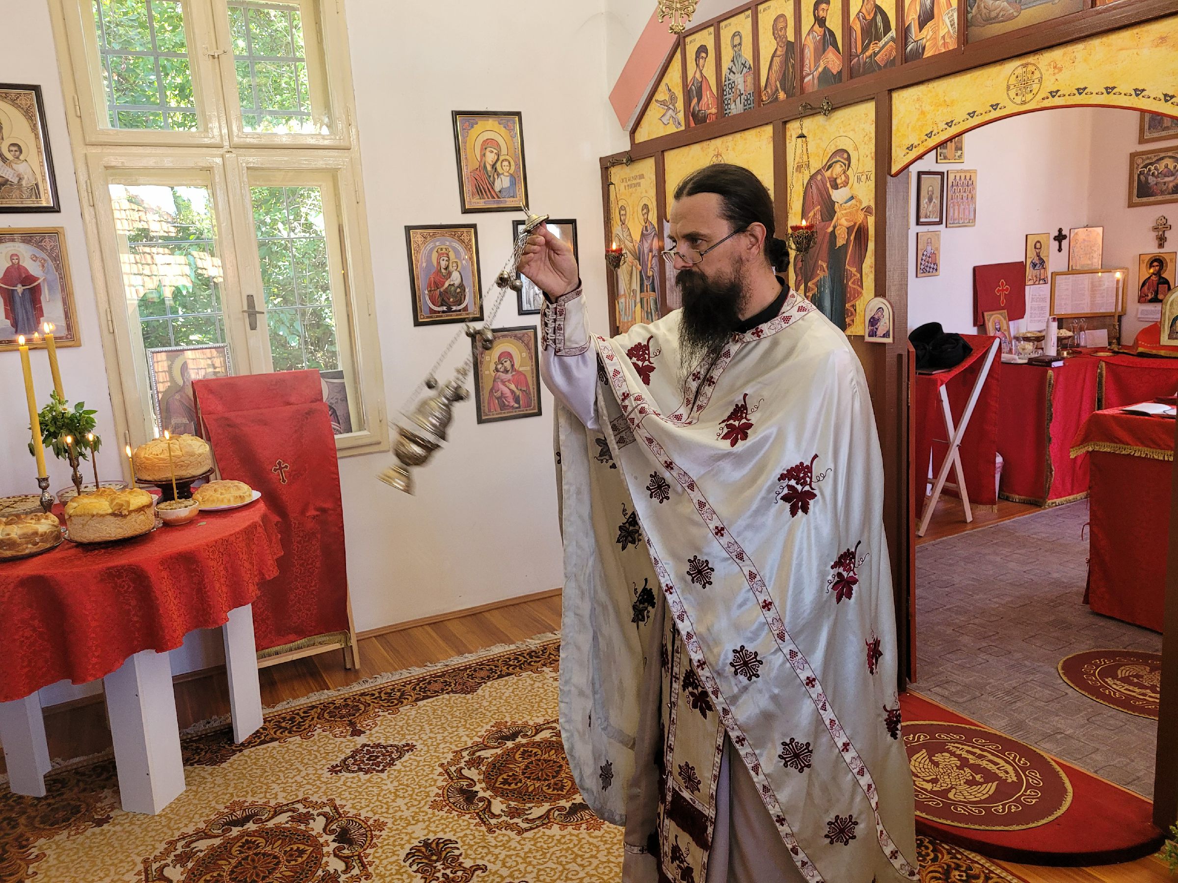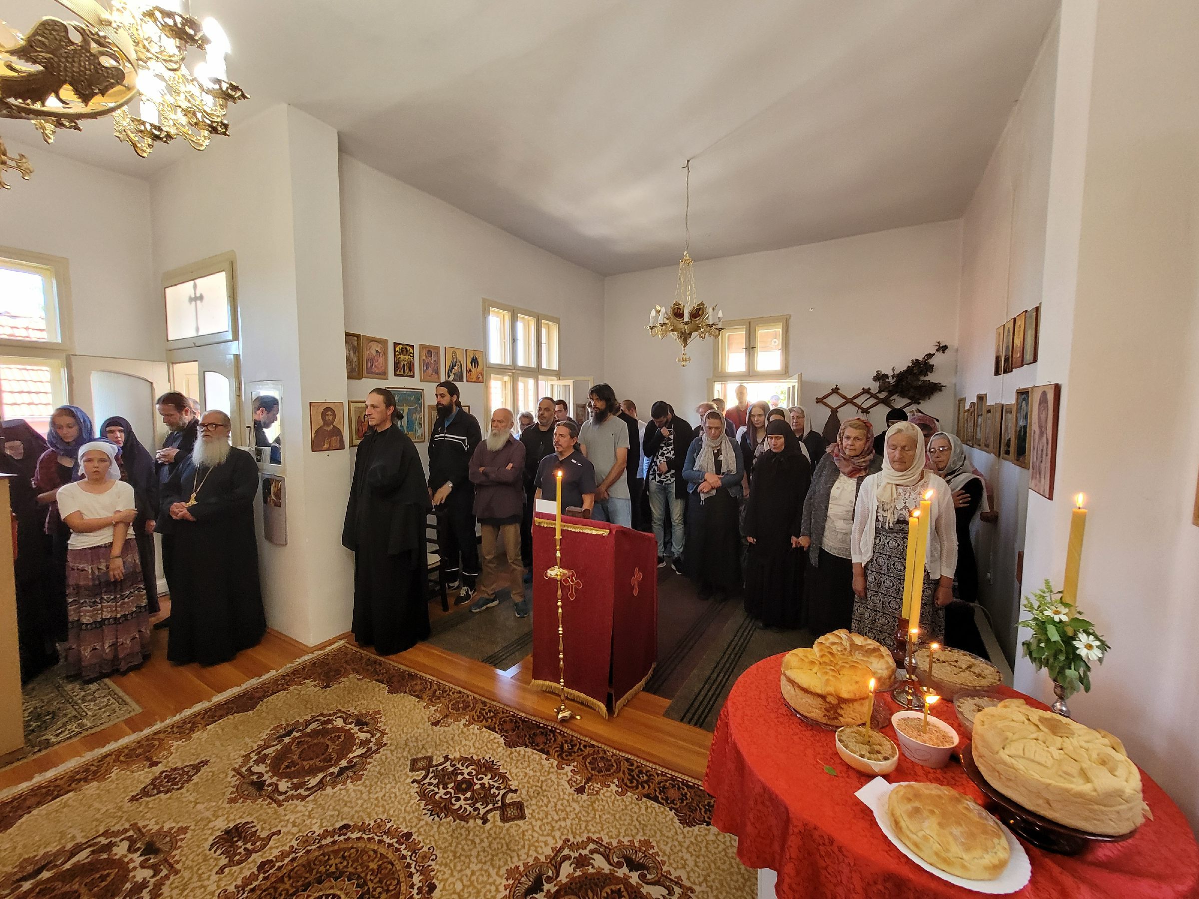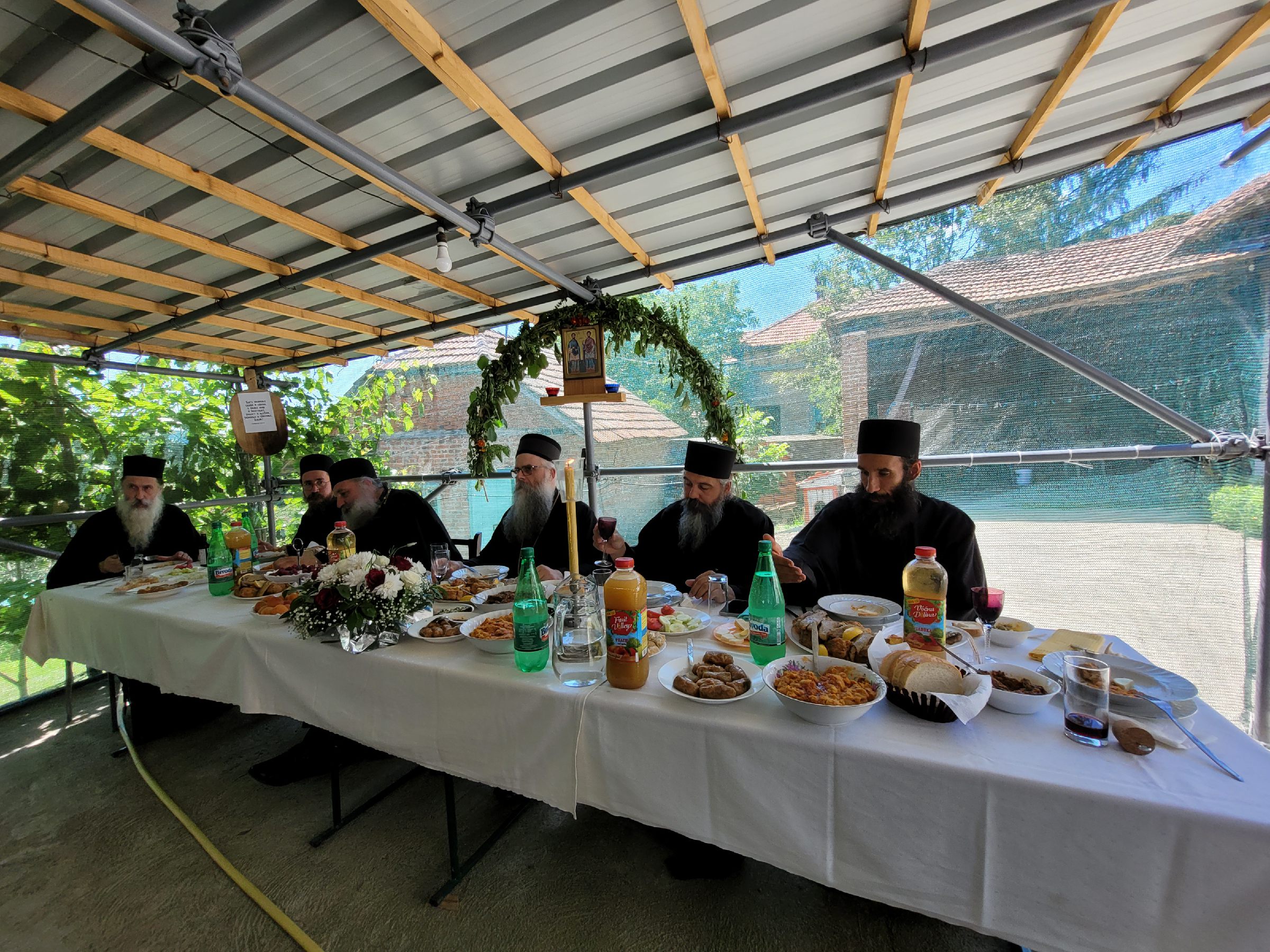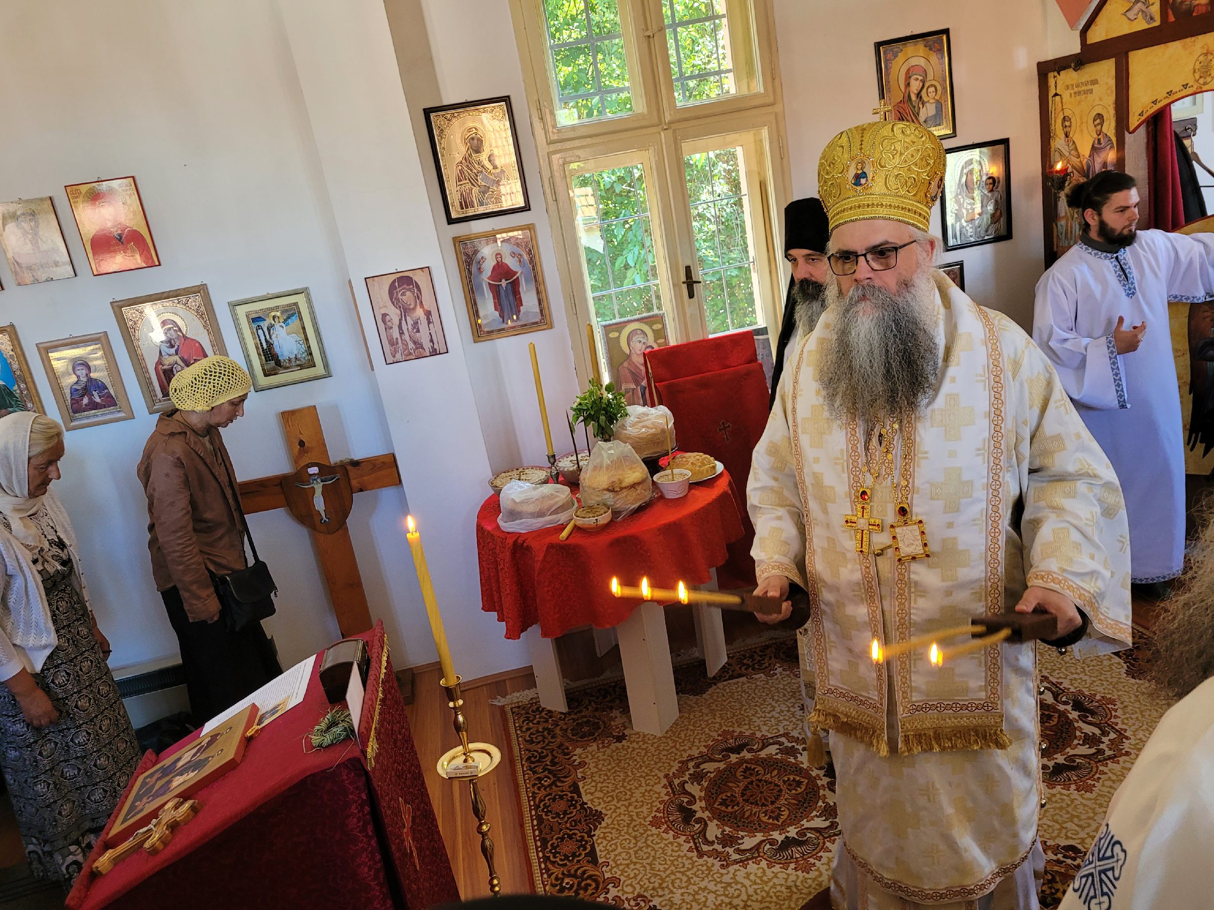 Након Свете Литургије Владика Максим је извршио чин резања славског колача и благосиљања жита које су у част светих мученика и бесребреника Козме и Дамјана принели братство храма и овогодишњи домаћин славе Љиљана Савић из Неготина.