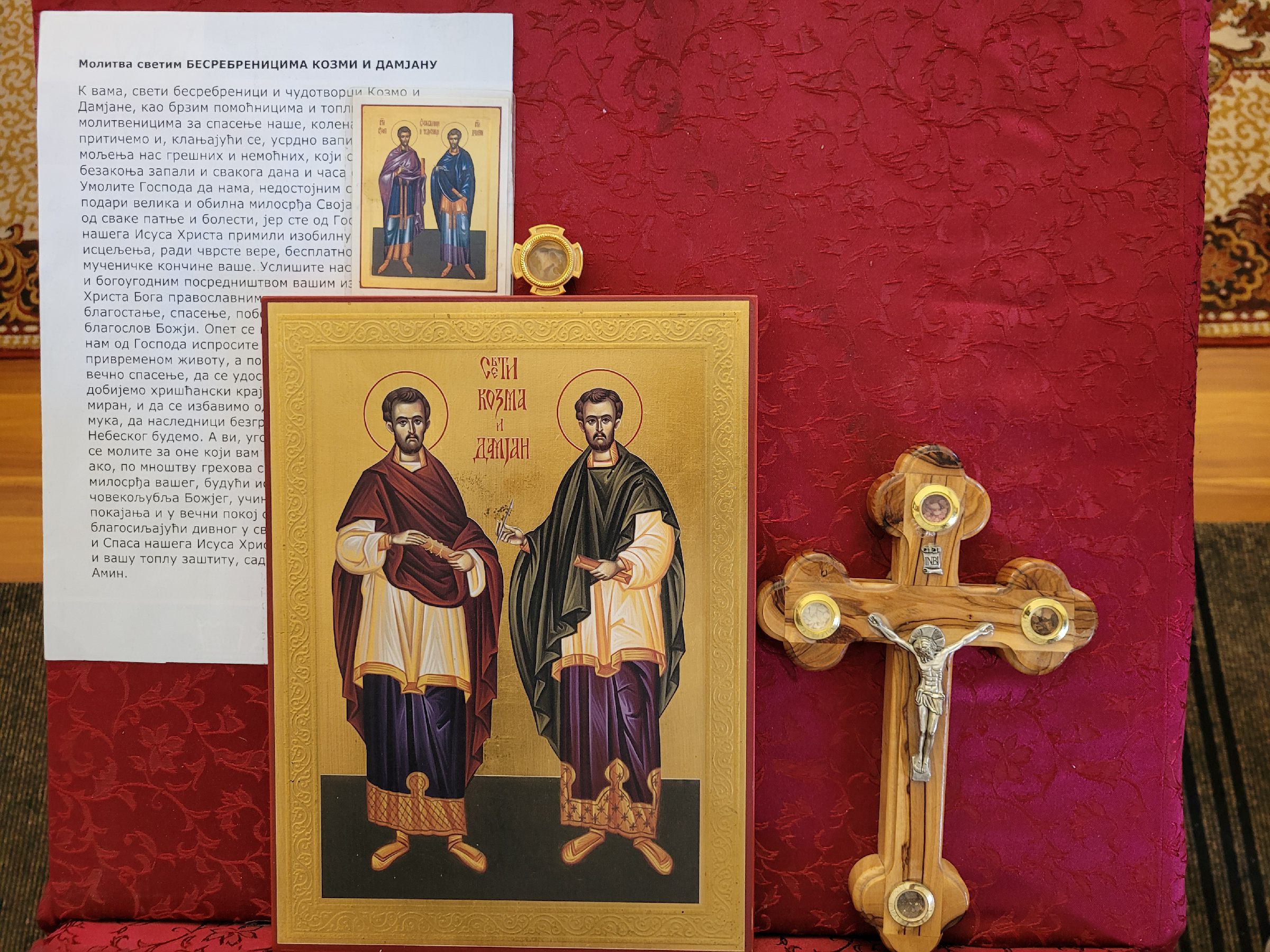 „Дарујући нам исцељење Богочовек Христос преко својих светих лекара Козме и Дамјана такође нас опомиње да не упадамо у велику заблуду савременог човечанства и савремених хришћана. У чему се састоји та заблуда? Погледајте, браћо и сестре. чиме се данашњи, нажалост често и ми православни хришћани, углавном баве: здрава храна, лекови биљни, лекови медицински, конвенционална медицина, алтернативна медицина.Кад би се савремени човек бавио и делом на исцељењу сопствене душе у мери у којој се брине о свом телу Царство Небеско би се брзо испунило великим мноштвом људи, спасених људи у Богочовеку Христу. И зато нас Господ преко Светих лекара, не само да нам дарује исцељење душевно и телесно, већ нас позива да се пре свега бринемо за исцељење наше душе, да се бринемо да не разбољевамо своју душу тим страшним недугом који се зове грех. А ако по слабости упадамо у грех да се покајањем, исповешћу, постом, молитвом, Светим Причешћем чистимо и лечимо од тог страшног недуга и да бринемо само ону најбитнију бригу, оно што је једино потребно, а то је да бринемо пре свега о спасењу своје душе, о стицању Царства Небеског а Богочовек Христос ће нам све остало придодати па и телесно здравље у мери у којој нам је оно потребно зарад спасења. Богочовек Христос ће нам све то придодати, а Свети лекари Козма и Дамјан то од Њега измолити. Нека Господ свима нама дарује молитвама Светих врача исцељење душа и тела.“