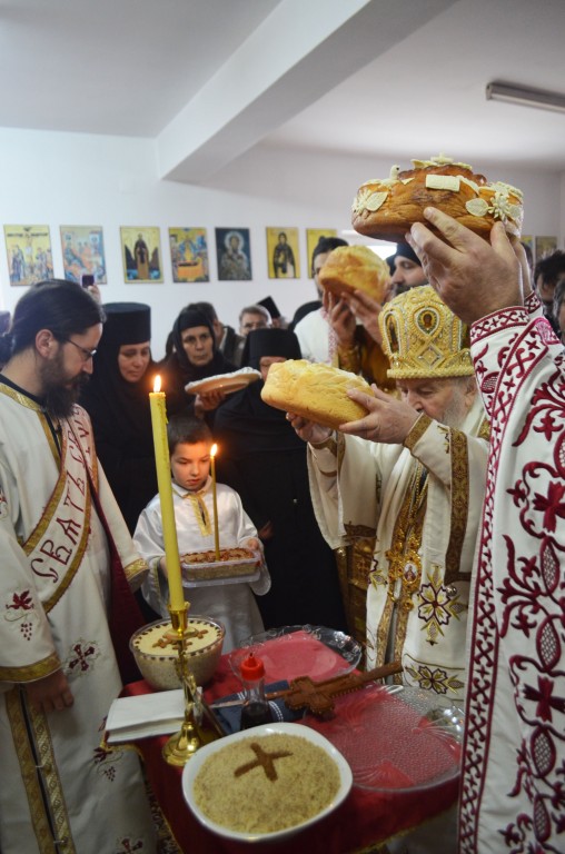 Након Свете Литургије Владика Артемије пререзао је славске колаче и освештао жито које су принели манастир и овогодишњи домаћин славе Радмила Анђелковић из Прокупља. За идућу годину за домаћина се пријавио брат Синиша Соколовић из Ниша.