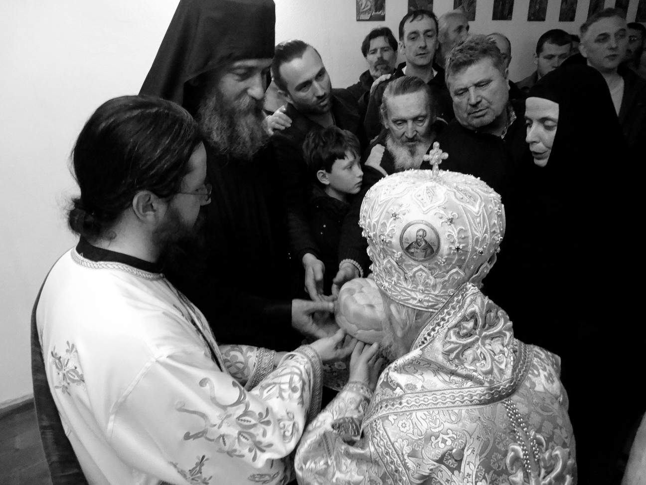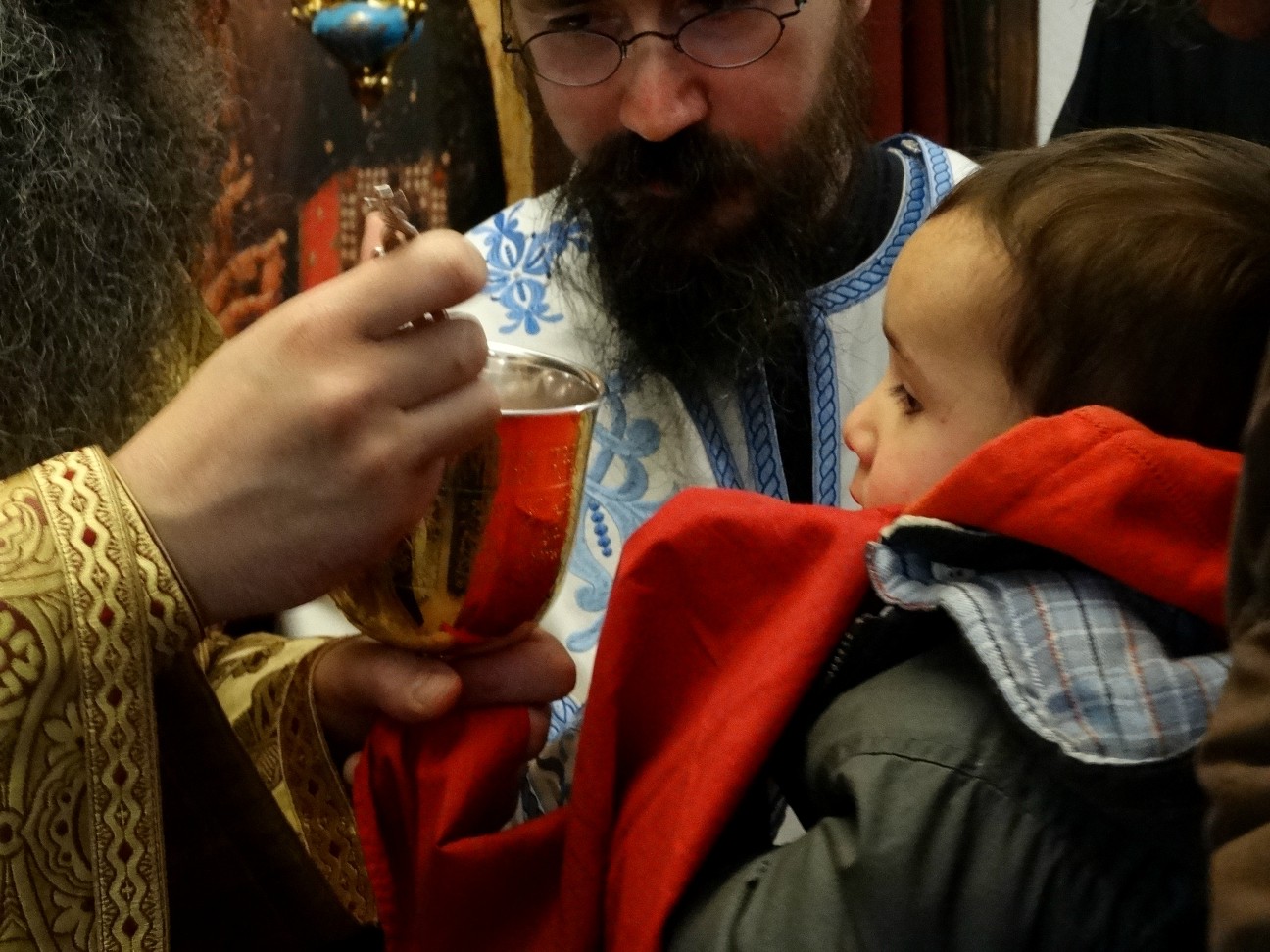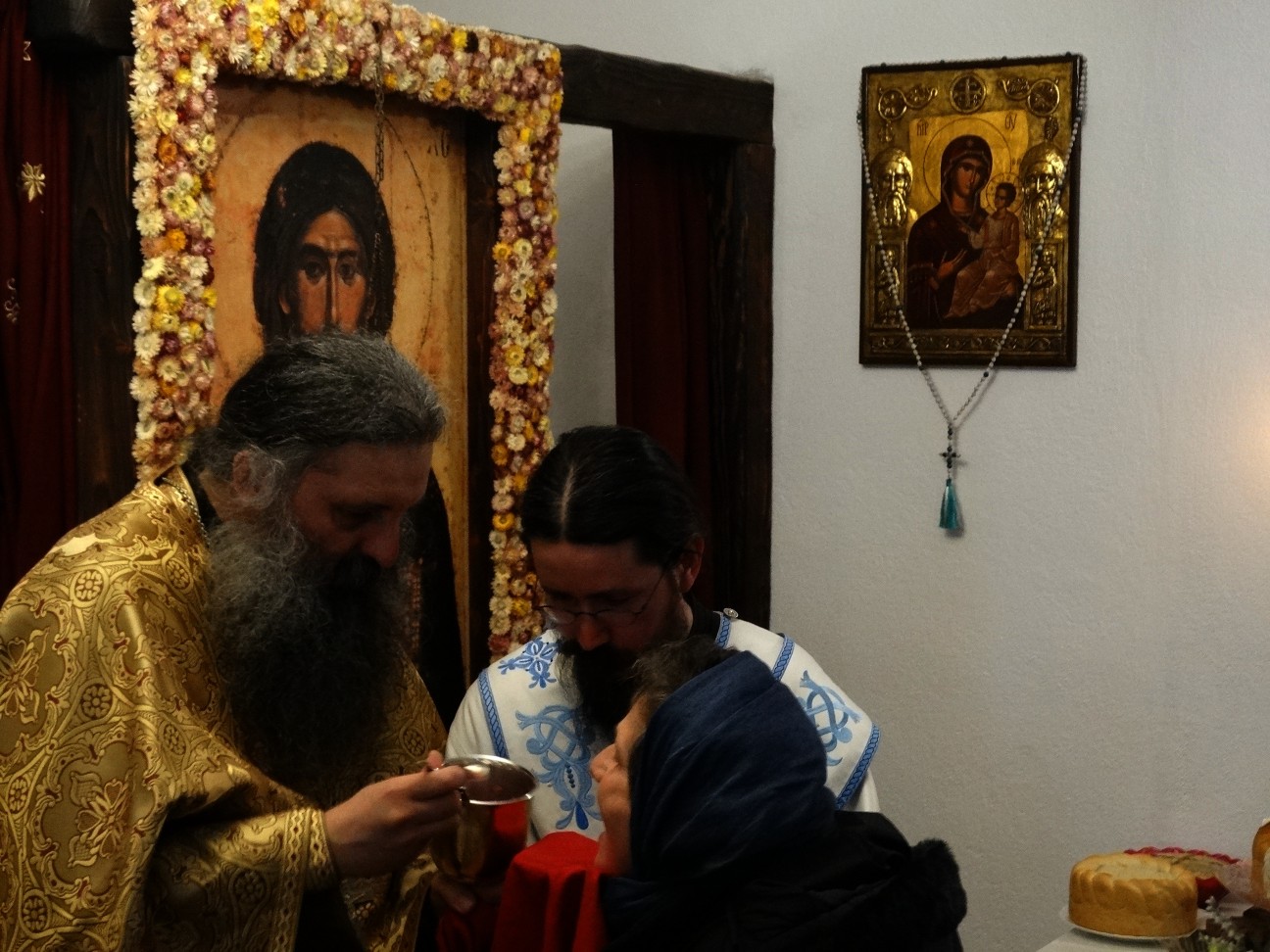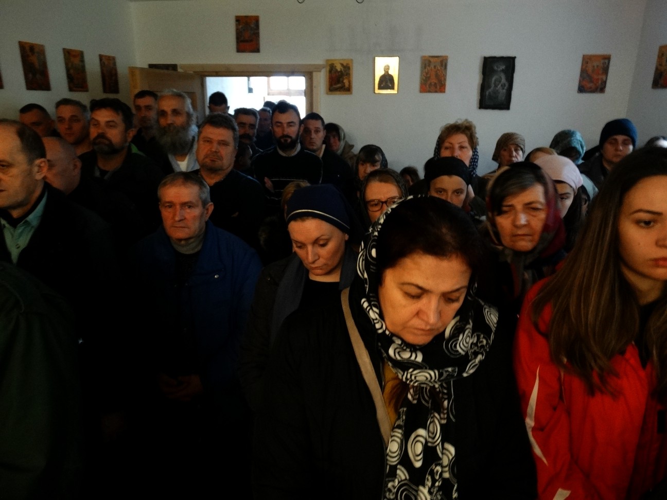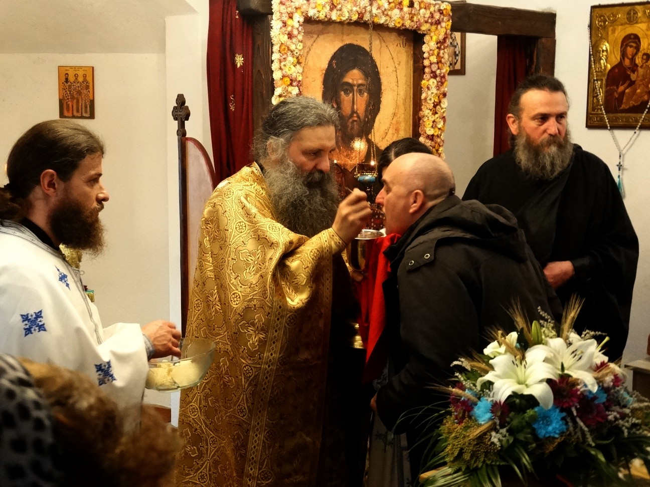 “И ми данас имали смо још једну велику радост, а то је, пуноћа, у ствари, духовне радости овде на земљи. Ово је први дан у току овог Великог поста, у току ове прве седмице када се верни народ причешћује Телом и Крвљу Господа и Бога Спаса нашег Исуса Христа. Причешће, браћо и сестре, јесте најприснија веза коју човек на земљи може да оствари са Богом, јер ми у Причешћу примамо само Тело и Крв Господа Христа и кроз то постајемо Његови сутелесници и чланови тела Његовога, Цркве Божије на земљи. Али, сви знате за Причешће да се треба достојно и припремити. Ја верујем да сте ви сви се припремили за овај свети дан, да сте постили онако како Црква заповеда, да сте се исповедили за своје грехе које као људи сви чинимо и онда приступили Светом Причешћу, јер само тако спремни и припремљени, Свето Причешће нам бива на спасење душе и тела и на живот вечни. Али, иако смо се многи исповедили, за своје грехе и казали свештенику, да ли смо се сви и покајали за своје грехе, да ли смо се одлучили да убудуће, те грехе које смо исповедили, не понављамо, да се одлучније боримо против своје слабости, против страсти, против греха, против гордости своје, против зависти своје и свега онога што је противно закону Божијем. Јер у томе и јесте покајање. Исповест је само једна видљива страна свете Тајне Покајања, а то је да испричамо оно што имамо на души својој, али много важније оно што се у нашој души догађа. То је та одлука да престанемо даље грешити. Јер, Причешће се прима као што сте чули на исцелење душе и тела. Али они који се недостојно причешћују, а на жалост има и таквих, њима то Причешће не бива на спасење, него на суд и на осуду, јер каже свети апостол Павле: „Ко недостојно једе и пије Тело и Крв Господа Христа, суд себи једе и пије.“