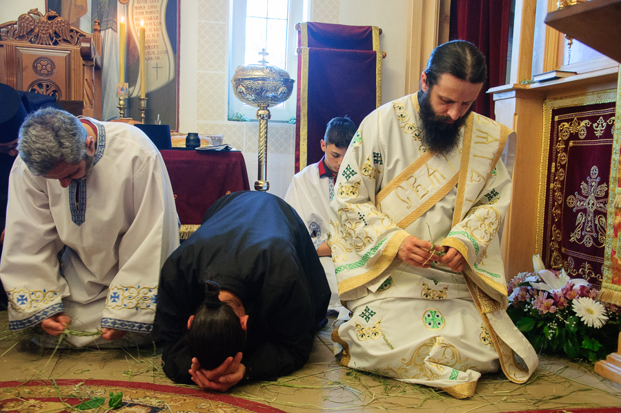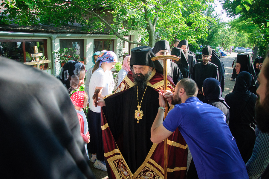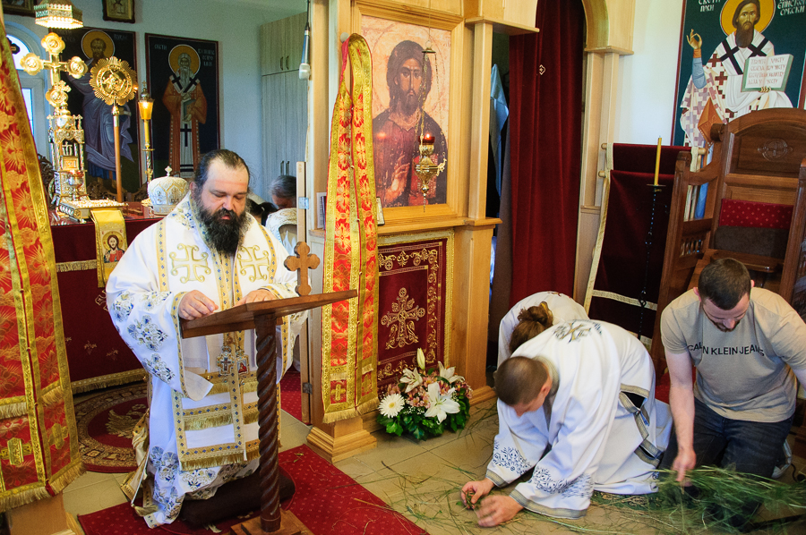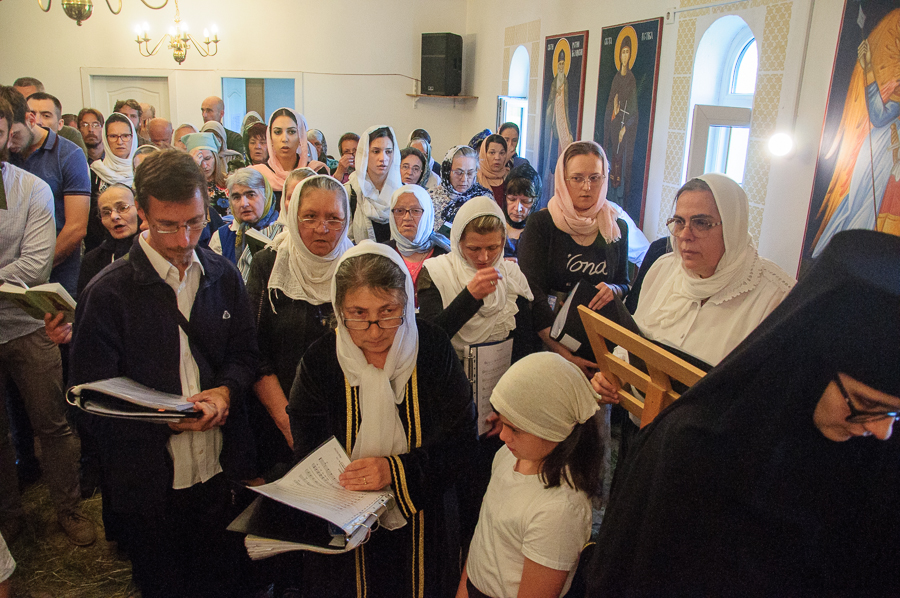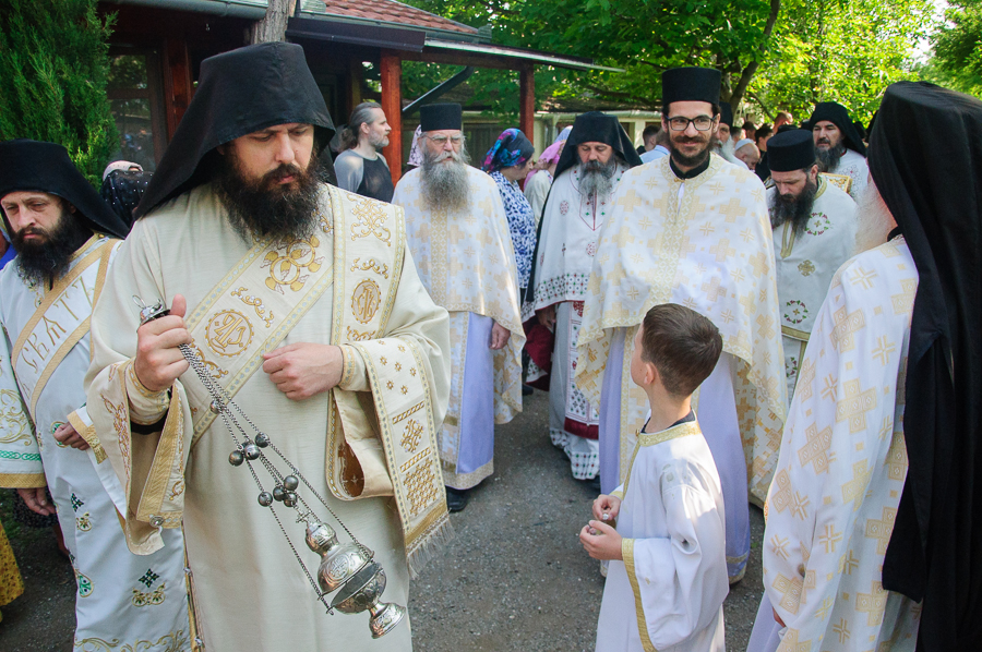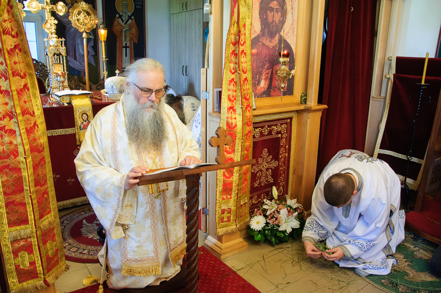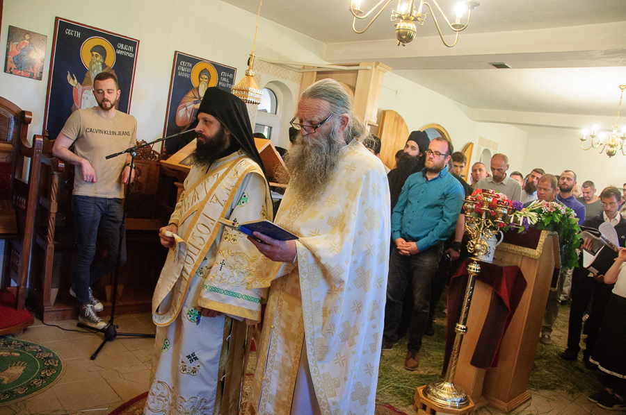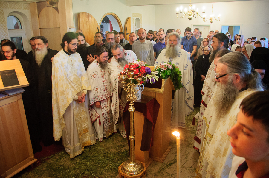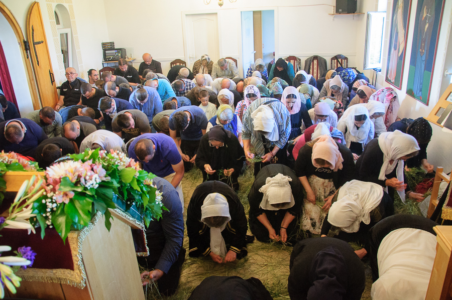 У наставку Литургије одслужено је Вечерње Свете Педесетнице на коме су верници уз клечање и молитву плели венчиће од траве. Након Вечерње Владика Ксенофонт је обавио чин резања славског колача и благосиљања жита које су принели манастирско братство и овогодишњи домаћини славе Милан и Давор Илић из Новог Сада. З аидућу годину су се пријавили Ђуро Шипош и Дамир Мујић из Новог Сада.