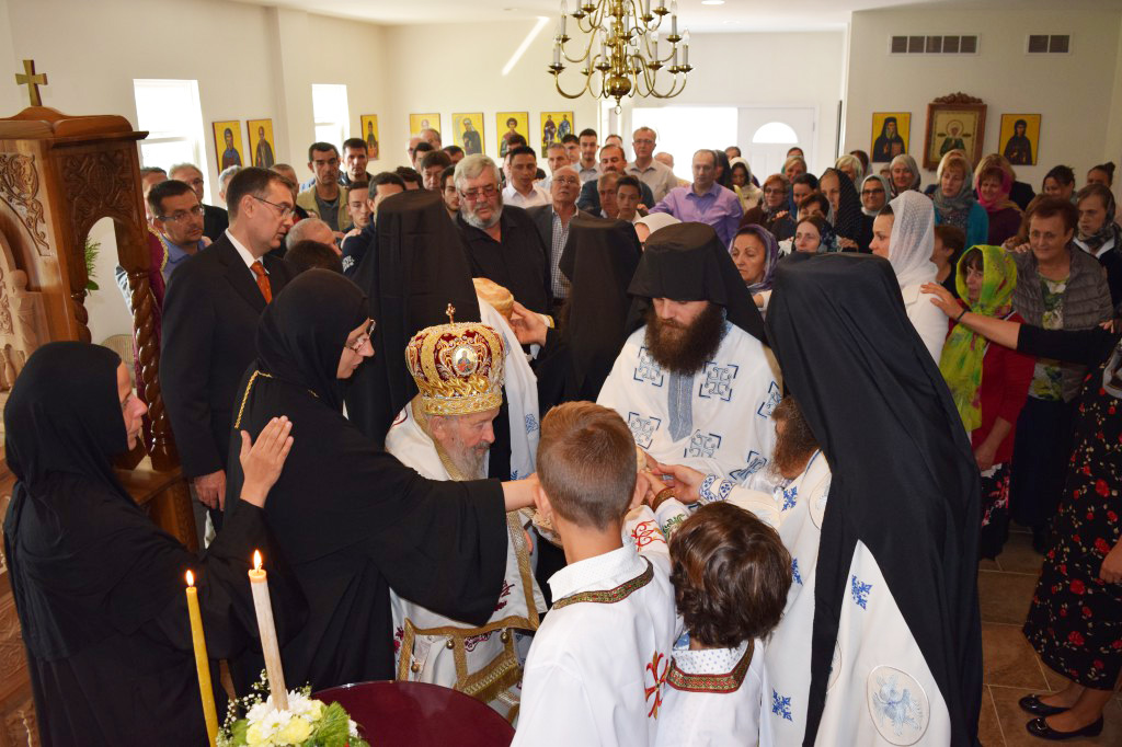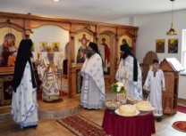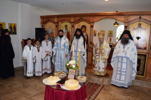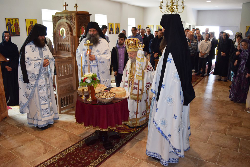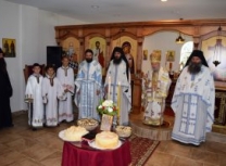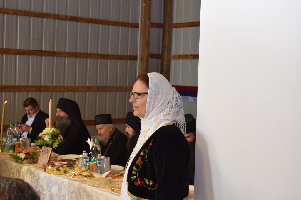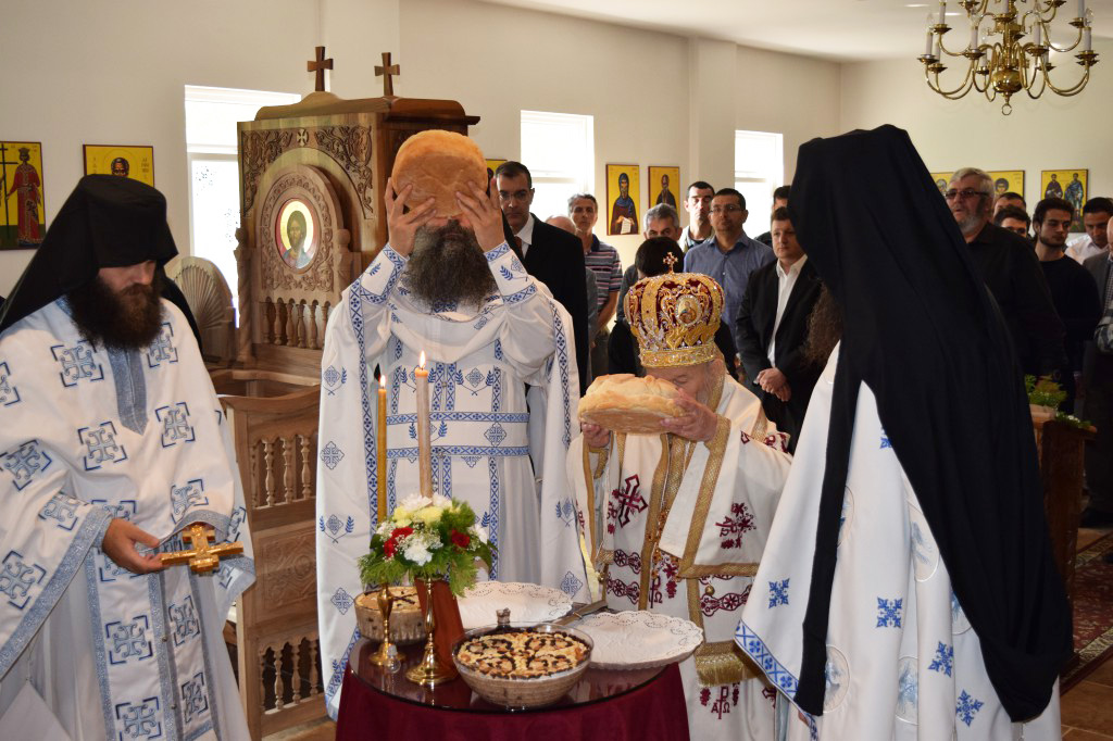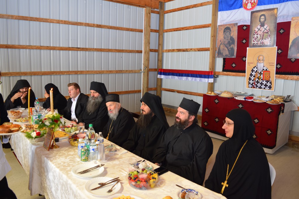 Након Литургије Владика Артемије је извршио чин резања славског колача и благосиљања жита које су у част Светих српских просветитеља принели братство манастира и овогодишњи домаћини славе Љубо и Ана Ђурић из Виндзора. За идућу годину пријавили су се Жељко и Сузана Митровић, такође из Виндзора (Канада).