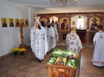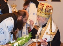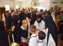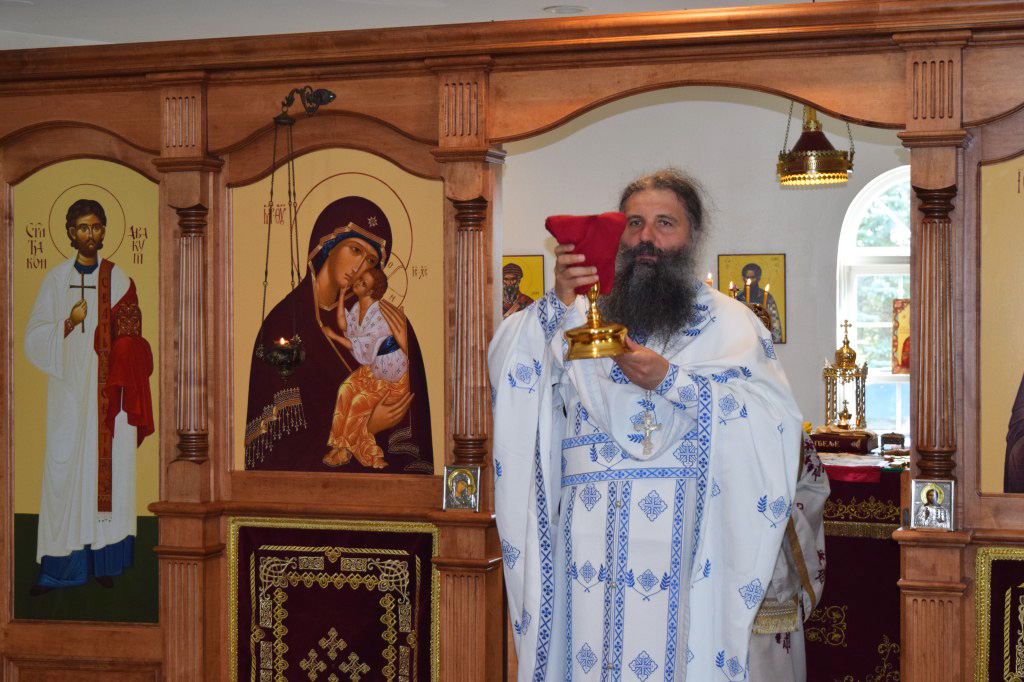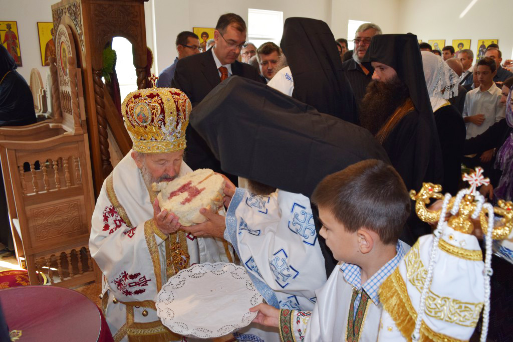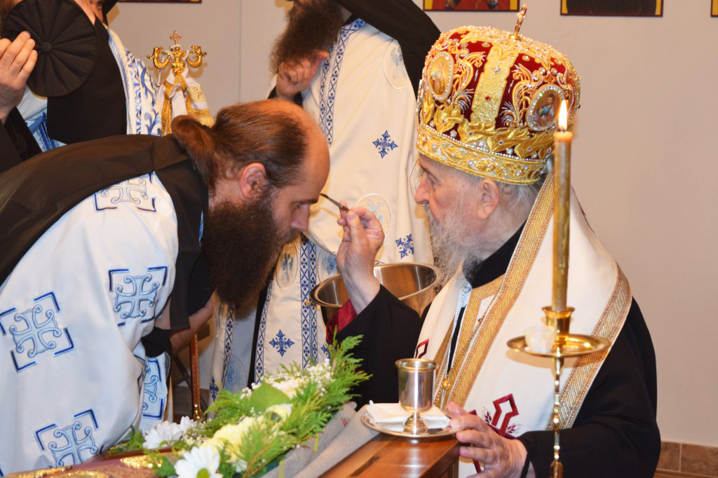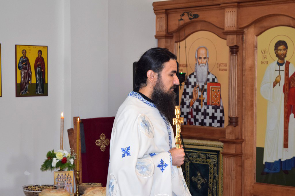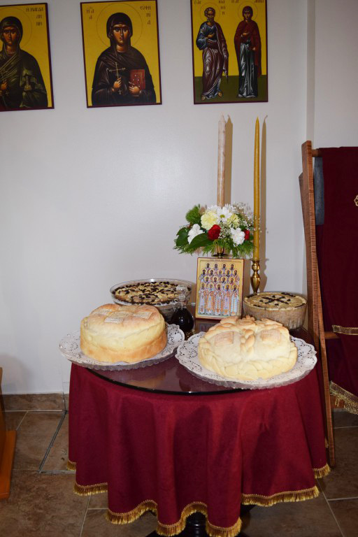 Након Литургије Владика Артемије је извршио чин резања славског колача и благосиљања жита које су у част Светих српских просветитеља принели братство манастира и овогодишњи домаћини славе Љубо и Ана Ђурић из Виндзора. За идућу годину пријавили су се Жељко и Сузана Митровић, такође из Виндзора (Канада).