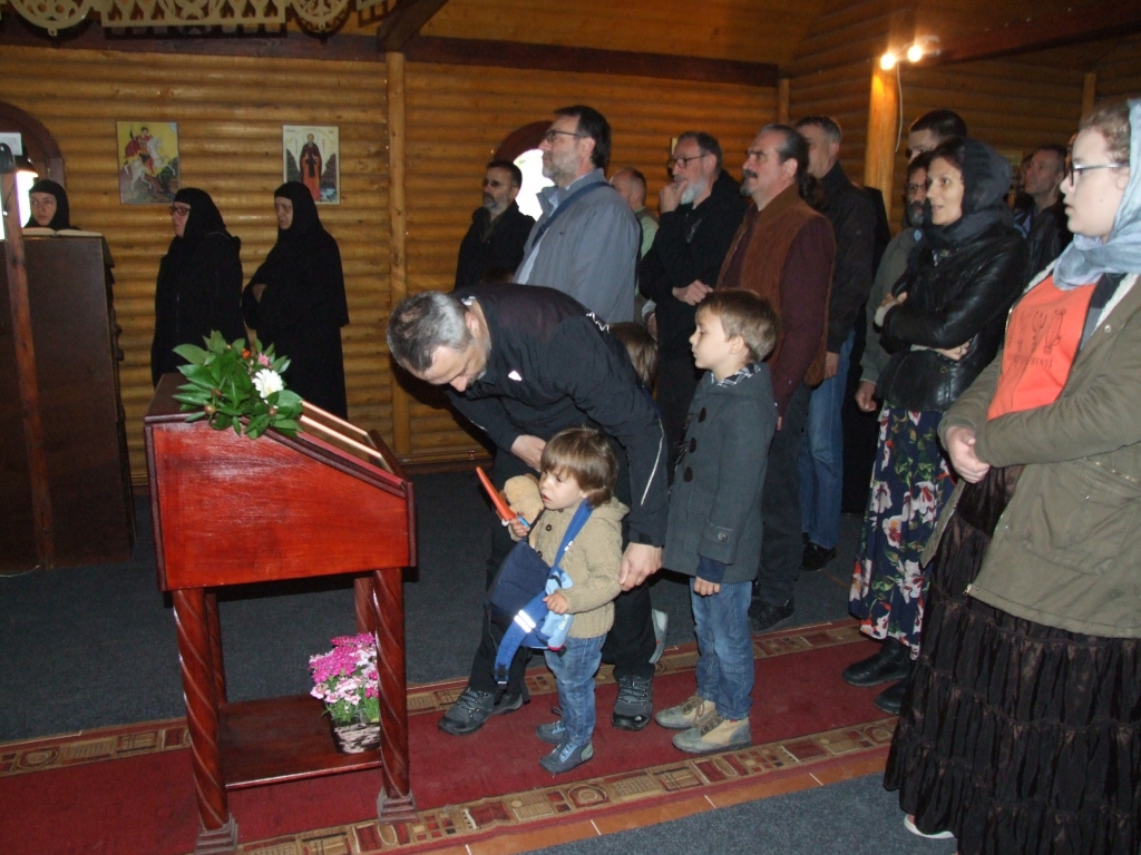 Затим се Владика обратио свима присутнима пригодном беседом у којој је говорио да је за спасење потребно да испуњавамо заповести Господње, да живимо са Господом Христом и да идемо за Њим, а то значи да примимо на себе крст свој и да га смирено, са трпљењем носимо. Владика је још додао да је најважније да сачувамо нашу Свету Православну Веру, јер без ње су узалудни сви трудови наши.