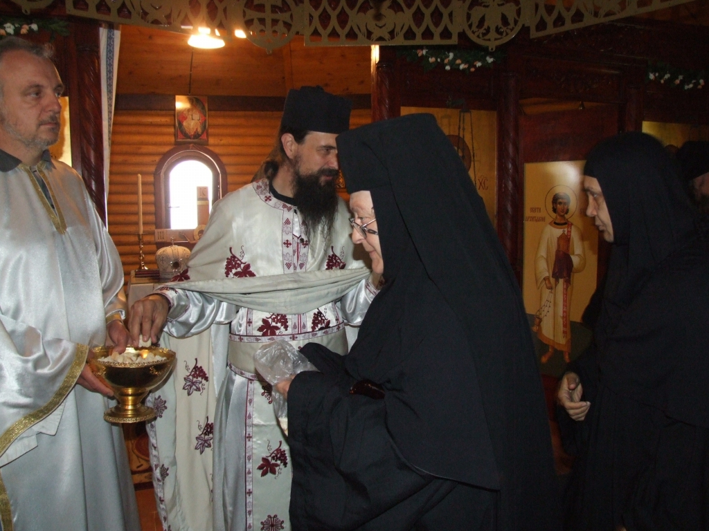 Након Литургије Владика Николај је извршио чин резања славског колача и благосиљања жита, које су у част Светог апостола Томе принели манастирско братство и овогодишњи домаћин славе Горан Васиљковић из Крушевца. За наредну годину пријавили су се Слободан Алексић, Дејан Унић и Славољуб Алексић, сви из Стопање код Крушевца.