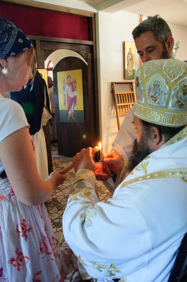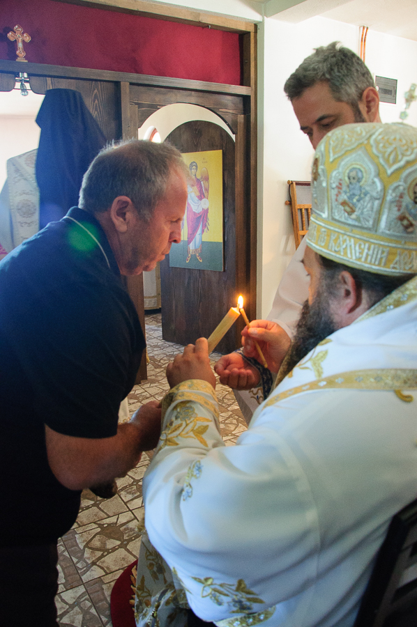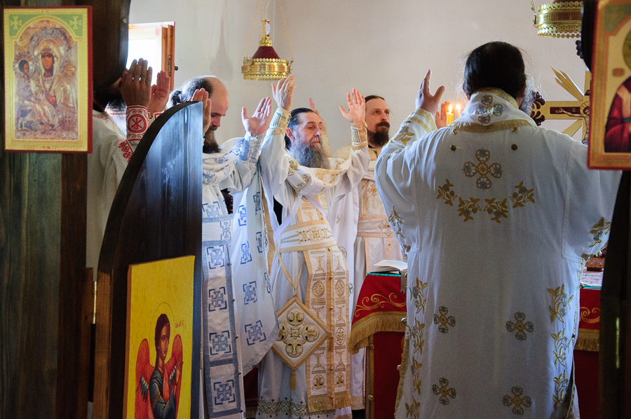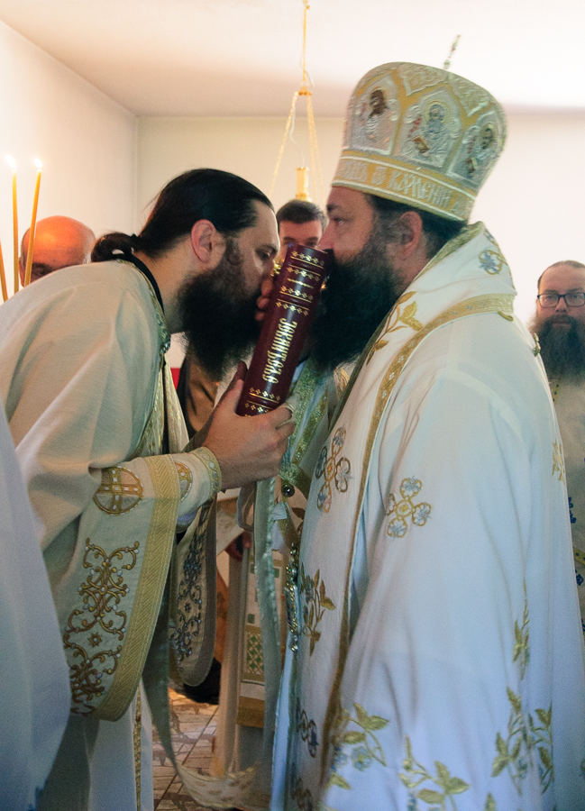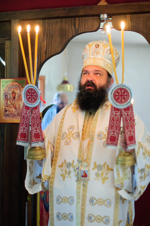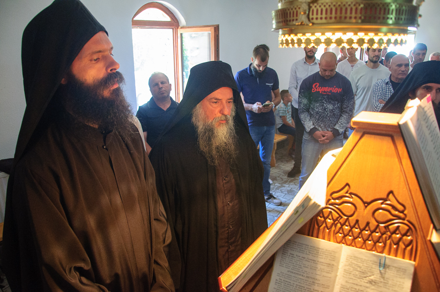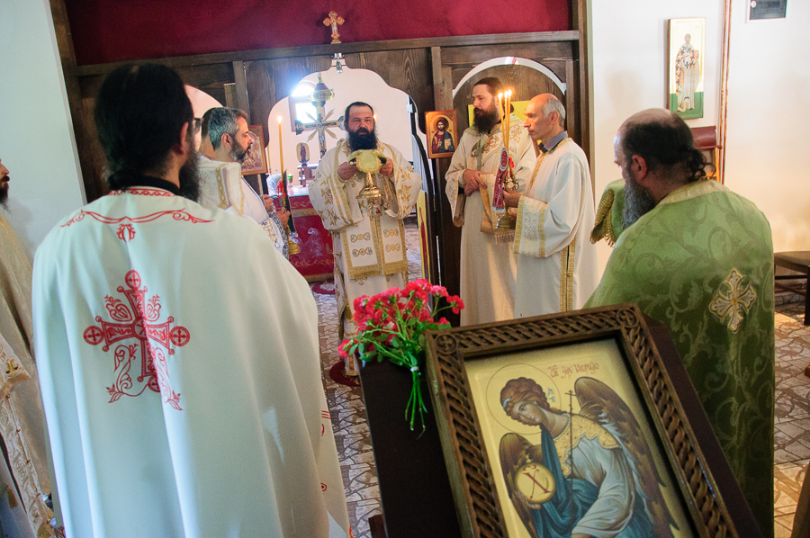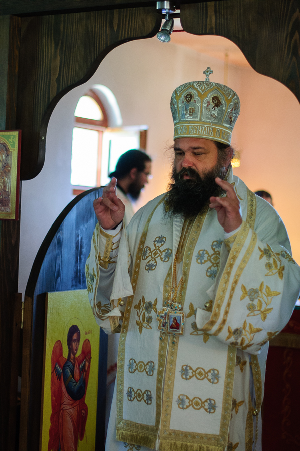 “Нека је благословен Бог који шаље архангеле Божје да људе утврђују у вери православној, па и нас, браћо и сестре, да утврди у вјери православној, јер мимо свих врлина, мимо свих добродјетељи, онога што човек у животу своме чини, најважније је бранити и чувати вјеру православну. Па и ми се овдје сакупљамо у овој светињи, у овој катакомби, са оцем Бенедиктом и његовом братијом, ви се сакупљате сваке недеље и празника, по својим моћима, са свих страна Косова и Метохије, а долазмо и са других страна, ево дођосмо данас са разних страна, да прославимо велики храмовни празник ове светиње, да прославимо архистратиге Божје, да се Богу помолимо, да ове дивне Тајне узнесемо Богу, да од Њега заузврат добијемо Његово Свето Тело и Његову Свету крв којима се причешћујемо, којима се утврђујемо на живот вјечни. Да вјеру православну исповједамо и да знајући све то и осјећајући све то и видећи ову дивну Литургију препуну благодати, ничега се у овоме свјету не бојимо, него утврђивани силом светог архангела Гаврила и свих небеских сила бестјелесних и свих светитеља Божјих који исповједаху вјеру истиниту православну, као што и ми данас исповједамо, који се борише за свету истину православну, као што се и ми данас боримо“.