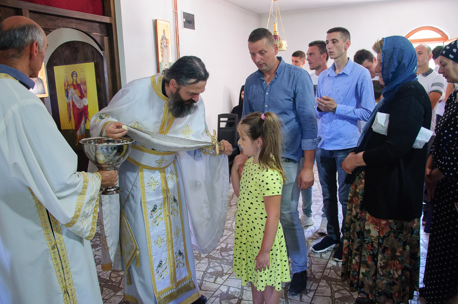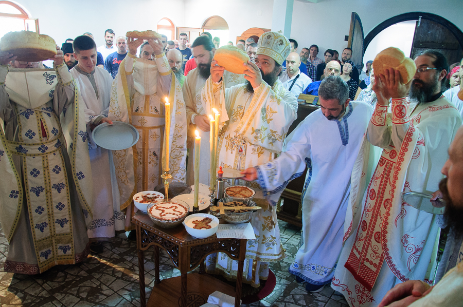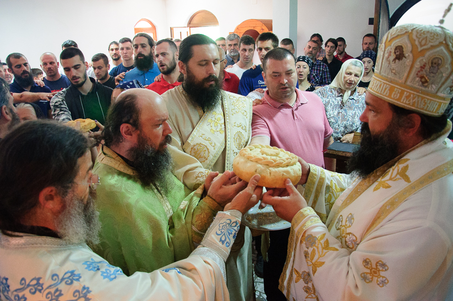 Након Литургије владика Ксенофонт је извршио чин резања славског колача и благосиљања жита које су у част светог архангела Гаврила принели братство манастира и овогодишњи домаћини славе: Станимир Николић из Кусца, Марко Мајсторовић из Београда, Миљана Кузмановић и Невена Декић из Грачанице. За идућу годину пријавили су се: Горан Антић из Свињара, Јован Миљковић из Беча, Милош Матијевић из Горњег Милановца и Немања Николић из Краљева.