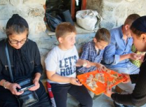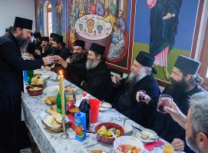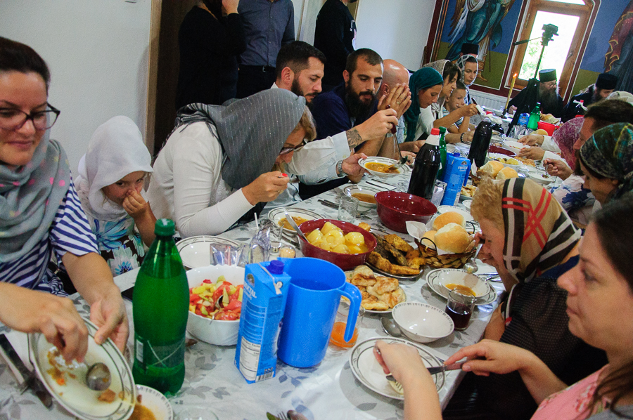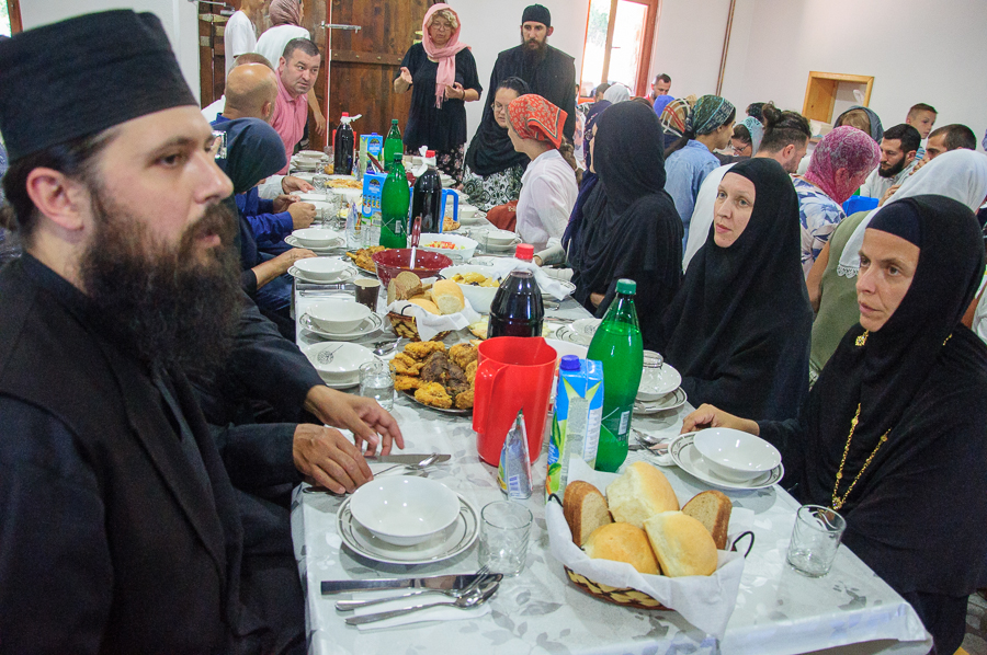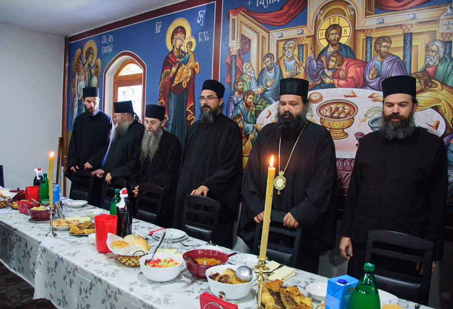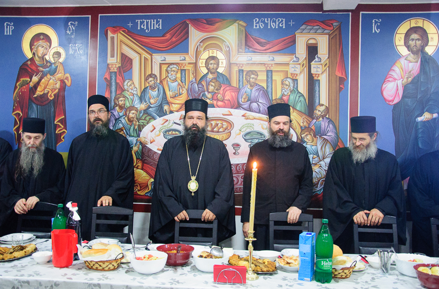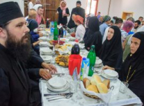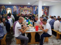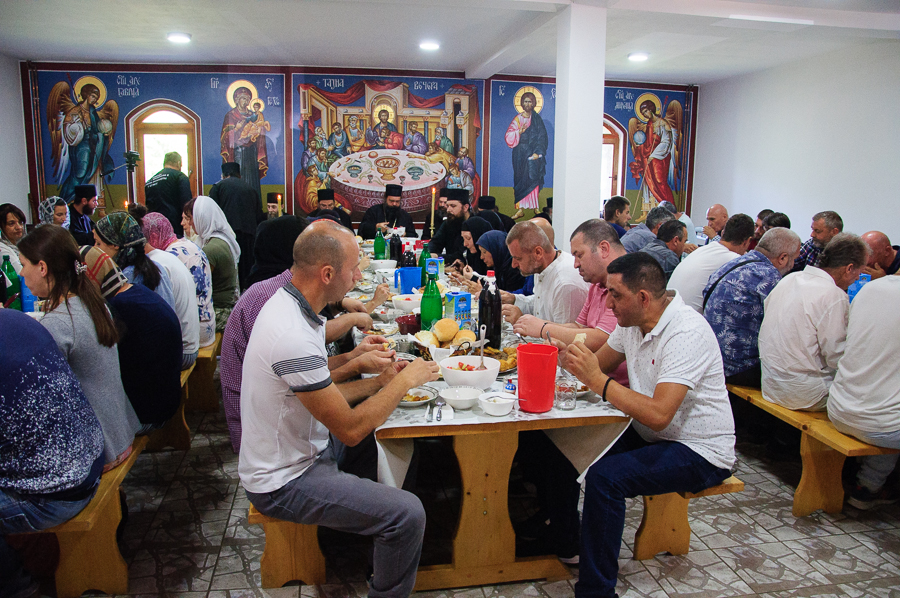 Уследила је славска трпеза љубави за све присутне коју су припремили манастирско братство и овогодишњи домаћини славе.
