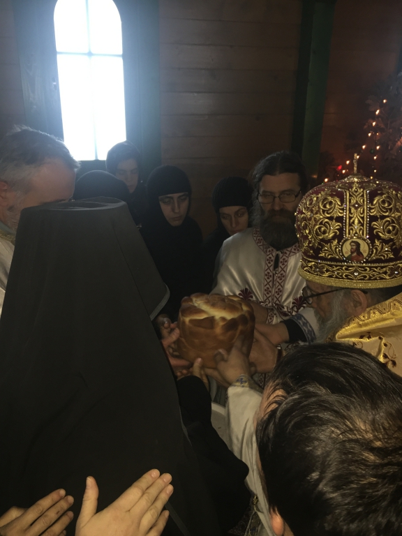 Након Литургије Владика Николај је извршио чин резања славског колача и благосиљања жита које је у част светог архиђакона Стефана принело братство манастира.