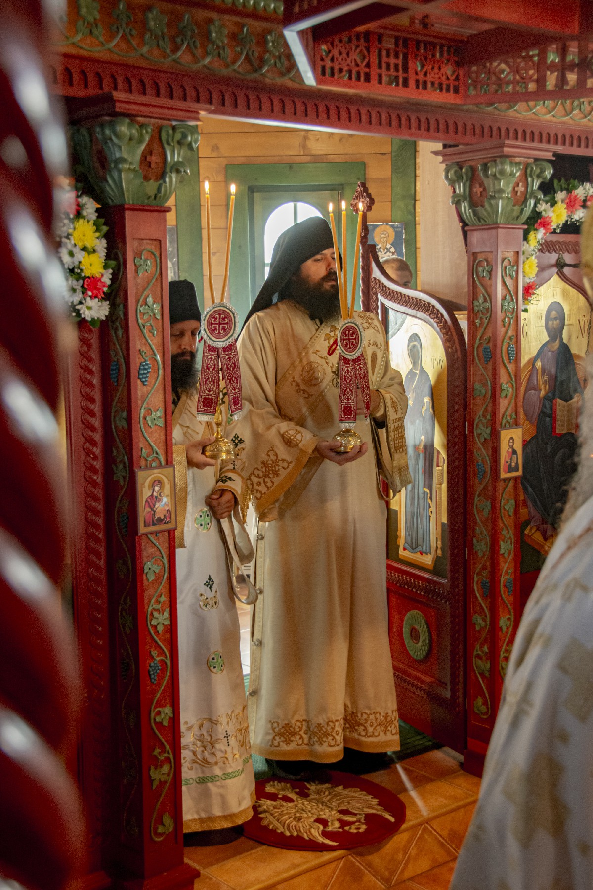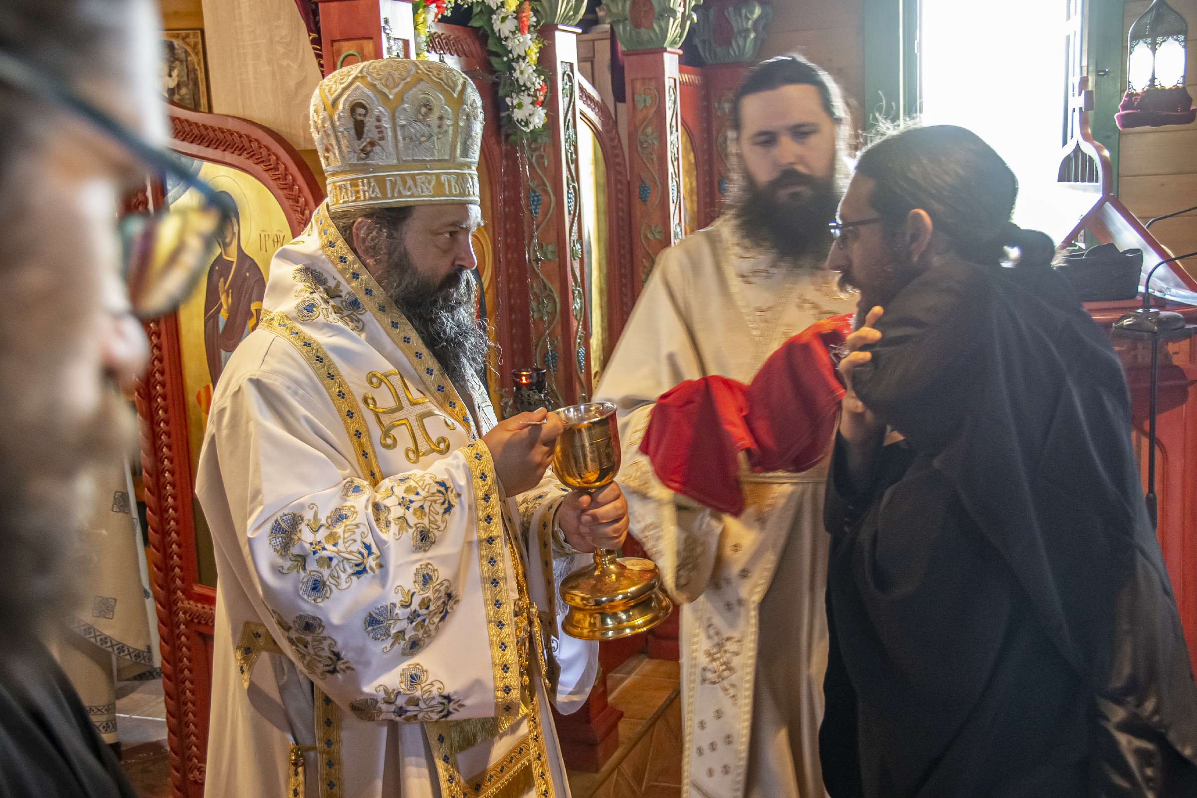 „Свети Стефан нас поучава својим примером да се нико не изговара ни ђакон, ни поп, ни свештеник, дакле, ни монах да каже ко сам ја да бих исповедао Истину и да бих бранио веру православну. Ми видимо да то што је Свети Стефан био ђакон, њему то није представљало изговор да не сведочи Истину, да не исповеда Истину, већ напротив. Он је тим пре осећао обавезу више да исповеда истину Христову до краја, свим својим снагама докле год би било живота у његовом телу. Овај празник, ова храмовна слава и ове године обележена тим дирљивим догађајем и чином а то је синоћно монашење. И то посебно представља уклрепљење и оснажење Цркве Божије и верника у Цркви Божијој јер управо је тај монашки подвиг настао поред мученичког подвига који је започео Богочовек Христос, први настојао Свети првомученик Стефан а онда после ере, читаве плејаде мученика, великих страдања, тај мученички дух, нарав и етос уселио се дакле у редове монашке и у том сасуду монашког подвижничког живота чува се та непоколебљива вера, та решеност, та непоколебљива одлучност да се испуњава онај мото, она изрека Светог Јустина, Светих отаца – Све за Христа, Христа ни за шта“, беседио је владика Максим.