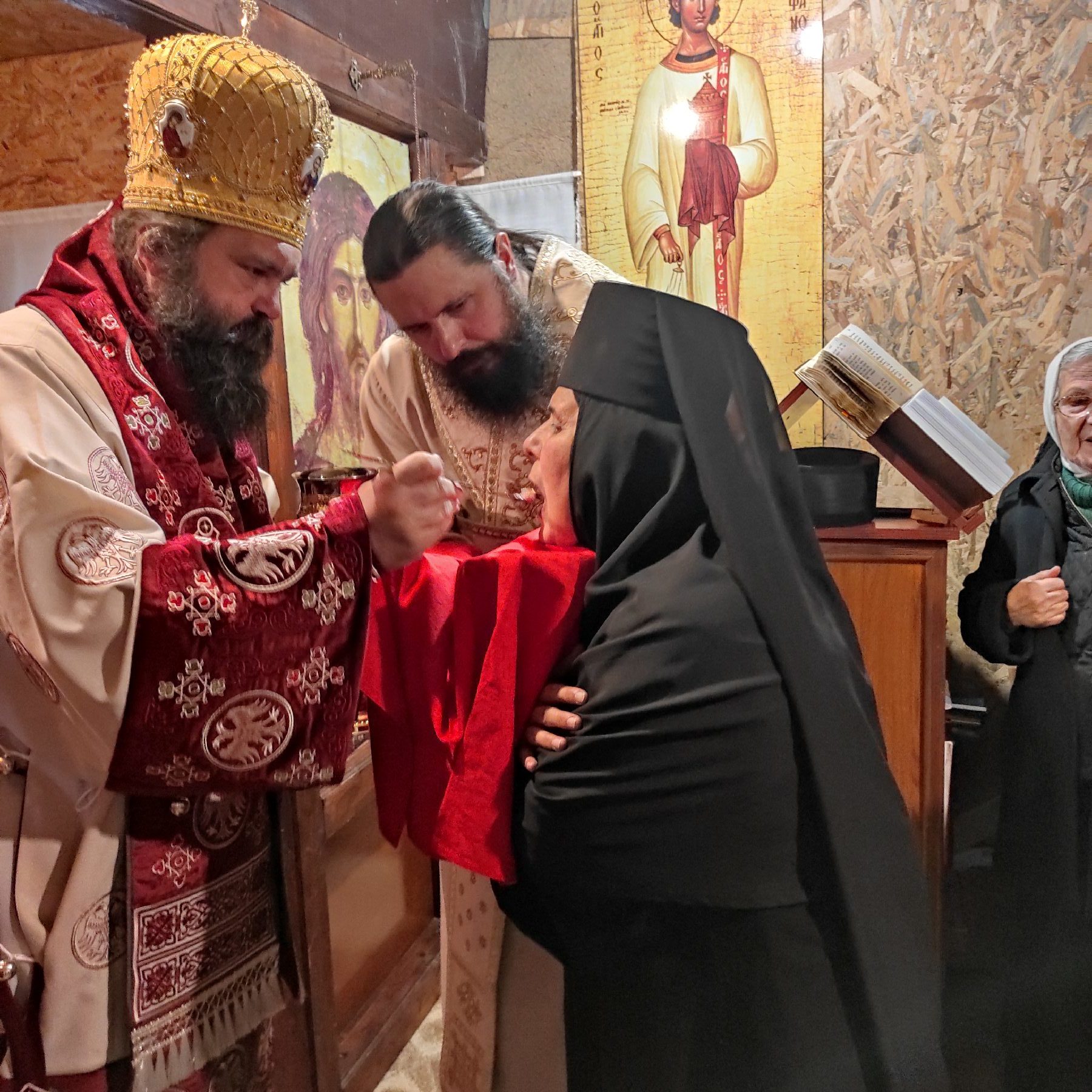 Нека би дао Бог да се у радости у овој светињи и у свима нашим светињама, јер окупљајући се у нашим светињама прослављамо не само светитеље Божије него самога Господа Христа исповједајући вјеру православну, и зато се и сакупљамо по овим нашим скромним катакомбама, не по неким великим и велељепним црквама него у овим скромним катакомбама јер Дух дише гдје хоће па и Дух дише овдје са нама, браћо и сестре, и са ктиторима ове свете обитељи и са мати Сузаном која се овдје труди у монашким подвизима својим, и ктиторима свете обитељи ове који у спомен ћерке своје Наде, као што ви знате, подигоше ову светињу, помогоше да се подигне ова светиња да би Господ и ћерку њихову удостојио у насељима тим небеским, јер оно што Господ припреми њој и свима нама, ако се удостојимо, ако Бог да једнога дана да угледамо оно што је Господ припремио, десиће се оно што каже апостол Павле, да Господ припреми оно што око не видје и ухо не чу и у срце човјеку не дође, то је Бог припремио онима који Га љубе. Љубимо зато, браћо и сестре, Господа свом душом својом, свим срцем својим, свом мишљу својом, свом снагом својом како нас Господ и учи у Светом Јеванђељу поучавајући нас у оној двојединој заповјести, љубимо дакле Господа и љубимо ближњега својега као самога себе. По томе ће Господ познати и видјети, по томе ће и људи познати и видјети да смо заиста ученици Господњи. Амин. Боже дај“, беседио је владика.