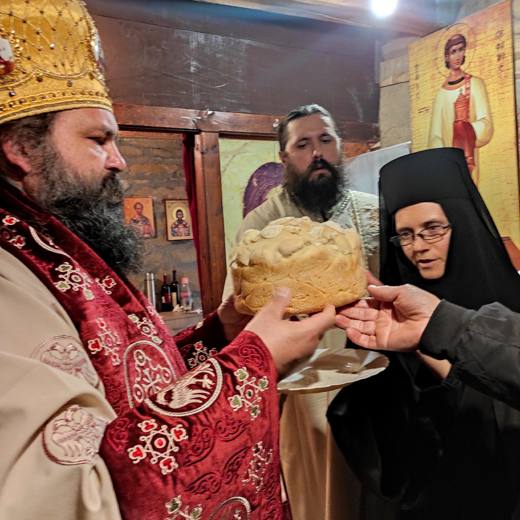 Након Свете Литургије Владика Ксенофонт је извршио чин резања славског колача и благосиљања кољива, које су принели настојатељица манастира мати Сузана и овогодишњи домаћин славе Драган Савићевић из села Косанчић Иван код Мердара. За наредну годину за домаћине славе пријавили су се Ненад Јовановић из Пљакова и Зоран Ћосић из Куршумлије.
