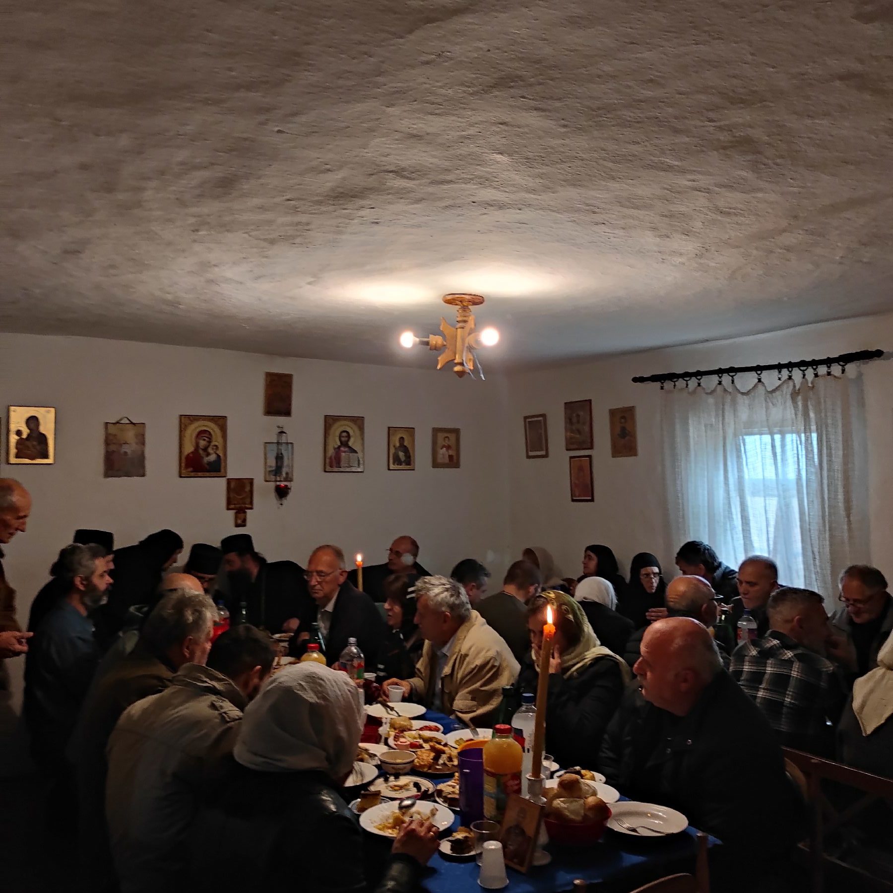 Након Свете Литургије присутни су се укрепили за богатом трпезом, коју су припремили мати Сузана, овогодишњи домаћин славе и сестре из Прокупља, Сувог Дола, Куршумлије и Пљакова. Посебну радост доживели су верници када је владика отпевао песму „Суза Косова“, непреболну, заветну песму косовских и метохијских прогнаника, у чему су му се придружили сви присутни. Ако Бог да да је отпевамо догодине у Призрену.