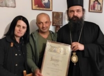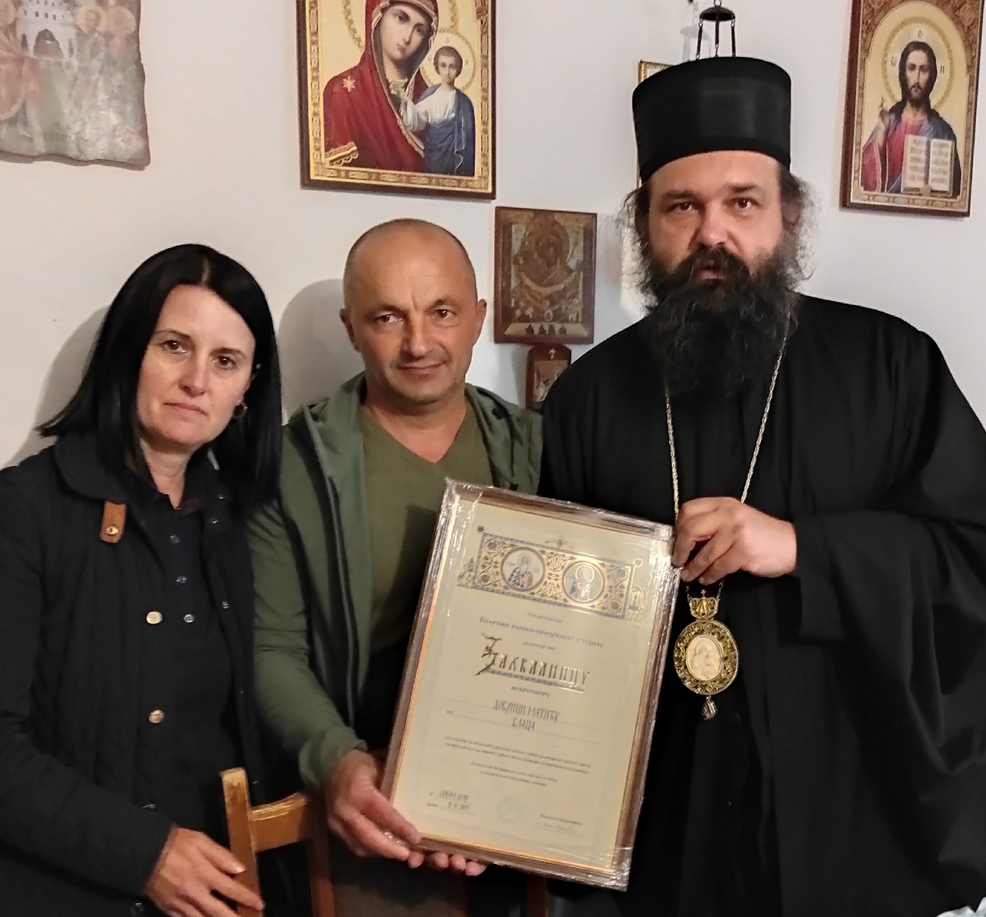 Потом је Владика Ксенофонт уручио захвалницу Добрици Матићу из Блаца за исказану делатну љубав у борби за очување чистоте светог Православља.