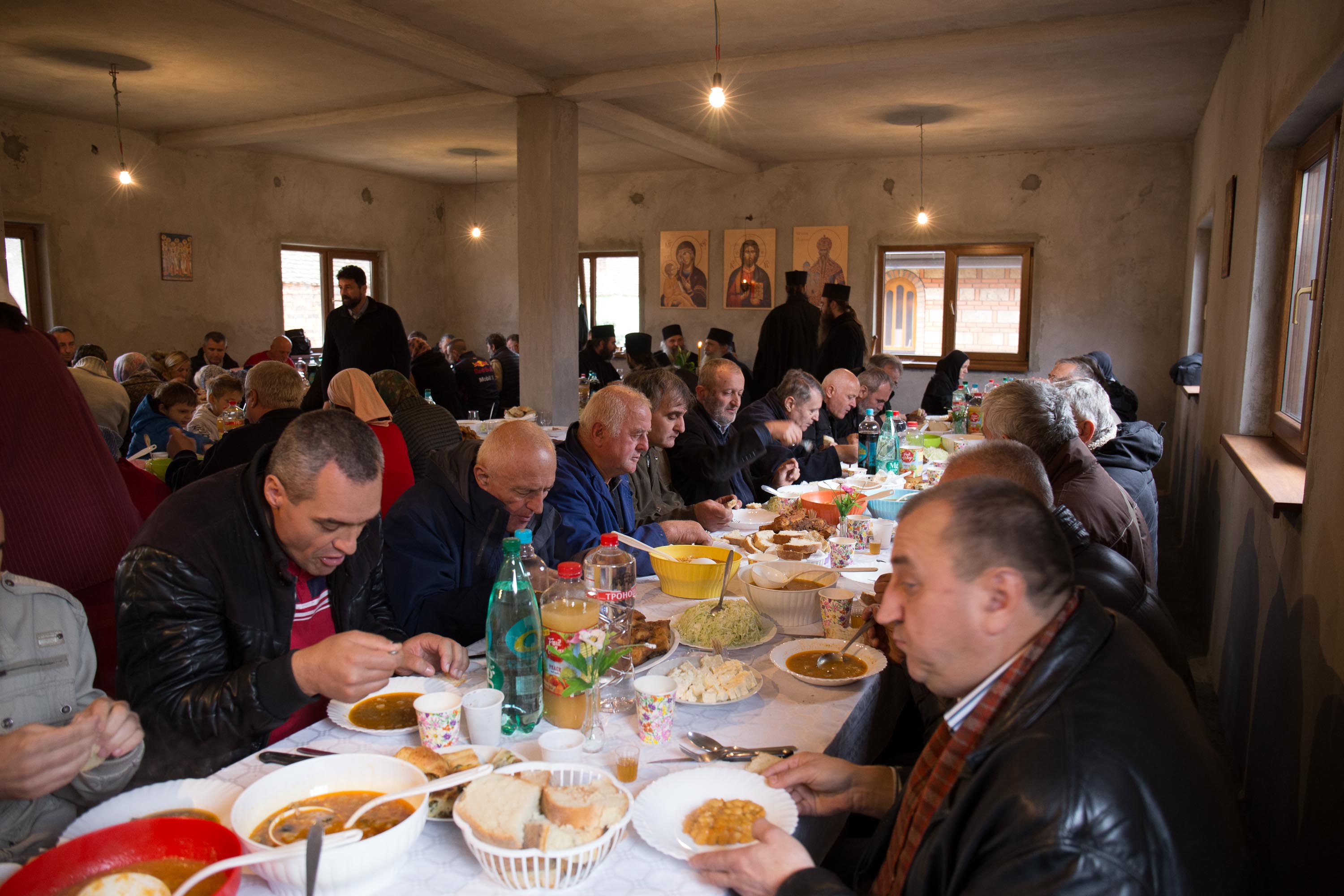 Празнично славље настављено је трпезом љубави коју су приредили манастирско братство и домаћини славе.