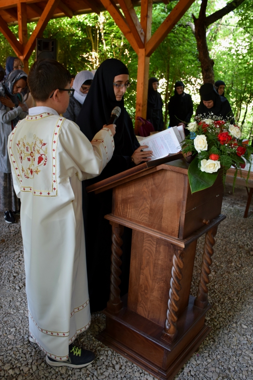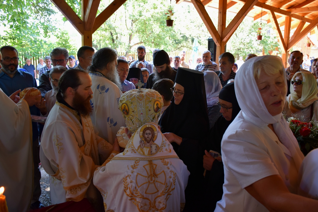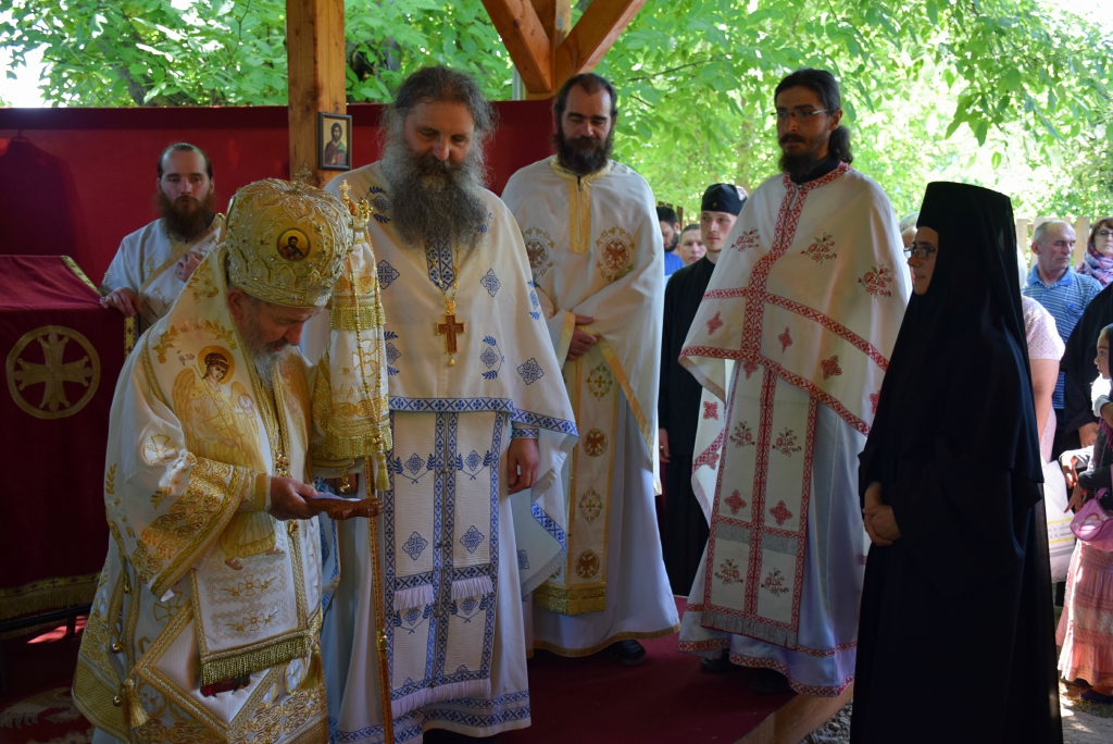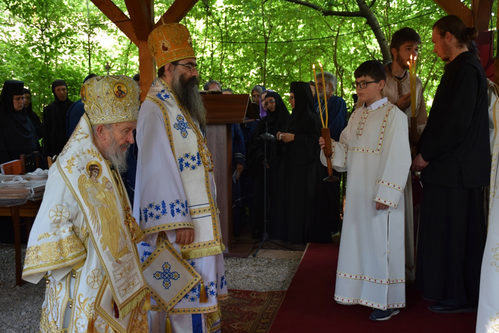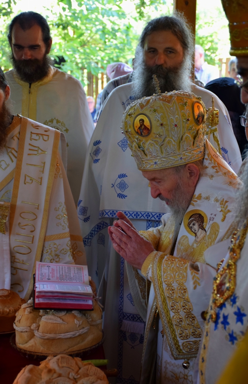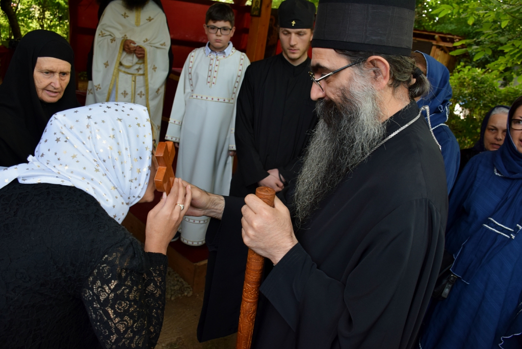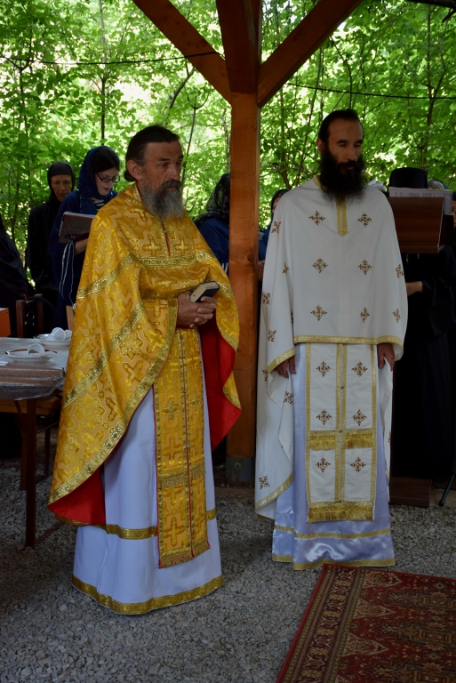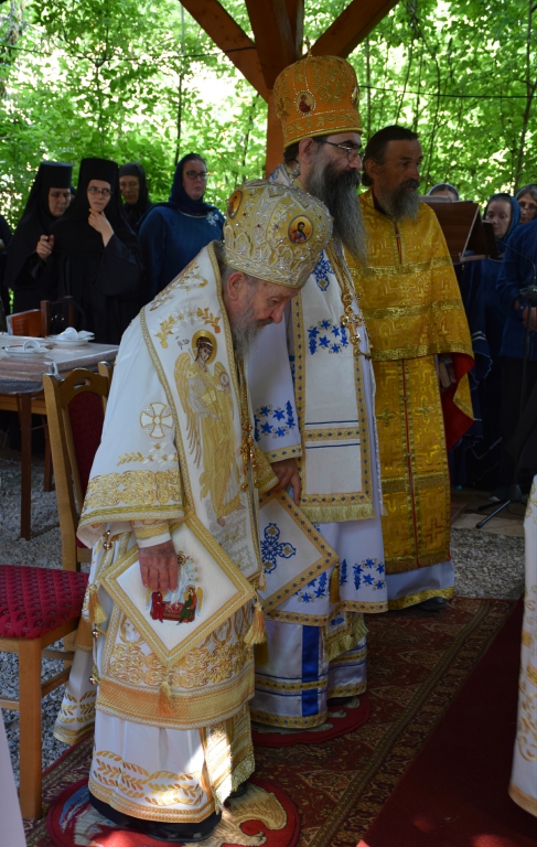 Његовим молитвама и молитвама светог Јована Крститеља, браћо и сестре, да вас Господ све укрепи у добром подвигу вере, да Господ благослови ову свету обитељ, да се она развија материјално и духовно, да сестре овога светога манастира животом својим прославе Господа као што је то учинио свети Јован Крститељ и свети Никита, да се име Божије слави у овој светој обитељи док је сунца и месеца.”