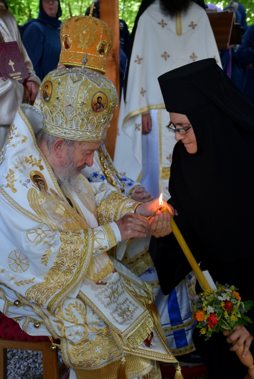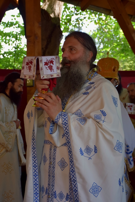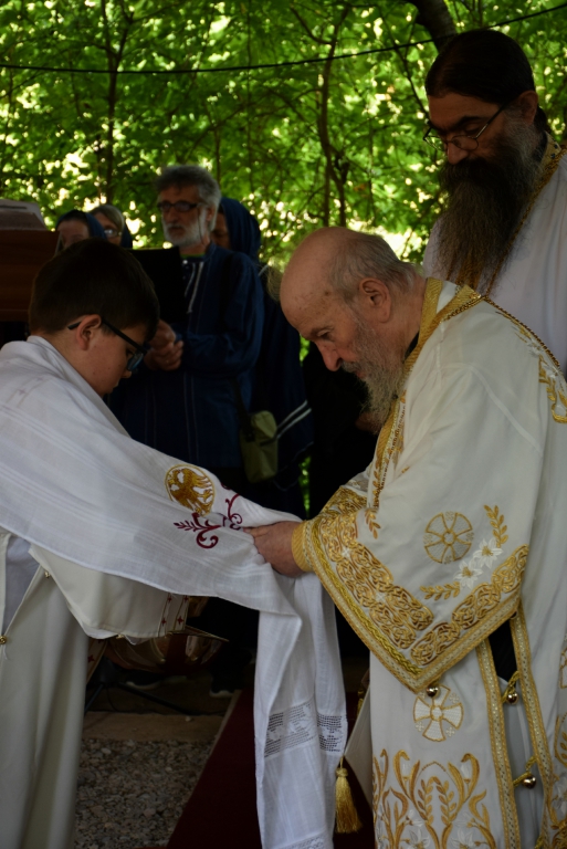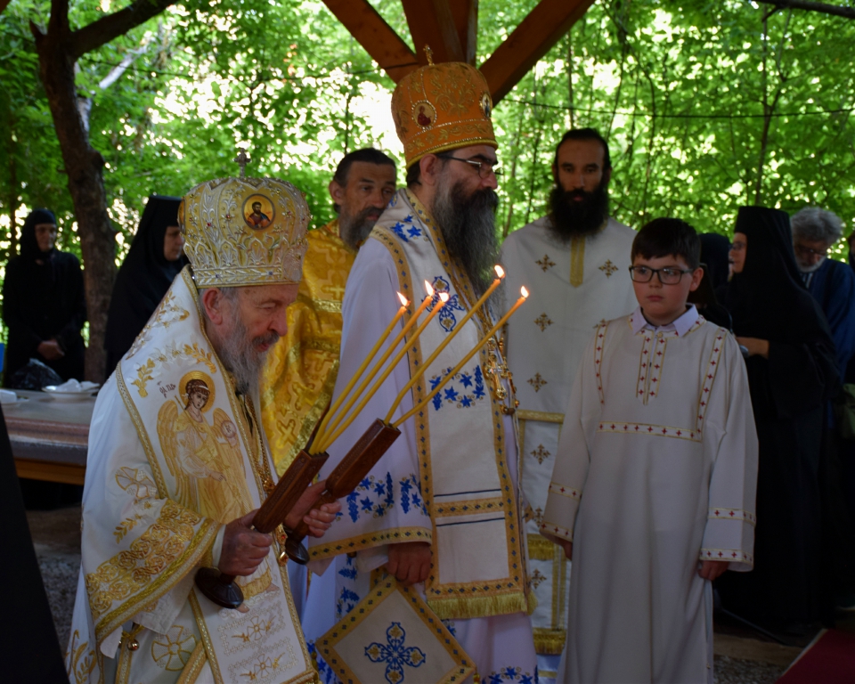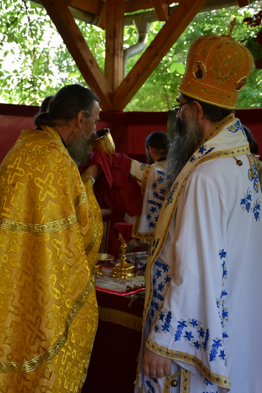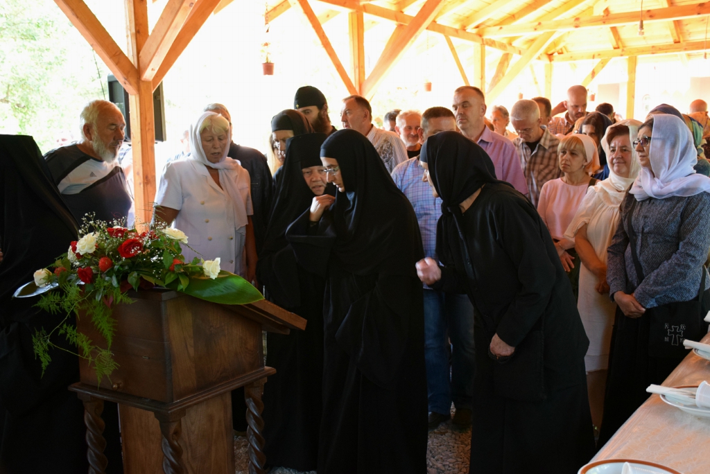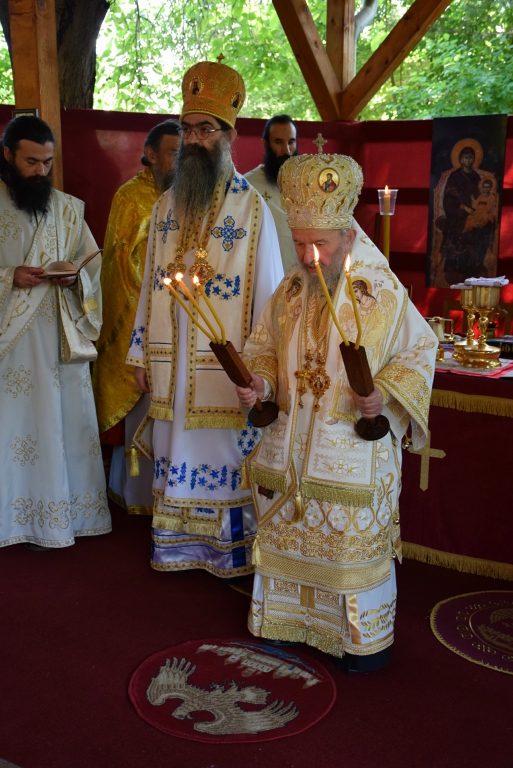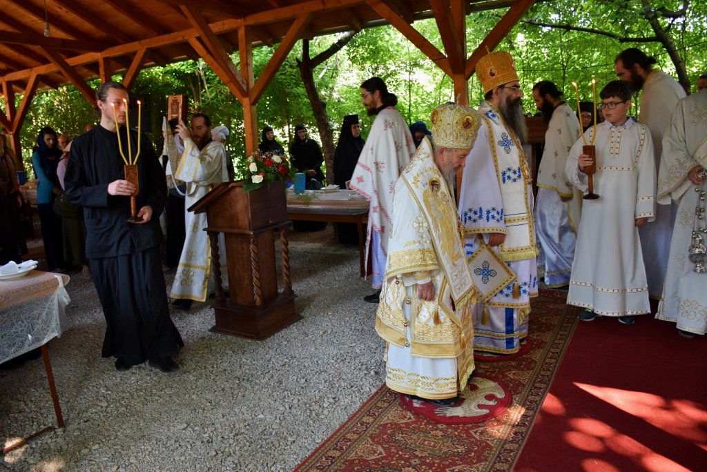 Његовим молитвама и молитвама светог Јована Крститеља, браћо и сестре, да вас Господ све укрепи у добром подвигу вере, да Господ благослови ову свету обитељ, да се она развија материјално и духовно, да сестре овога светога манастира животом својим прославе Господа као што је то учинио свети Јован Крститељ и свети Никита, да се име Божије слави у овој светој обитељи док је сунца и месеца.”