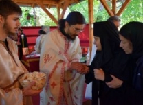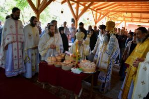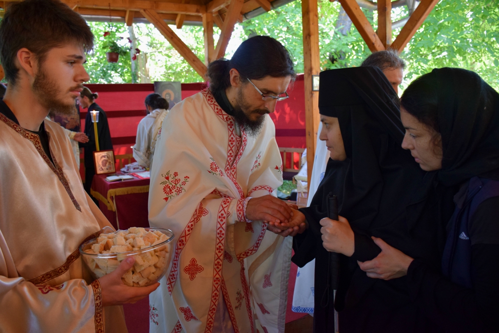 Након Литургије Владика Артемије је извршио чин резања славског колача и благосиљања жита које су у част светог Никите Ремезијанског принели сестринство манастира и овогодишњи домаћини славе: Југослав и Славица Андрејевић из Књажевца и Биљана Милошевић из Вртишта. За следећу годину пријавилу су се: Зорица Илић из Ниша и Љиљана Ђорђевић у име Равногорског покрета из Београда.