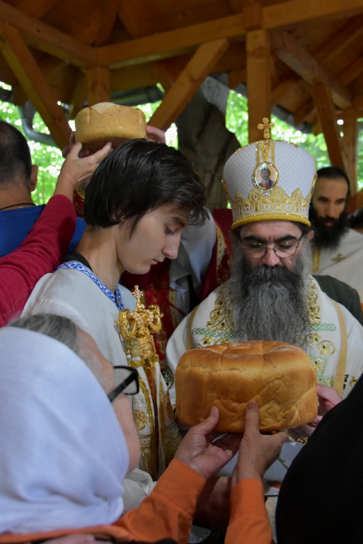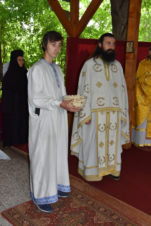 Након Литургије Владика Артемије је извршио чин резања славског колача и благосиљања жита које су у част светог Никите Ремезијанског принели сестринство манастира и овогодишњи домаћини славе: Зорица Илић из Ниша и Равногорски покрет из Београда. За следећу годину пријавили су се: Данијела Стојановић из Јелашнице и Петар и Ирена Мандарић из Београда.