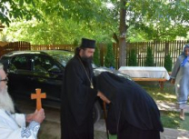 “Потрудимо се драга браћо и сестре да у животу своме подражавамо и Светог Јована Крститеља и Светог Никиту Ремезијанског. Свети Јован Крститељ ништа није јео од наше хране, нити је хлеба јео нити вина пио, а ми макар да будемо уздржљиви у храни и да поштујемо заповедне постове које Црква прописује. Он није носио меке хаљине, а ми макар будимо скромни у одевању, не тражимо скупоцену формирану одећу. Он је носио крст свој и пострадао за Господа а ми макар радосно, благодарно да претрпимо све невоље које Господ допусти ради очишћења наше душе од грехова, ради спасења нашег. Нека би нам Господ дао снаге да носимо крст свој, да и ми животом својим прославимо Господа, да се и ми по изласку из тела нађемо тамо где су данас Свети Јован Крститељ и Свети Никита Ремезијански, да са њима и са свима светима славимо Тројединог Бога нашег Оца и Сина и Светога Духа кроза све векове и сву вечност. Амин.“