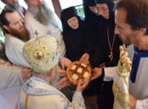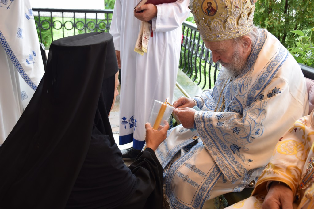 Након Литургије Владика Артемије је најпре извршио чин освећења грожђа а затим и чин резања славског колача и благосиљања жита које је принело сестринство манастира и овогодишњи домаћин славе Микан Васовић из Чачка. За идућу годину за домаћина славе пријавили су се Босиљка Зухановић, Оливера Ристић и Рајка Бошковић из Београда.