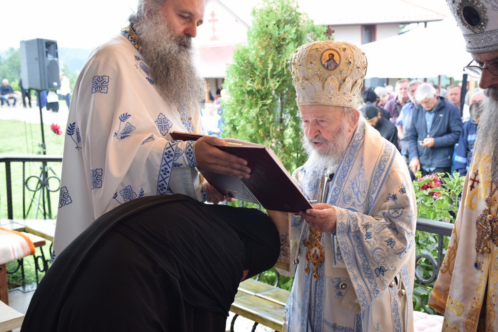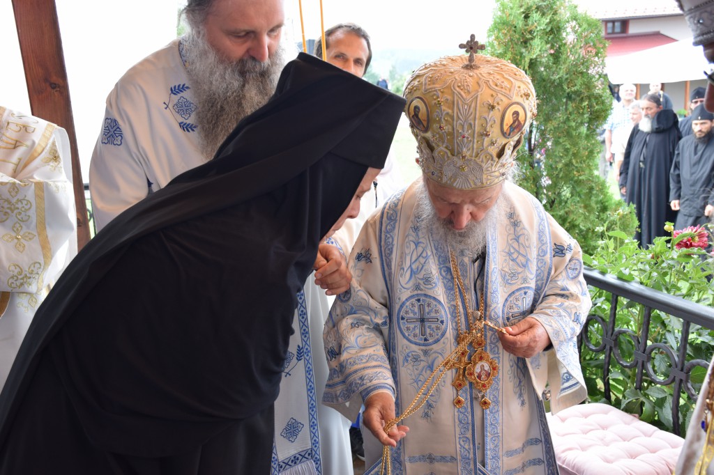 „Све што је Господ учинио, имало је и има дубоки, дубоки смисао у домостроју спасења. А порука и поука Преображења Господњега, упућена је свим Његовим ученицима, свим Његовим верницима, до данашњега дана и до Страшнога суда, који ће у своје време доћи, а то је порука да смо и ми људи позвани, да и ми доживимо своје преображење, као што је Господ доживио на гори Тавору, да преобразимо себе: од грешних у праведне, од рђавих у добре, од немилосрдних у милостиве, и да тако уподобимо свој живот, животу који је Господ живио овде на земљи. Зашто? Да би могли бити са Њим и у Царству Небескоме, јер не може ништа грешно ући у Царство Божије, у рај Господњи. Зато је ово порука данашњег светога празника: да радимо на своме спасењу, да чувамо своју веру православну, онакву какву је Господ сам предао, и Апостоли проповедали, Свети Оци утврдили и нама наш Свети Сава, Владика Николај и остали угодници, проповедали и утврдили у народу нашем, да ту веру чувамо и сачувамо, јер само та вера је она која спасава. Поред овога дивнога празника којега честитам, пре свега као славу овога манастира мати новој игуманији, мати Варвари, коју је Господ данас унапредио у чин игуманије, а која се овде већ десет година, на овоме брду труди и бори, против непријатеља и спољашњих и унутрашњих“.
