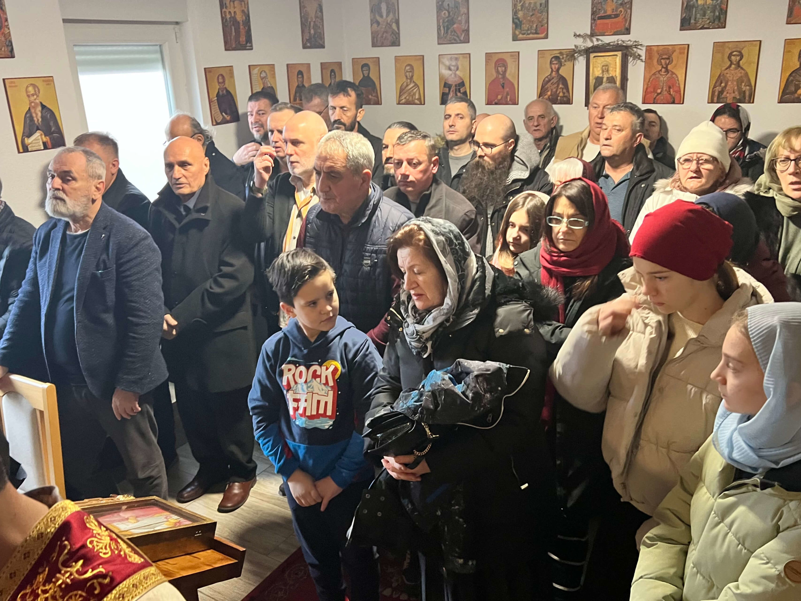 Уследила је трпеза љубави за све присутне коју је припремио отац Прохор са овогодишњим домаћинима славе.