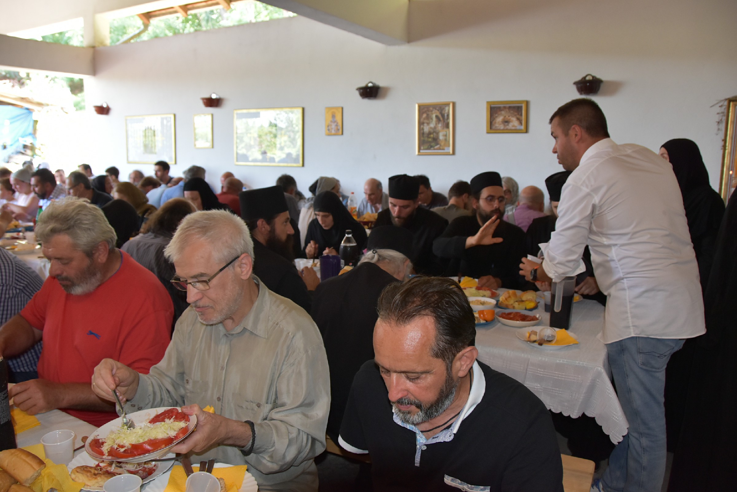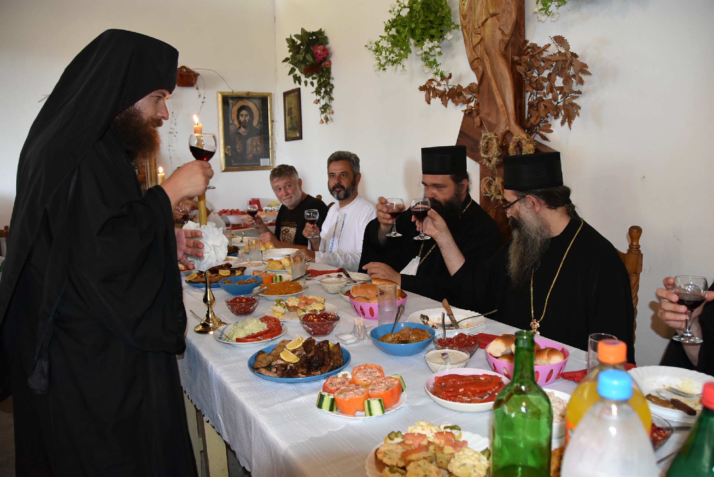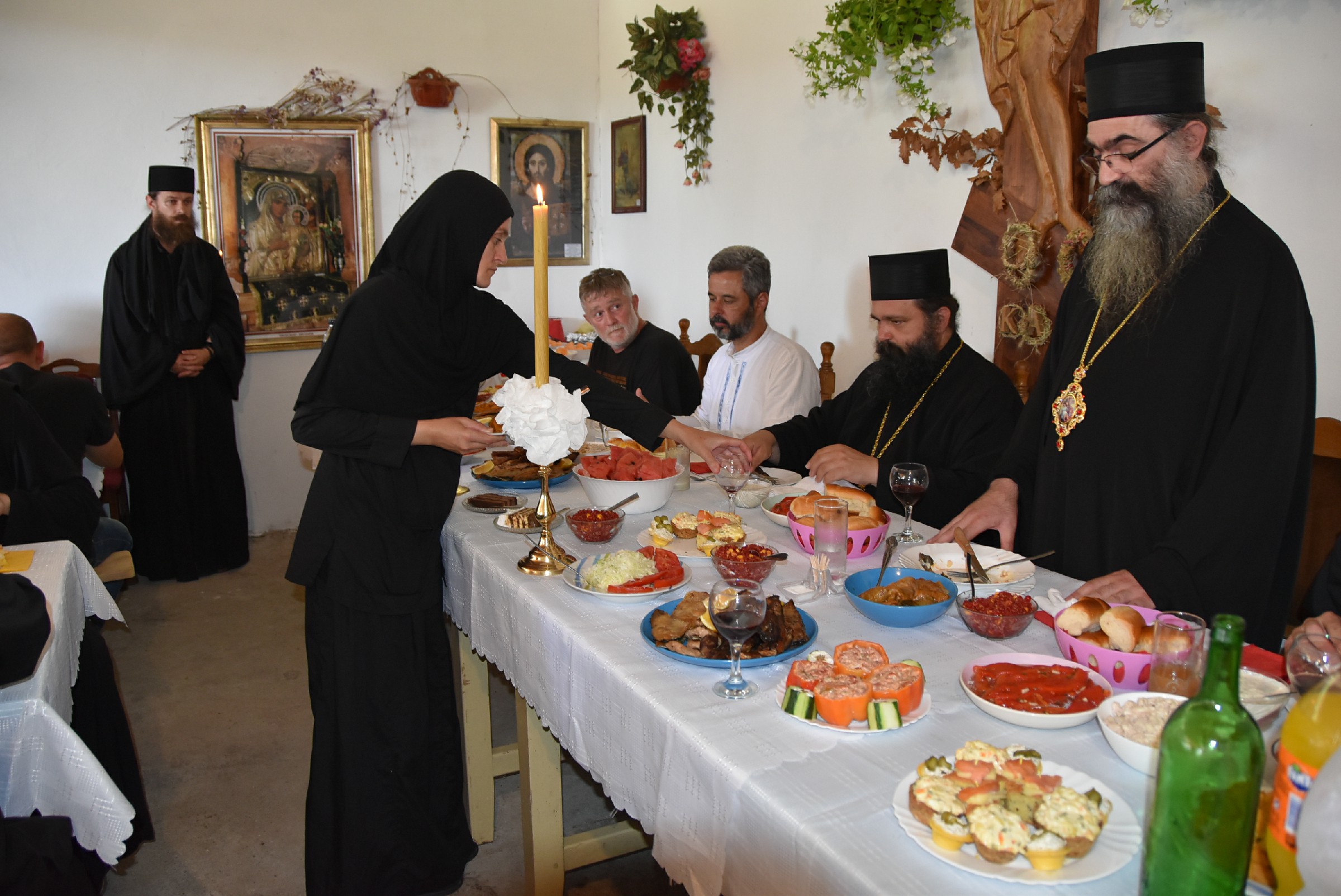 Празнично славље настављено је трпезом љубави за све присутне приређеном од стране манастирског братства и овогодишњих домаћина славе. Овом приликом се пригодном речју присутном народу обратио Владика Наум.