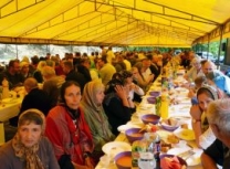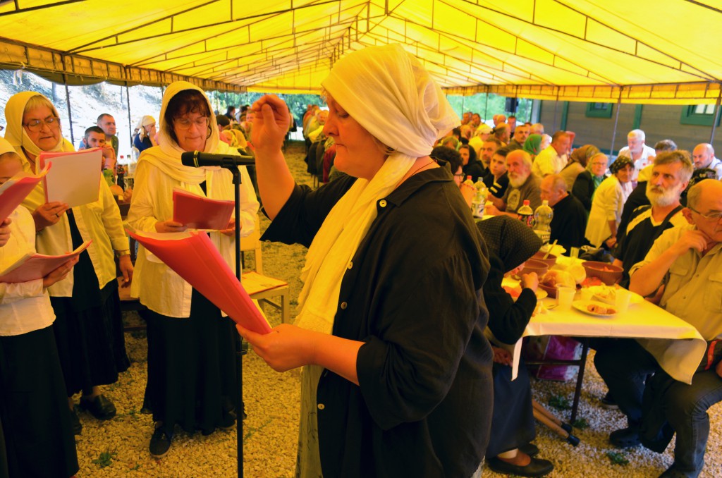 Празнично славље настављено је за трпезом љубави. У току трпезе љубави приређен је пригодни програм од стране женског хора „Свети Јустин Ћелијски“ из Барајева и верника при овој прелепој и благодатној катакомби.