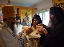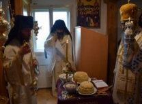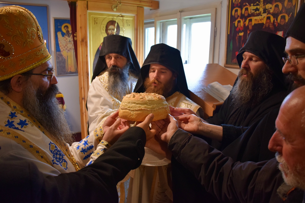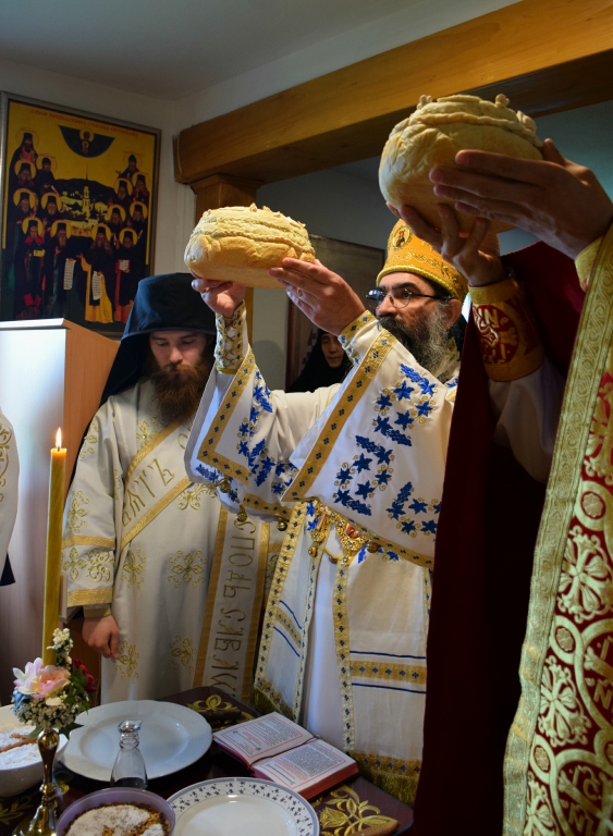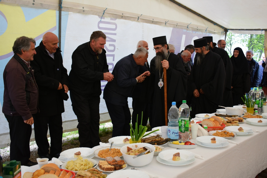 Након Литургије Владика Наум је извршио чин резања славског колача и благосиљања жита које су у част Светог великомученика Георгија принели манастирско братство и овогодишњи домаћин славе Никола Вучковић из Градишке. За наредну године пријавили су се: Рајка Павловић из Добоја и Јела Рајић из Бања Луке.