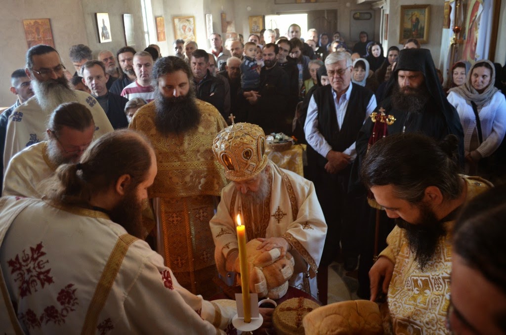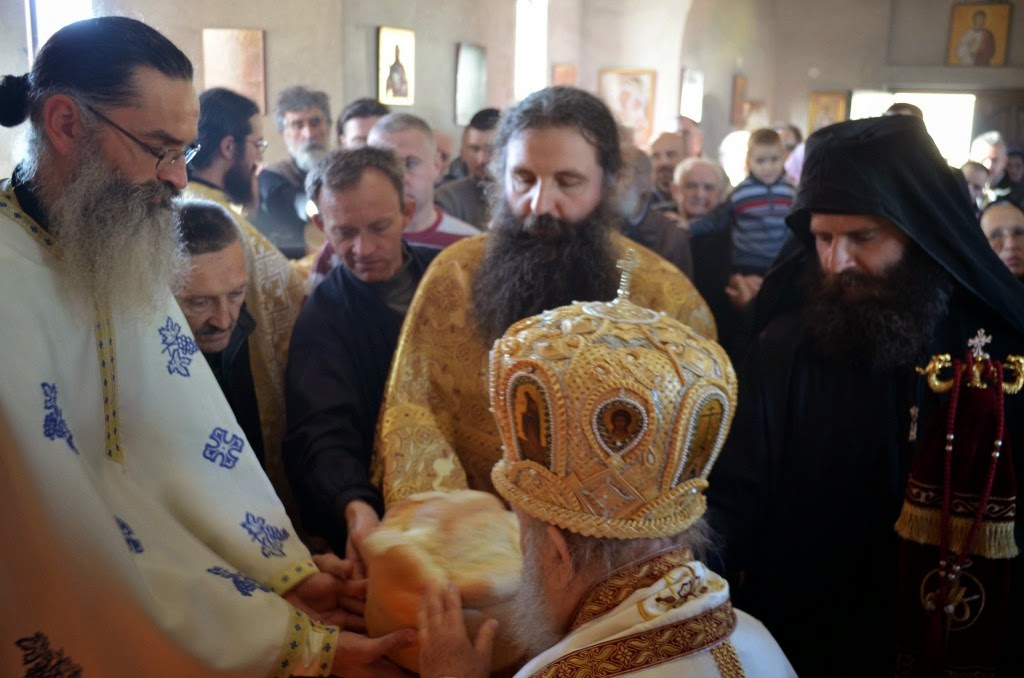 Епископ Артемије је произвео у чин протосинђела јеромонаха Димитрија, који је прославио уједно и свој имендан, а протосинђели Варнава и Иринеј своју крсну славу.