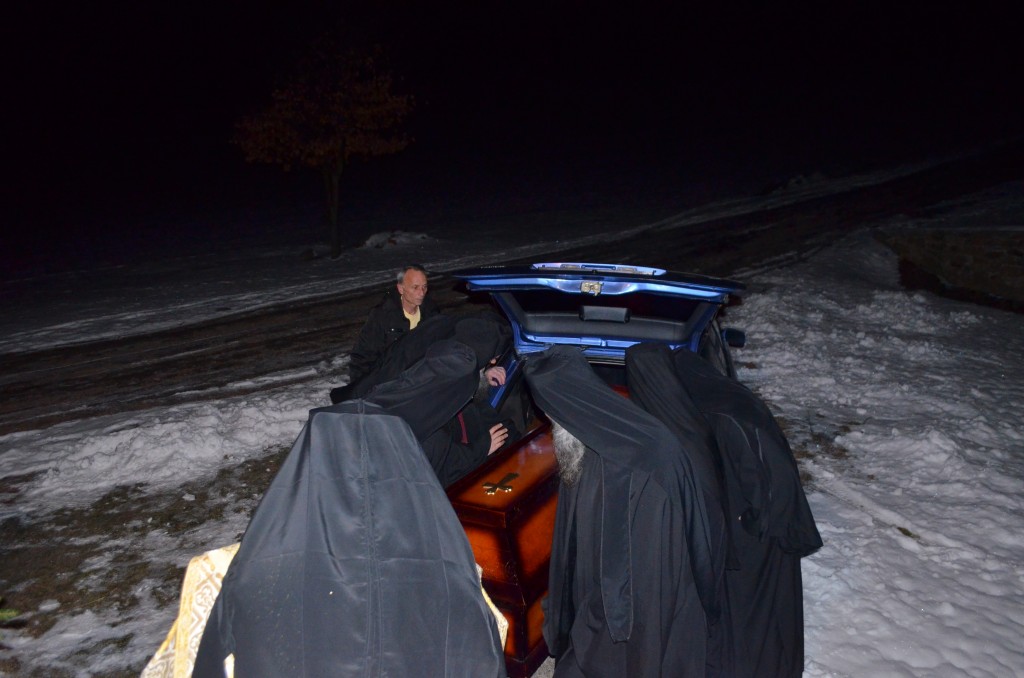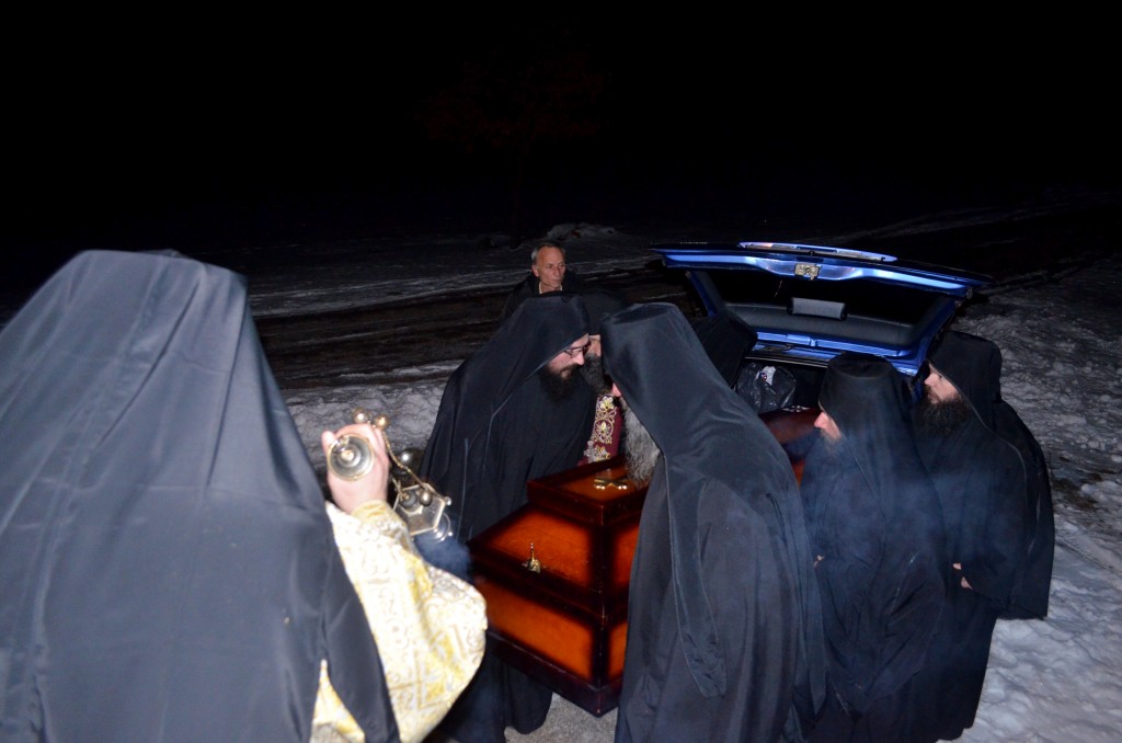 Пошто су се верници из Ниша поклонили телу оца Јована, ковчег је у касним вечерњим часовима из Ниша пренет у манастир Св. Јована Крститеља у Љуљацима. Окупљено монаштво у Љуљацима је молитвено, чесно и са љубављу дочекало тело оца Јована. Владика Максим је том приликом одслужио мали помен. Потом су монаси и верници све време читали Јеванђеље и Псалтир.