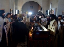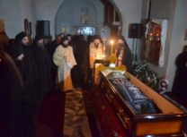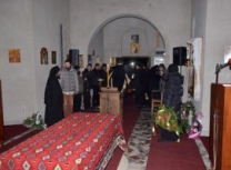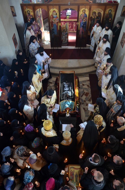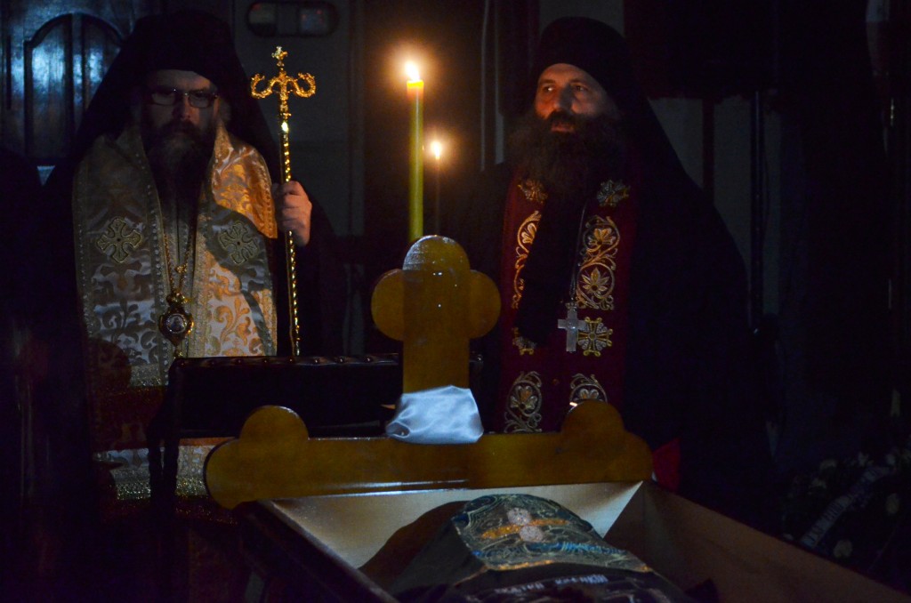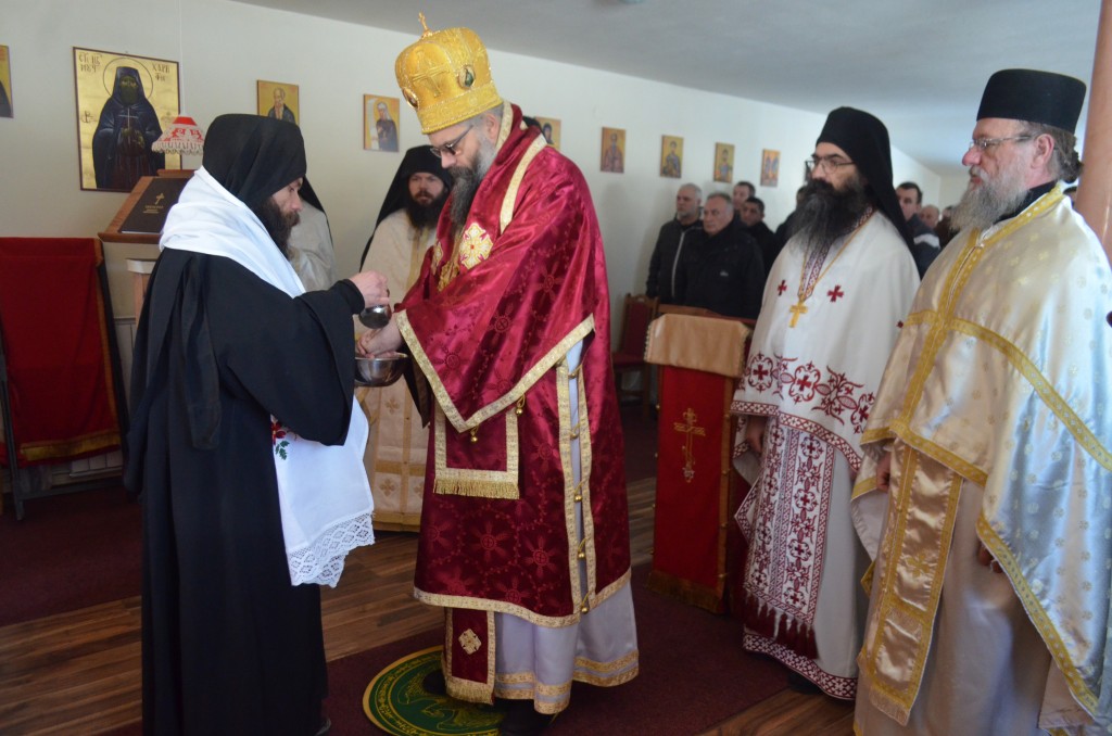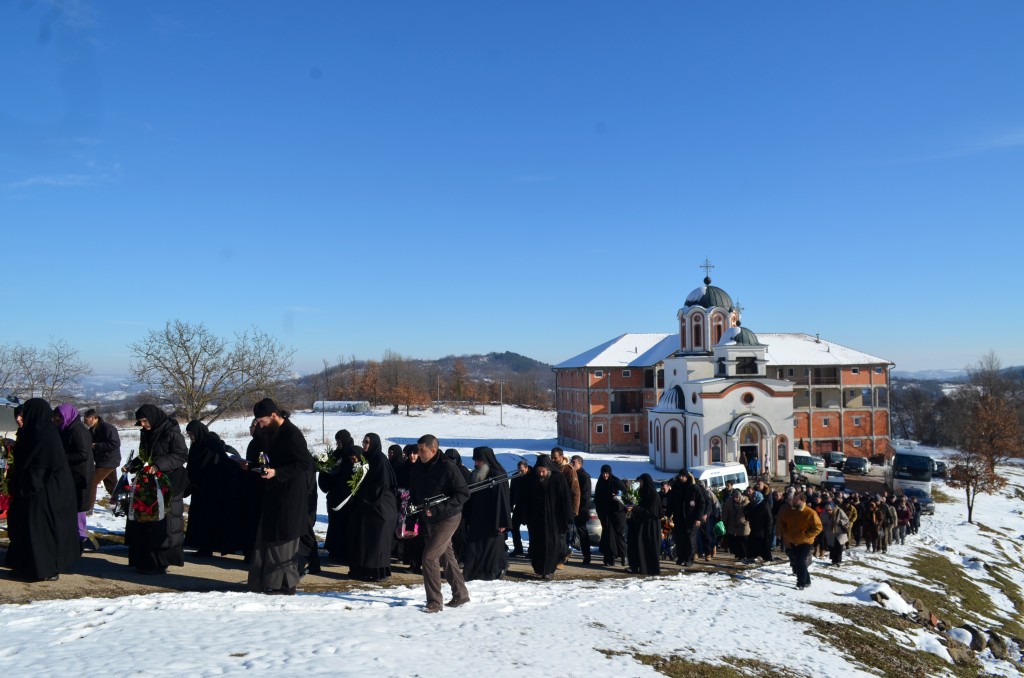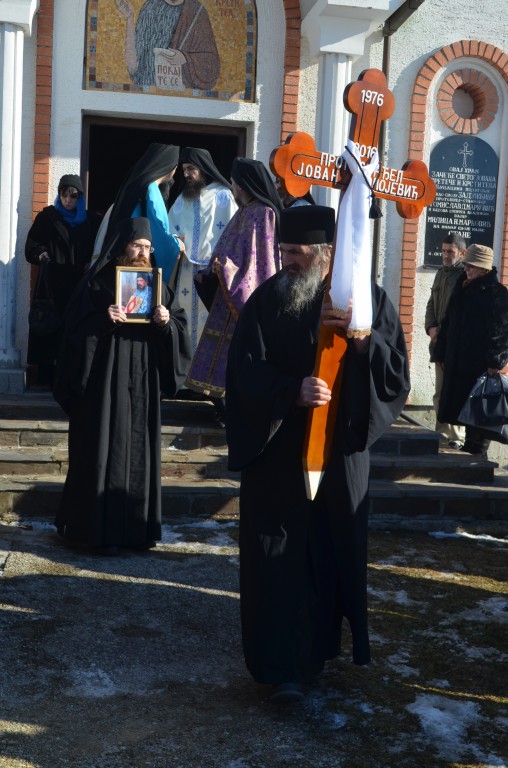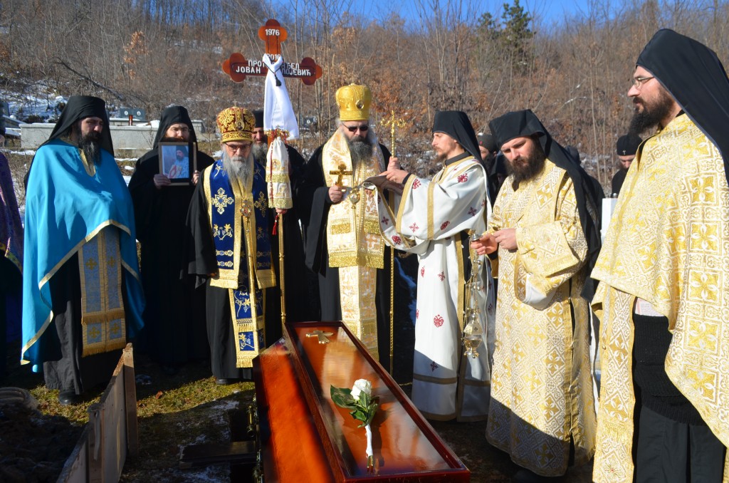 Заупокојену Литургију, у манастиру Св. Јована Крститеља, на Јовањдан 7/20. јануара, служио је Његово Преосвештенство Хорепископ новобрдски и панонски Г. Максим уз саслужење више свештенослужитеља епархије. Молитвено учешће у овом евхаристијском сабрању узео је и Владика Артемије.