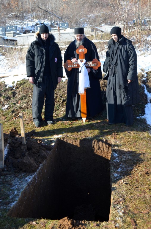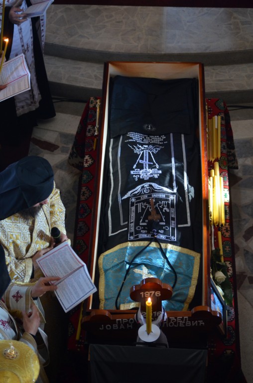 Драги оче Јоване, хвала ти на свему што си са нама и за нас учинио, својим послушањем, својим врлинама, својом јаком вером. Нека Господ прими твоју свету душу у Царству Своме Небескоме, а земља нека прими тело твоје и чува га до општега васкрсења, када ћемо се, ако Бог да, поново срести у Царству Небеском и тамо са Господом вечито бити. Амин. Нека му Бог душу прости“.