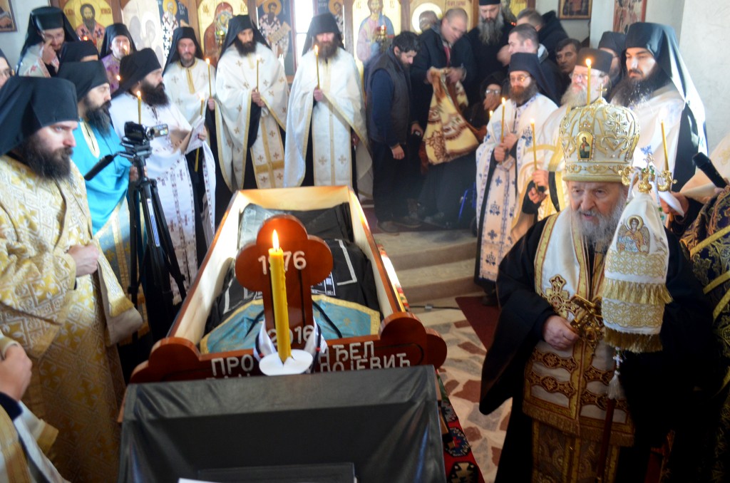 Након одслуженог опела, Преосвештени Владика Артемије је изговорио погребно слово: