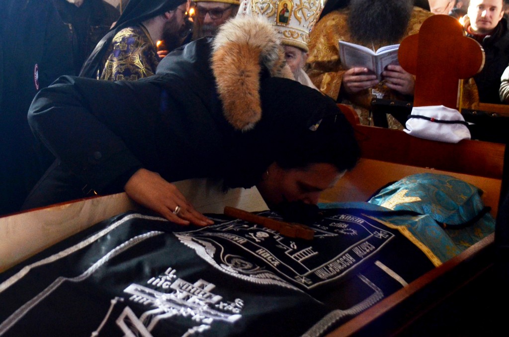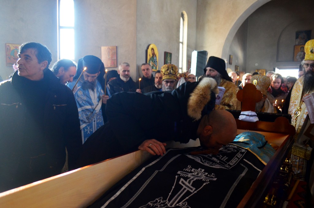Након погребног слова Владике Артемија, присутни су оцу Јовану дали свој последњи целив а затим је тело њег