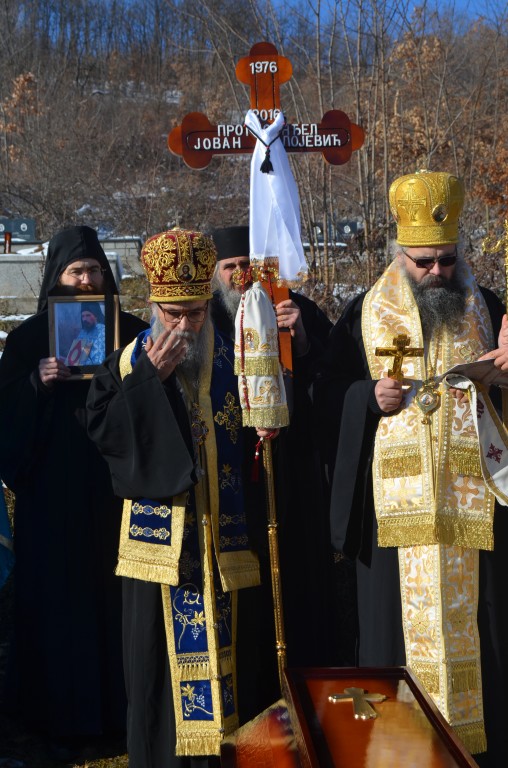 Опело новопрестављеном слузи Божјем Јовану служио је Његово Преосвештенство Епископ рашко-призренски и косовско-метохијски у егзилу Г. Артемије, уз саслужење Хорепископа старорашког и лозничког Г. Николаја, Хорепископа новобрдског и панонског Г. Максима и бројних свештенослужитеља