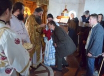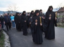 На сам празник Уласка Господа Исуса Христа у Јерусалим (Цвети), Епископ Артемије је служио у манастиру Свету Архијерејску Литургију уз саслужење: Архимандрита Варнаве (Димитријевића), протосинђела Ксенофонта (Томашевића), јерођакона Паладија (Матића) и јерођакона Леонтија (Кантара). Већи број верника се на Литургији причестио Пречистим Тајнама Христовим.