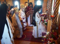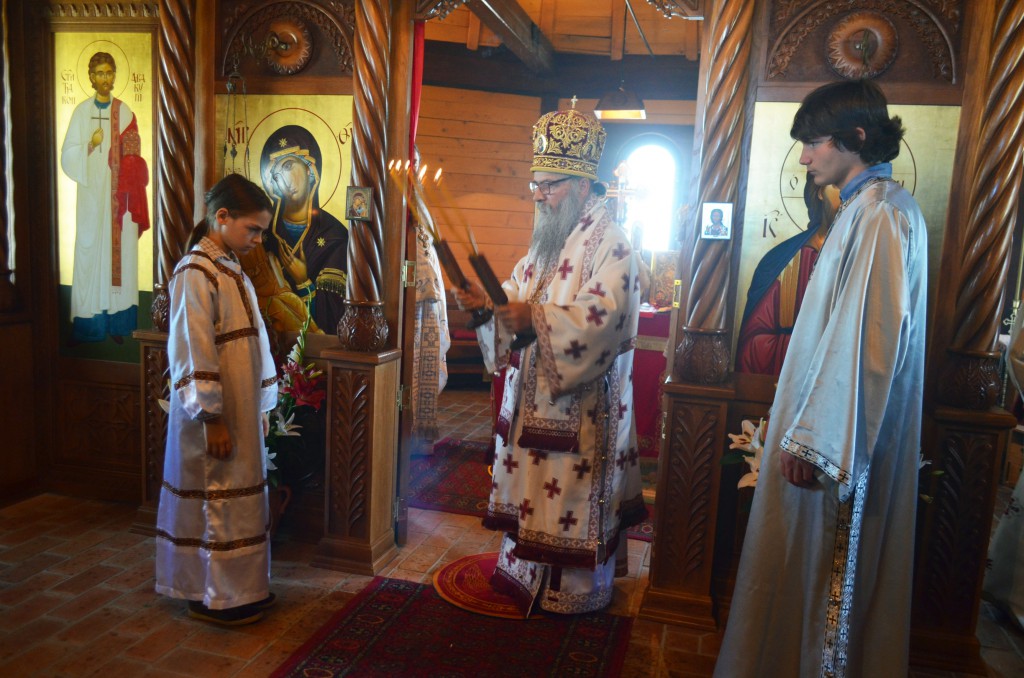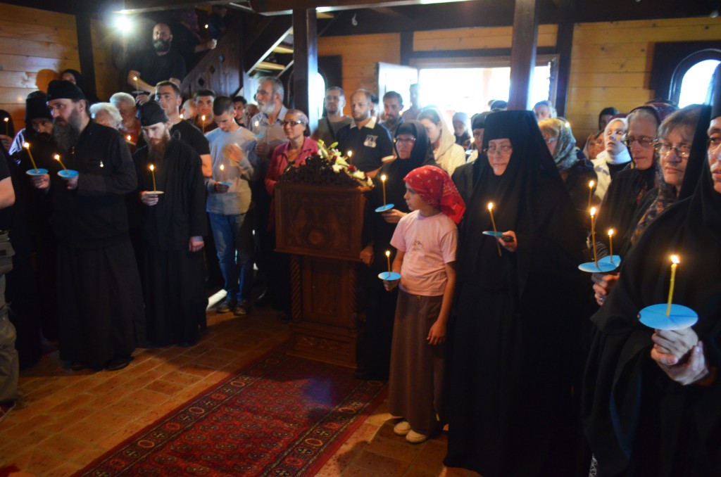На сам дан празника Успенија Пресвете Богомајке, Његово Преосвештенство Епископ Артемије је у истом манастиру Свету Архијерејску Литургију уз саслужење хорепископа старорашког и лозничког Г.Г. Николаја и више свештенослужитеља епархије. Литургији је присуствовало око 300 светосаваца. Многи од њих су се на Литургији сједили са Господом кроз Свето Причешће.