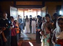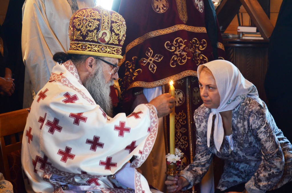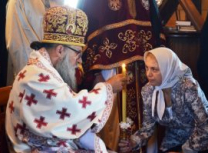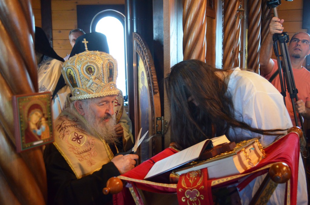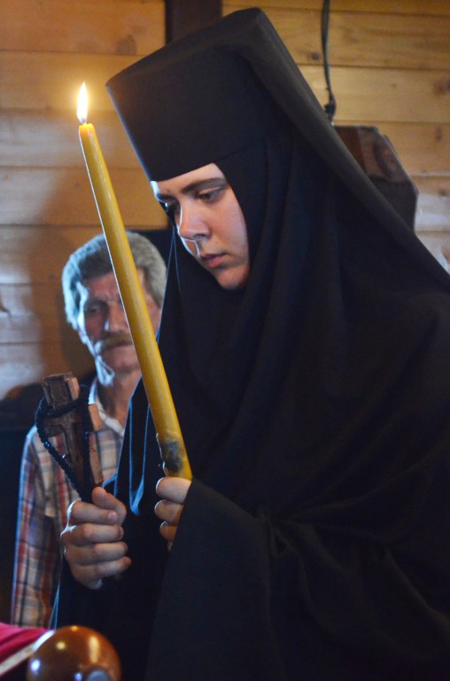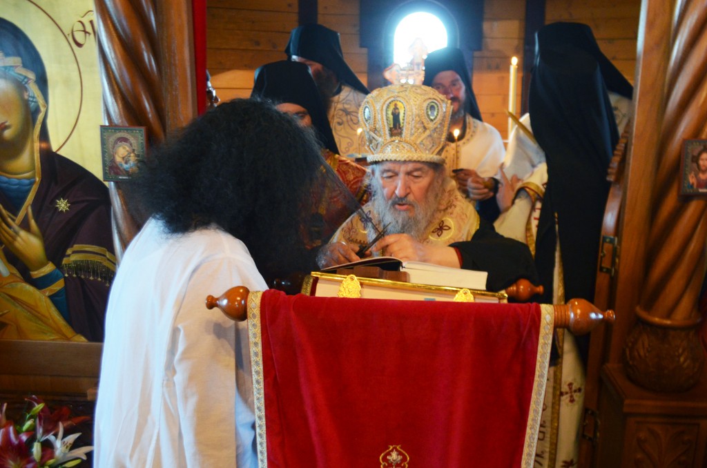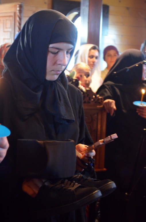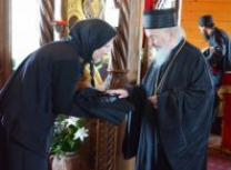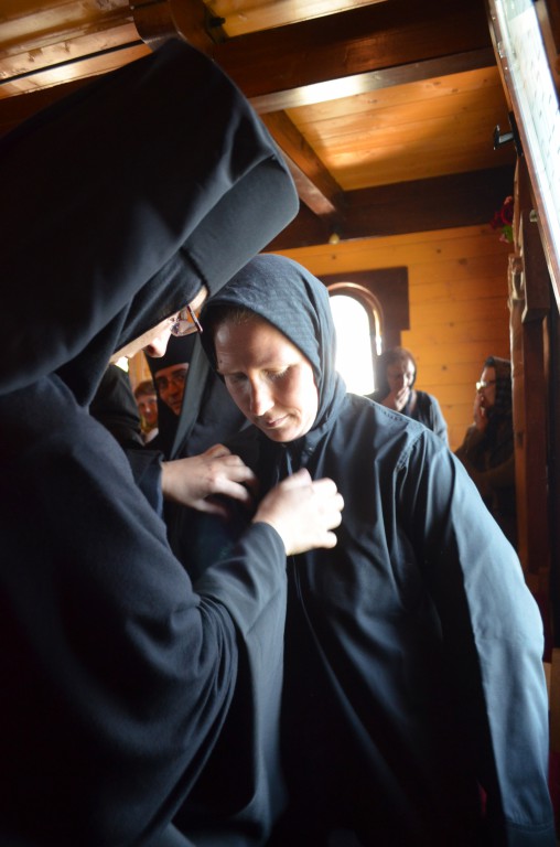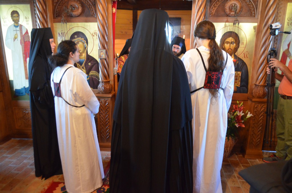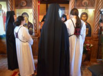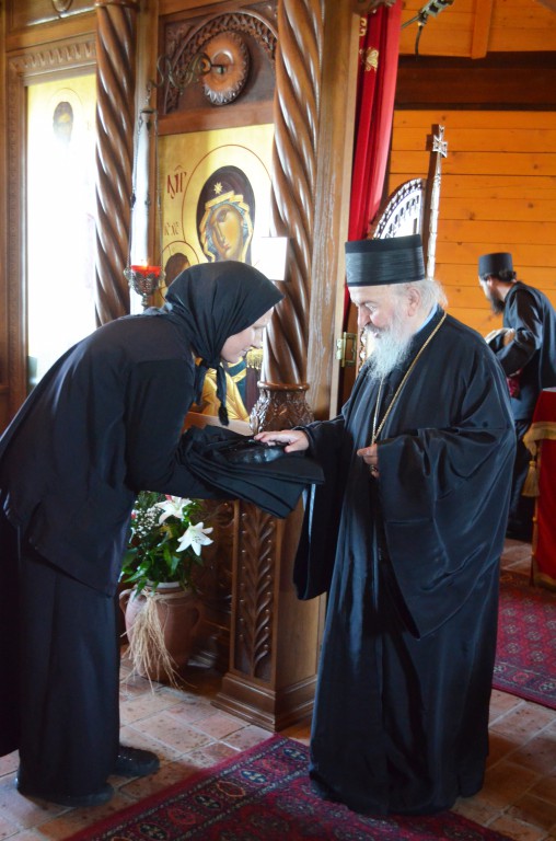 Пре почетка бденија, Владика Артемије је благословио облачење подрасника искушеници овог манастира Ани (Ћировић) из Ужица.