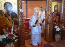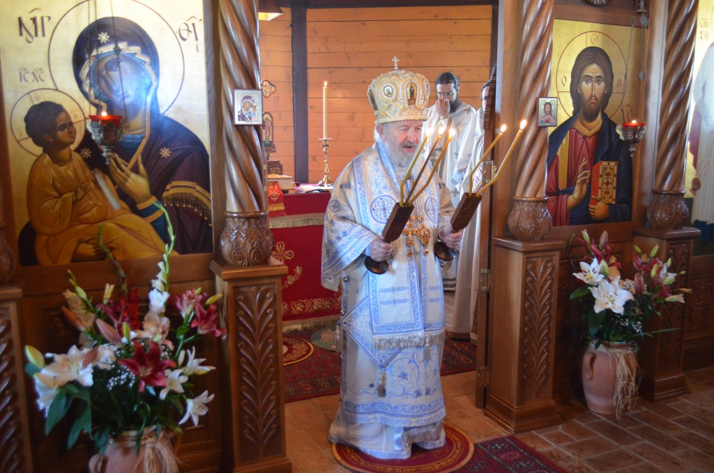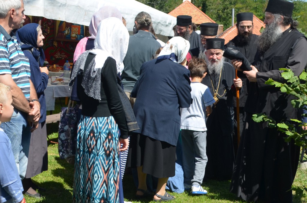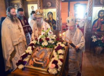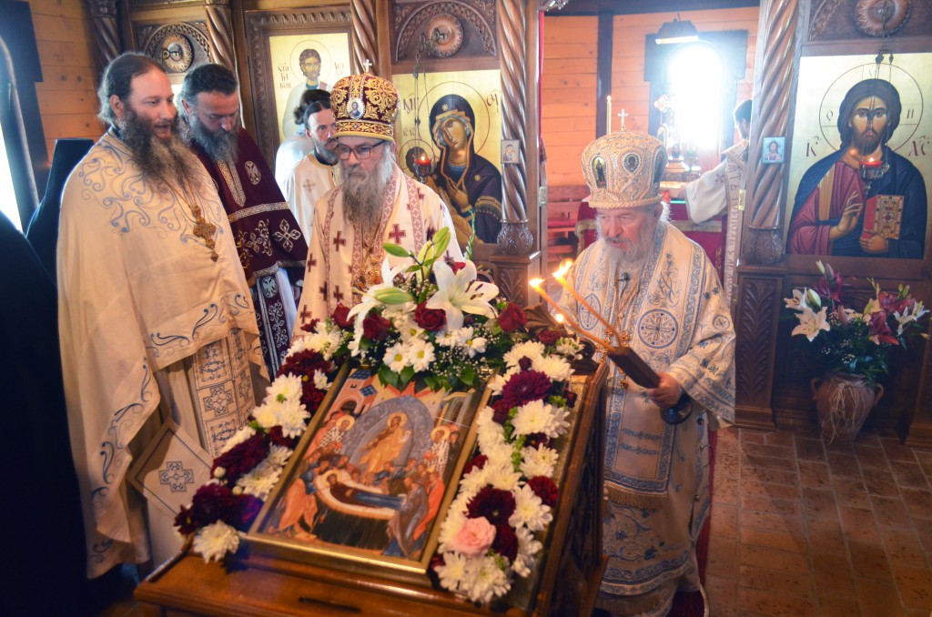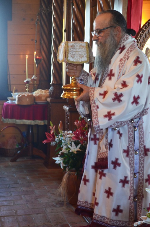 “Ми славимо данашњи празник Успенија Пресвете Богородице. Успеније, уснуће, тихи сан нас овде људи на земљи после великих напора и недаћа овде на земљи. Да ли ми то славимо смрт? Да. Ми славимо Успеније Пресвете Богородице. А смрт за нас хришћане, нама је откривено Светим Јеванђељем и у учењу Цркве Божије, у учењу светих отаца Цркве Божије, да је смрт за нас сан, и још, смрт је капија за пролазак у Живот Вечни. Ми се рађамо од родитеља својих овде на замљи за овај пролазни живот а кроз смрт своју пролазимо као кроз капију и улазимо у Живот Вечни. Ми православни хришћани, као што је Свети владика Николај на једном месту изразио, он каже какав је однос за нас између живота и смрти ако живот представимо као један велики океан. Свети владика Николај каже: „Оно мало пене по океану то је смрт.“ Толико живот побеђује смрт. Толико је нама лака смрт од Васкрсења Господа Исуса Христа јер је сам Господ благи победио сатану, победио смрт, победио грех. А нама је даровао Пречисту Мајку Своју, а она опет непорочно родила Њега као Бога Реч, Њега Сина Божијега који је сишао преко ње на земљу, као низ лествицу духовну. Ето, и даровање и узвраћање даровима и од Бога нама и од нас небу. Све то да се радујемо, све то да славимо, да славимо Пресвету Богородицу Приснодјеву Марију која је часнија од херувима, неупоредиво славнија од серафима, њу Пресвету Богородицу којој су светитељи Божији испевали многе духовне химне и многе песме и много смо о њој читали, али све стоји изнад ума нашега.“ – нагласио је владика.