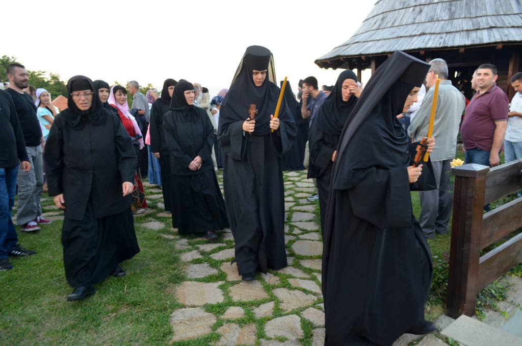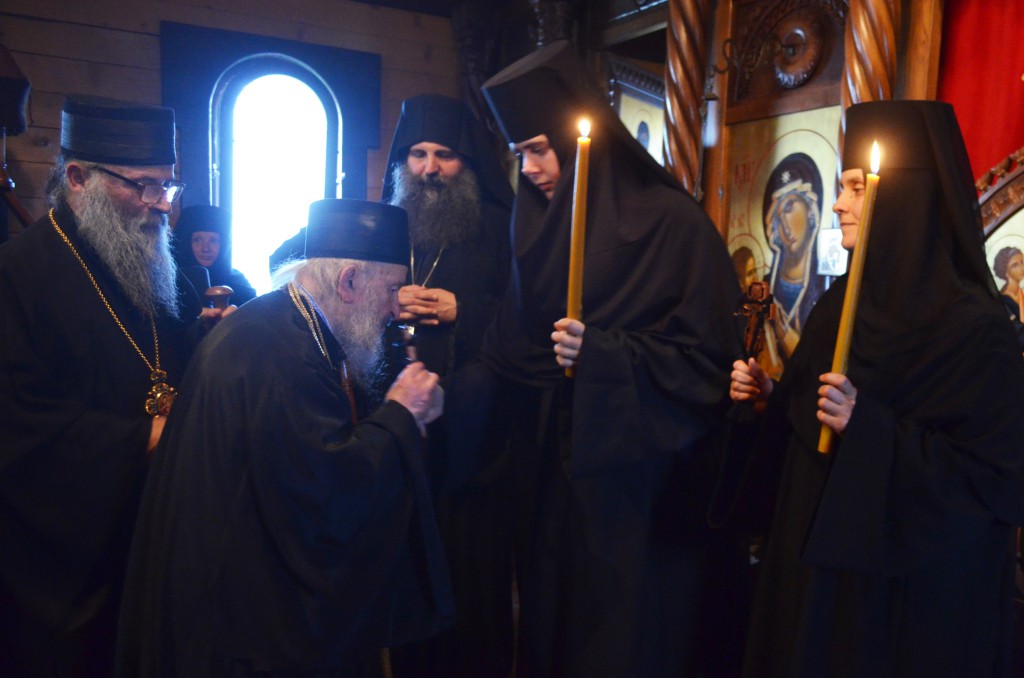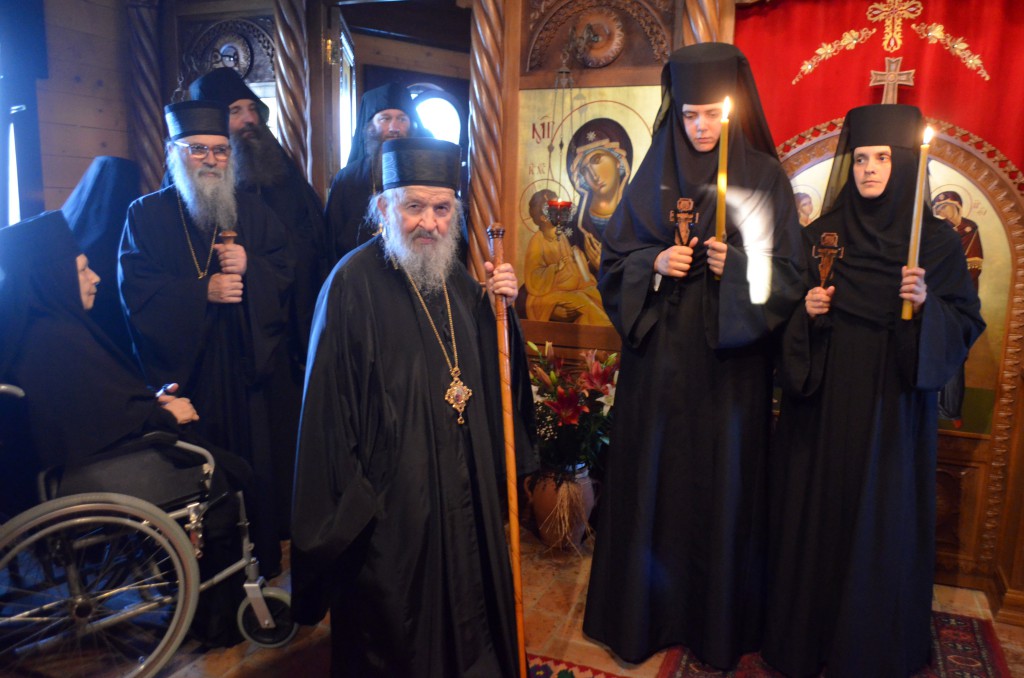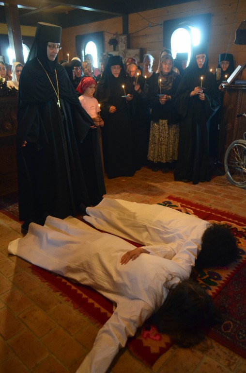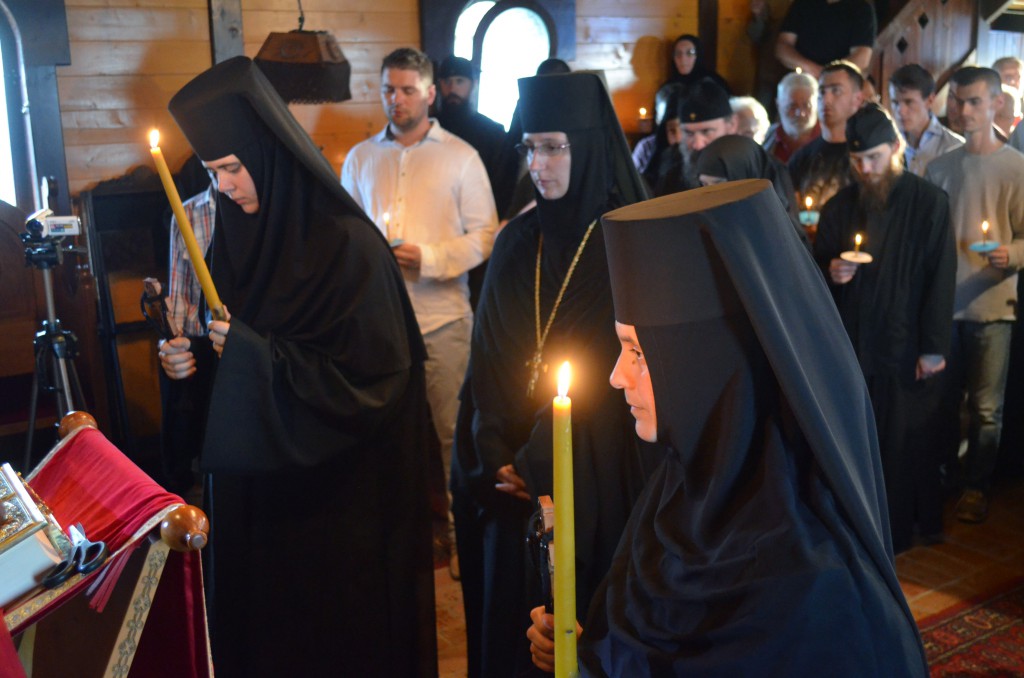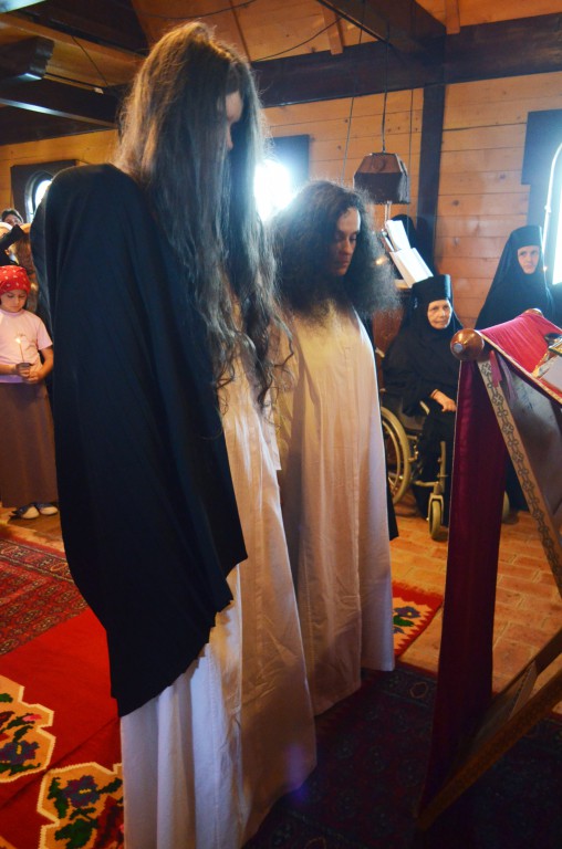 У току бденија Његово преосвештенство Епископ рашко-призренски у егзилу Г.Г. Артемије замонашио је у чин мале схиме искушенице овог манастира Јелену (Киров) и Ајду (Пантелић), давши им монашка имена Јелисавета (по мајци светог Јована Крститеља) и Ана (по мајци Пресвете Богородице). После монашења Владика Артемије се окупљеном монаштву и народу обратио пригодном беседом у којој је, поред осталог, говорио о борби која предстоји новопостриженим монахињама: